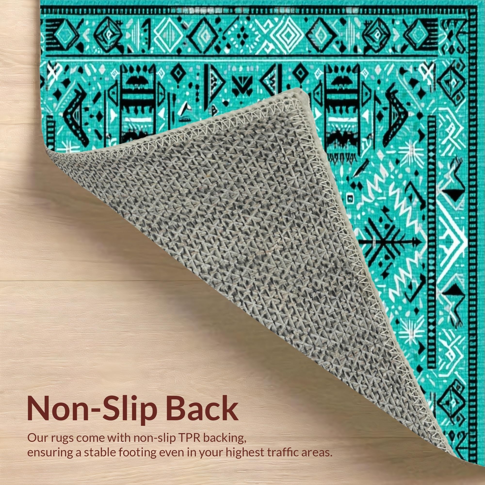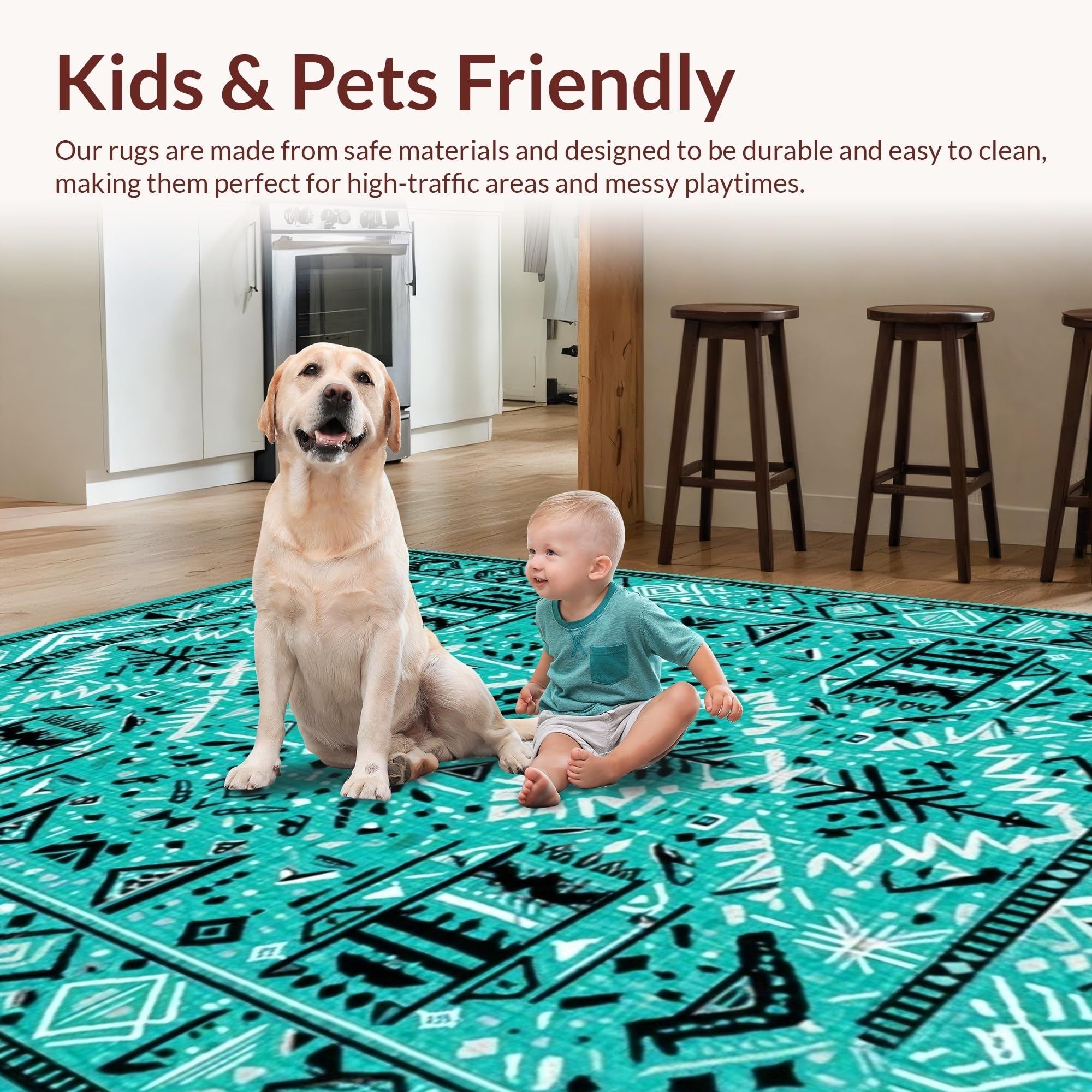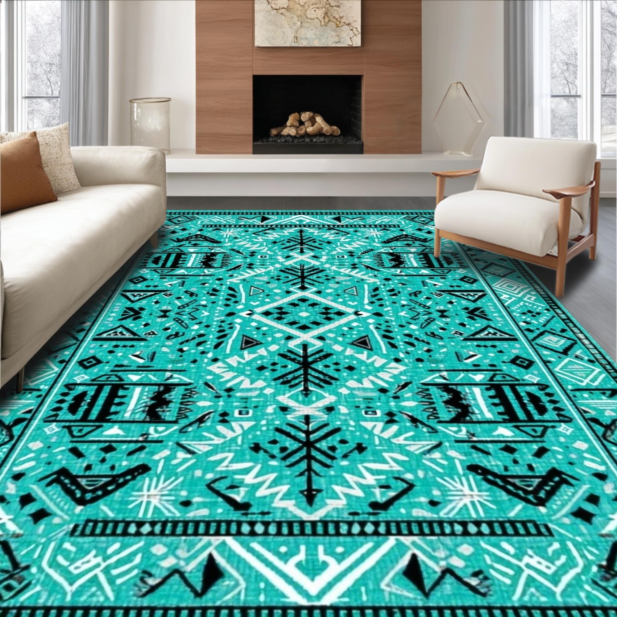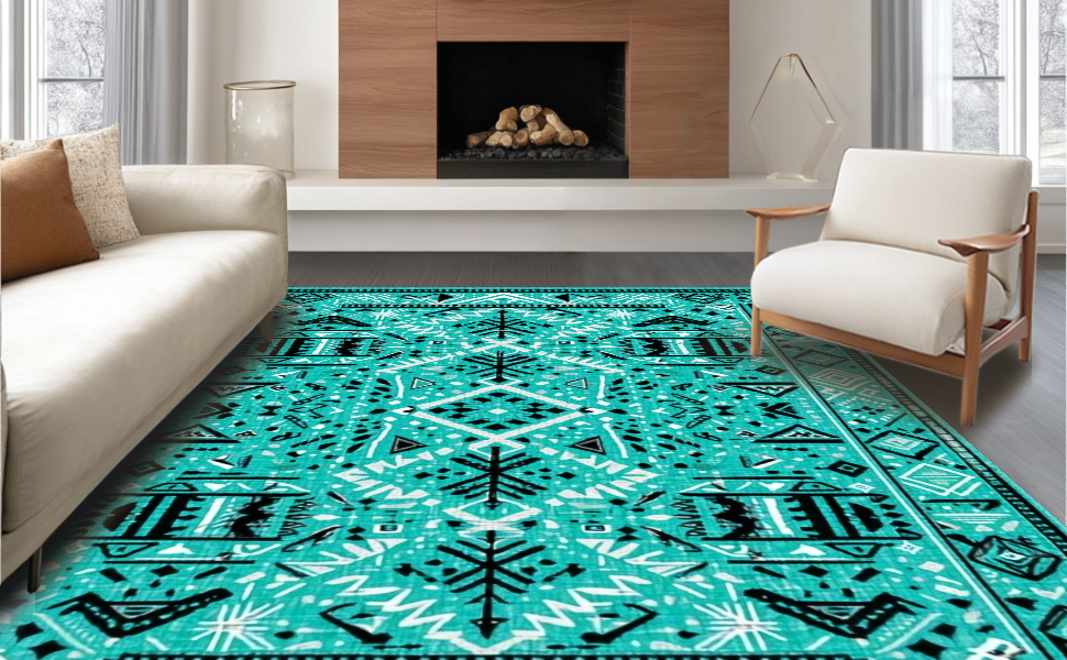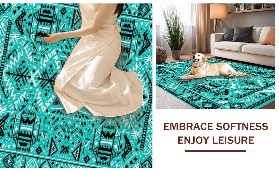 Ultra Soft Area Rug, Non Slip, Stain Resistant, Washable Area Rugs for Living Room, Bedroom, Artful Symmetrical Color Palette(Blue) Overview:
