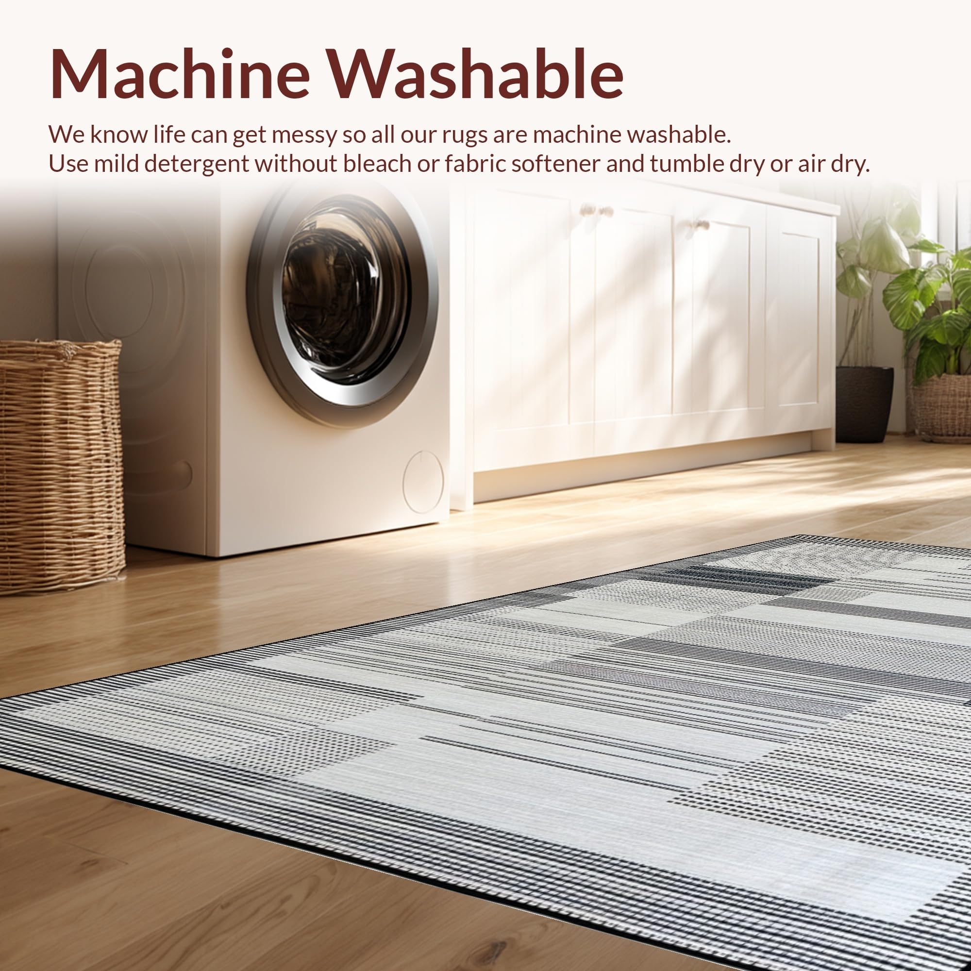 - Machine Washable: Our rugs can be easily thrown in the wash machine.