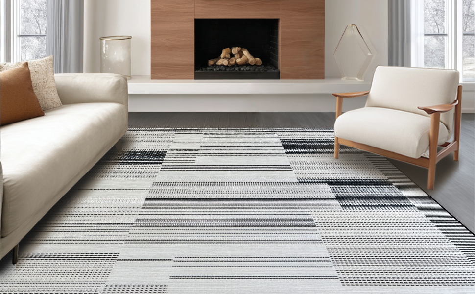 Ultra Soft Area Rug, Non Slip, Stain Resistant, Washable Area Rugs for Living Room, Bedroom, Artful Symmetrical Grey and Black Theme(Black) Overview: