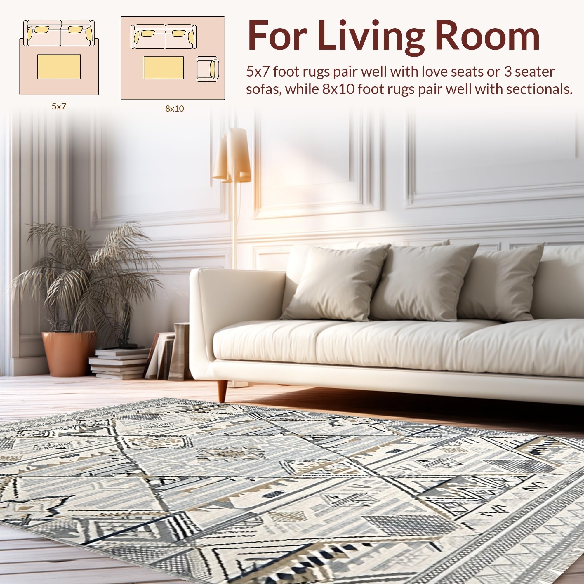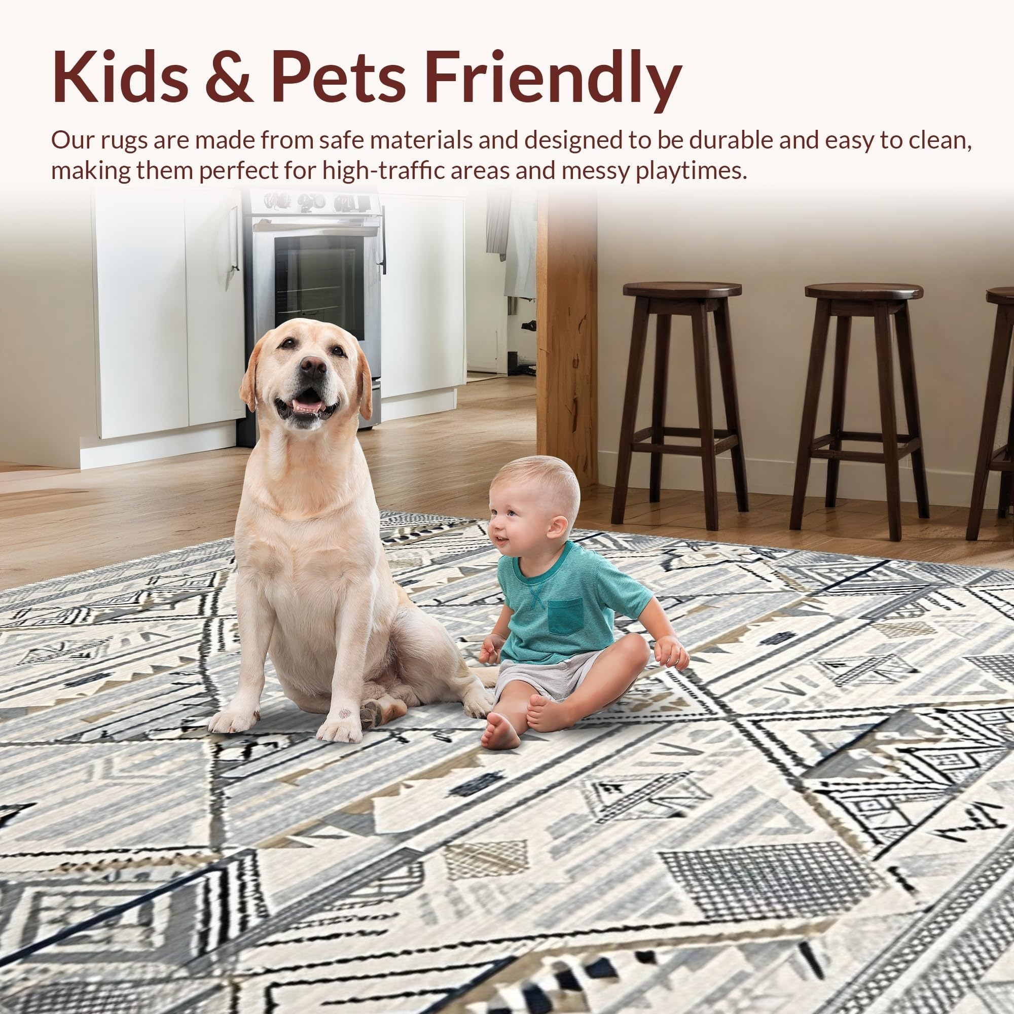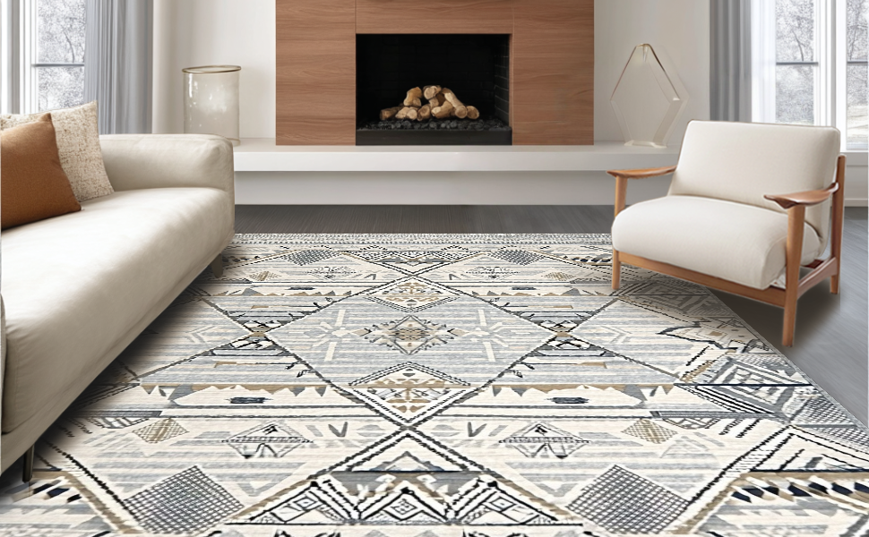 Ultra Soft Area Rug, Non Slip, Stain Resistant, Washable Area Rugs for Living Room, Bedroom, Artful Symmetrical Grey Composition(Gray) Overview: