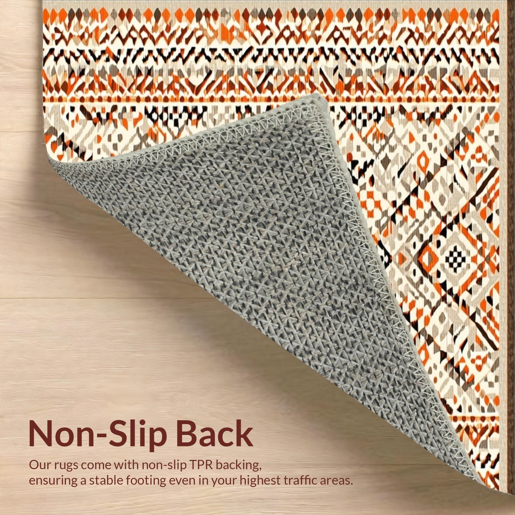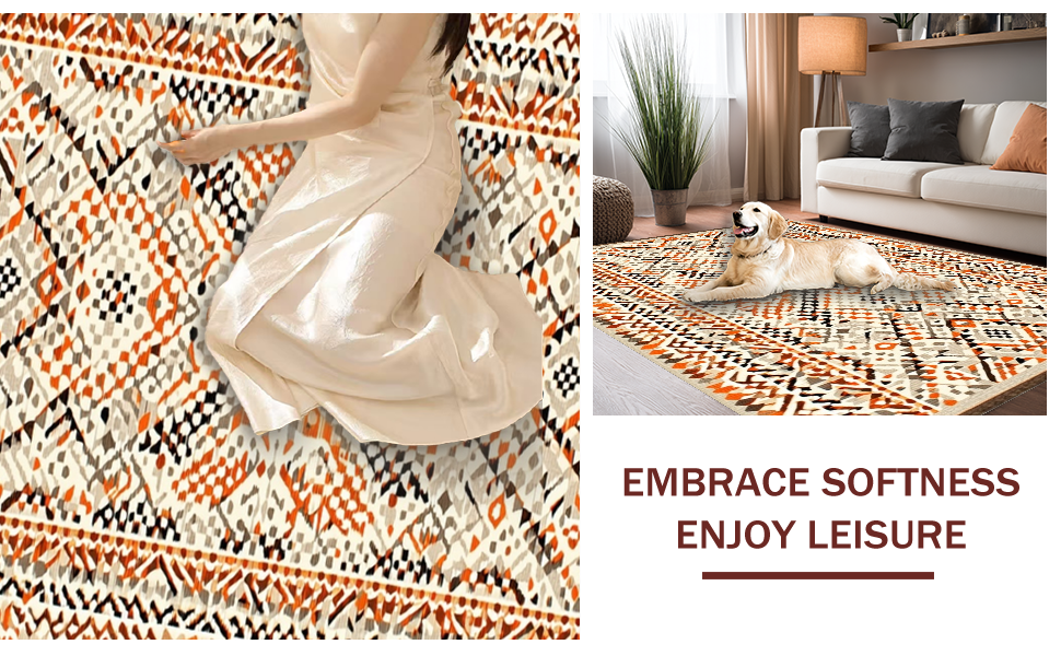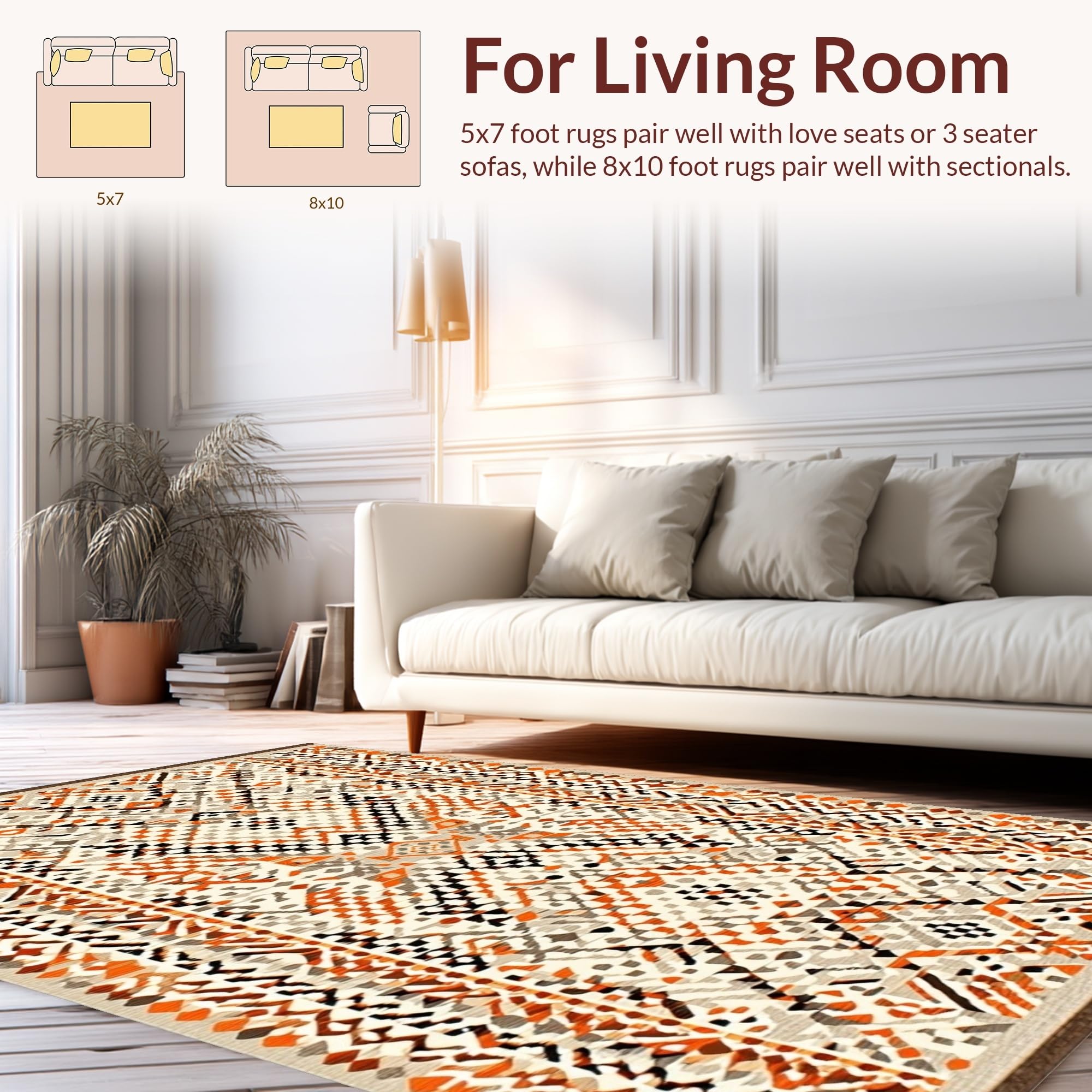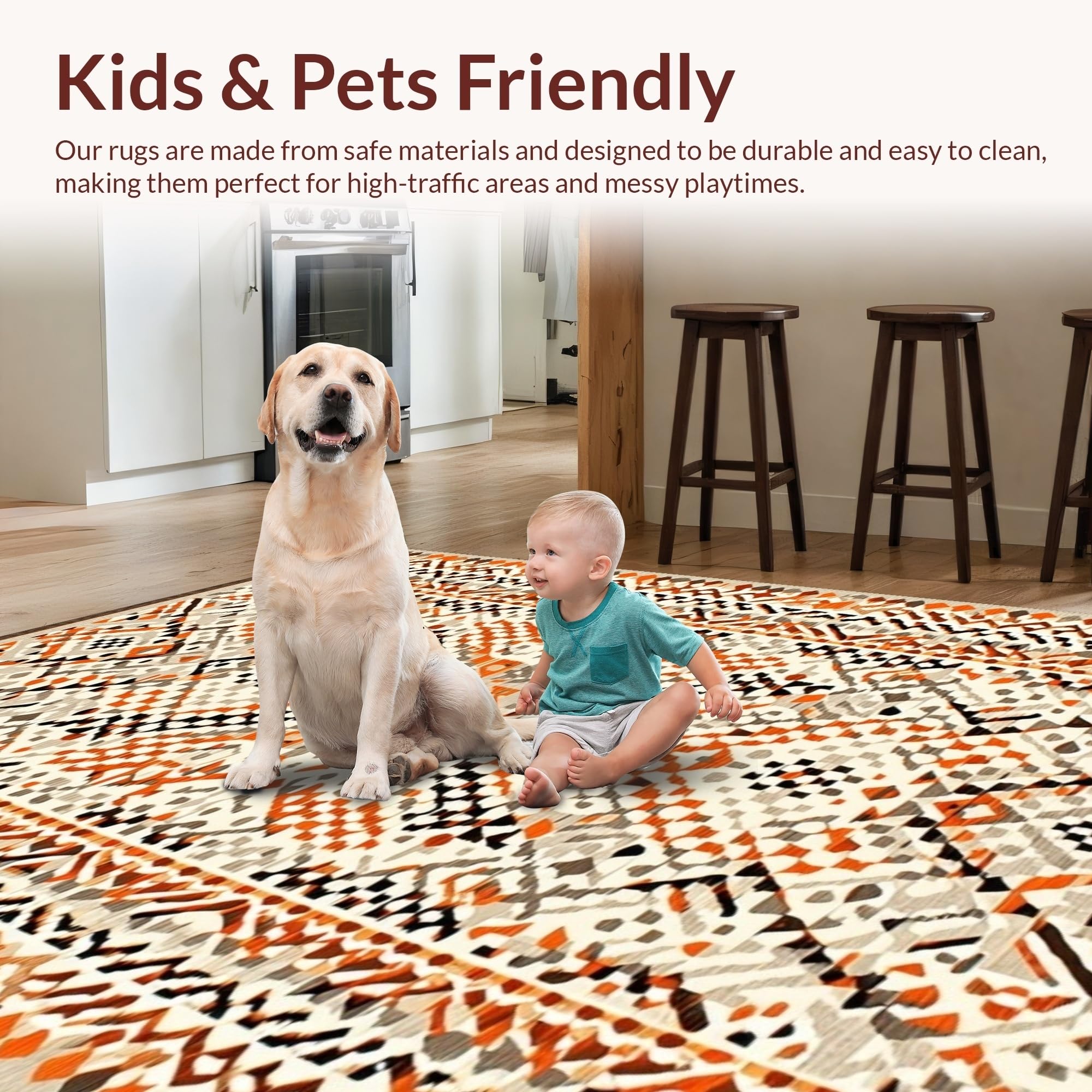 Ultra Soft Area Rug, Non Slip, Stain Resistant, Washable Area Rugs for Living Room, Bedroom, Artful Symmetrical Pattern Blend(Beige) Overview: