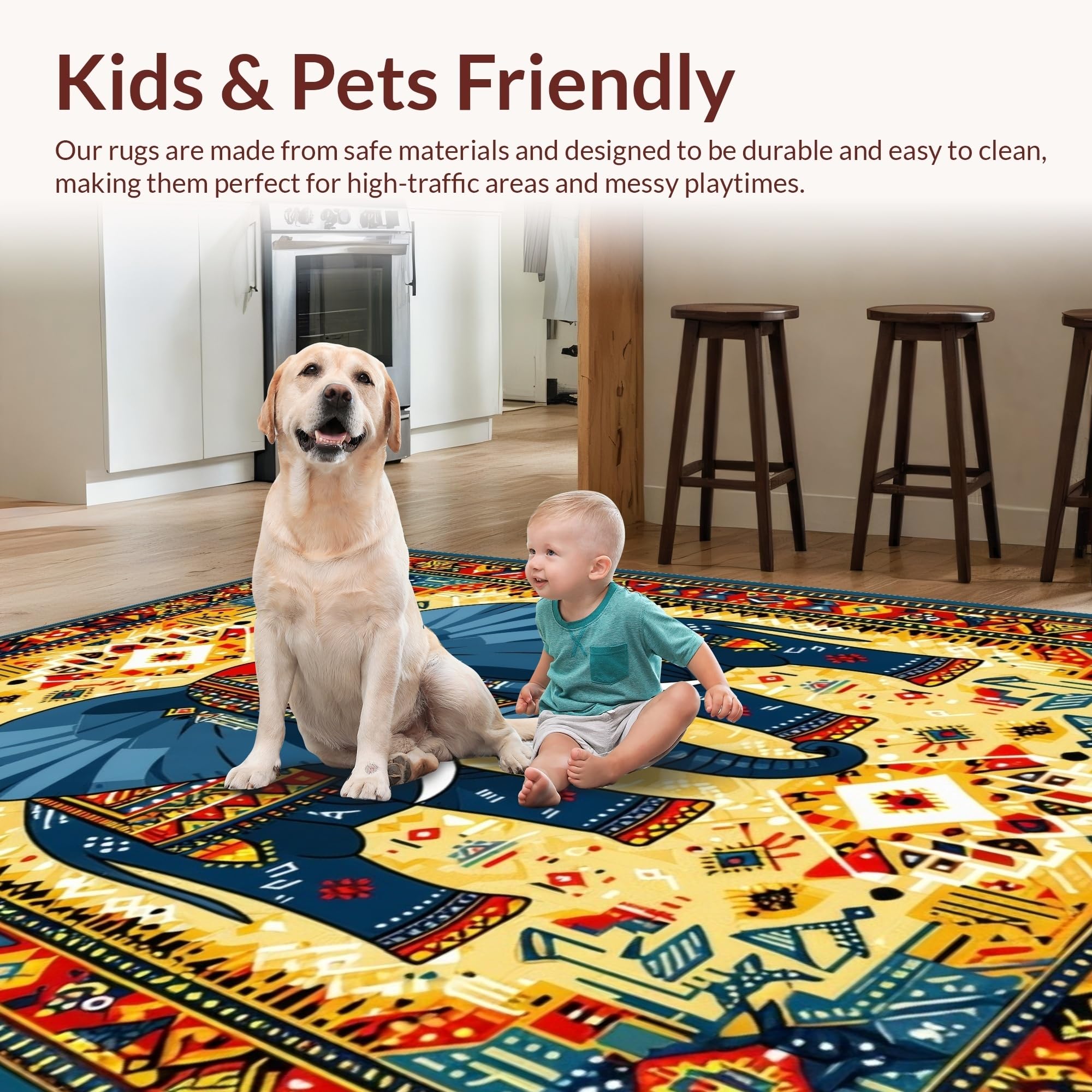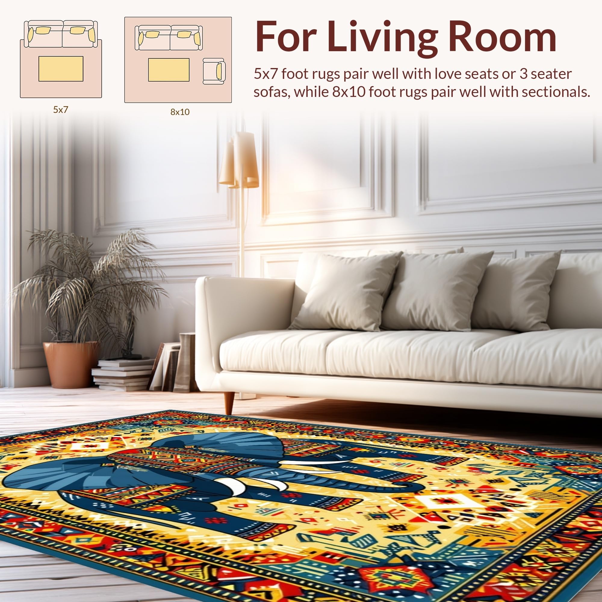 Ultra Soft Area Rug, Non Slip, Stain Resistant, Washable Area Rugs for Living Room, Bedroom, Artful Symmetrical Trellis Layout(Gold) Overview: