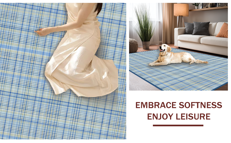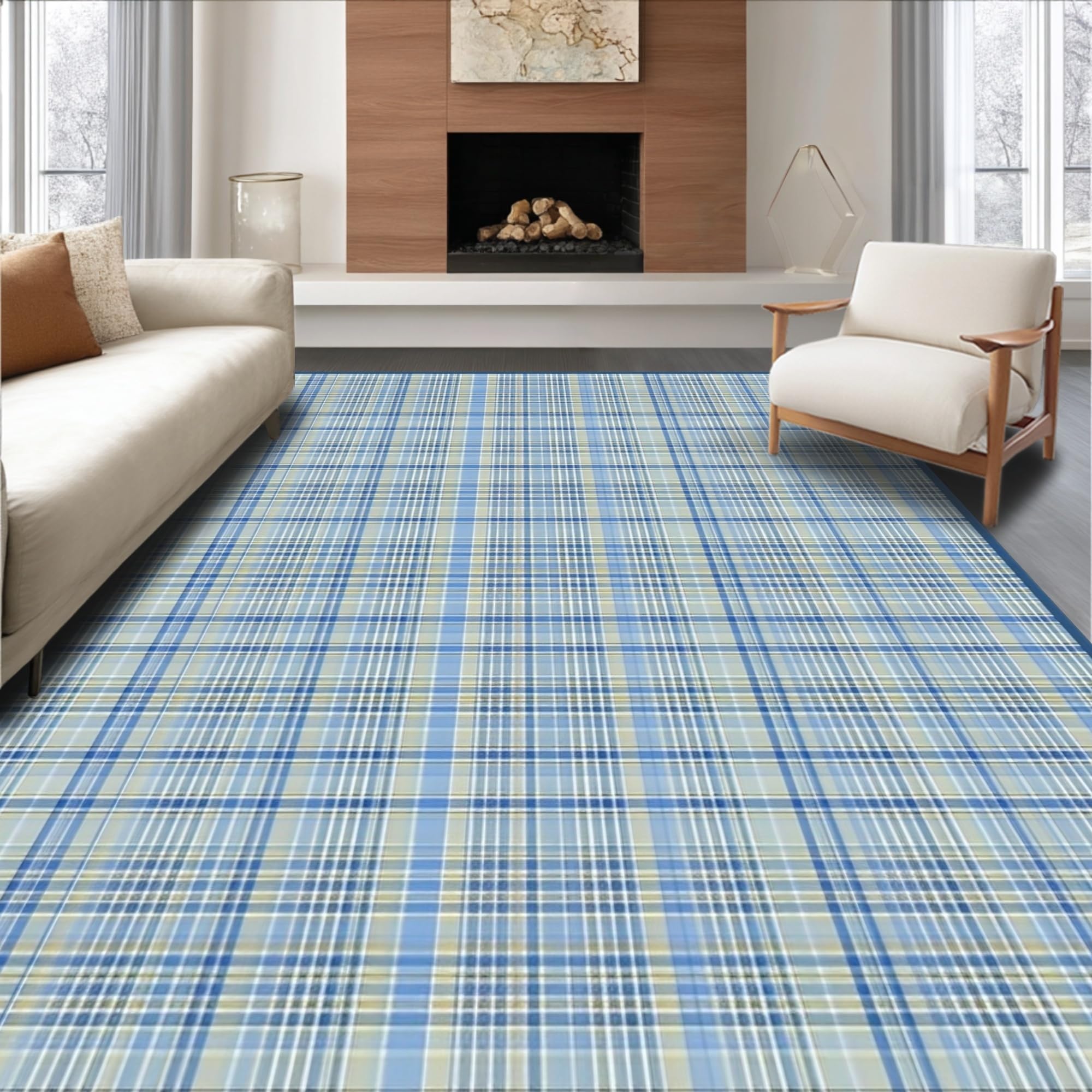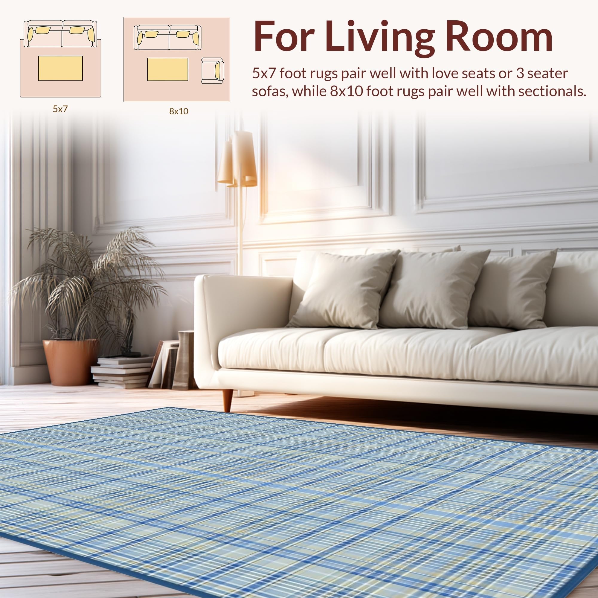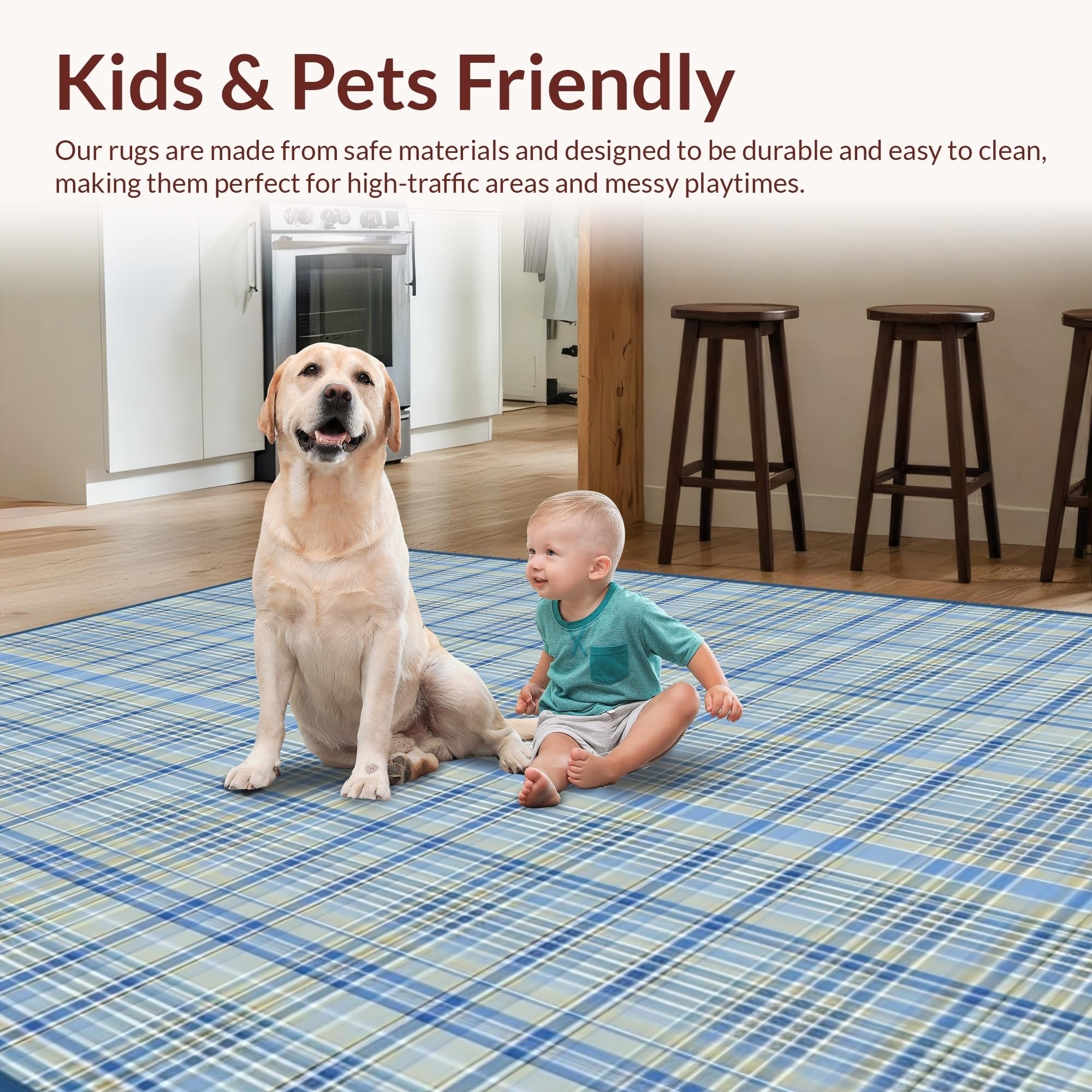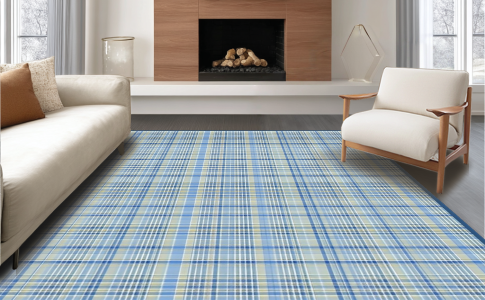 Ultra Soft Area Rug, Non Slip, Stain Resistant, Washable Area Rugs for Living Room, Bedroom, Artful Tartan Geometry in Soft Hues(Beige) Overview: