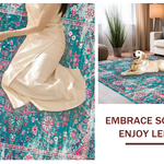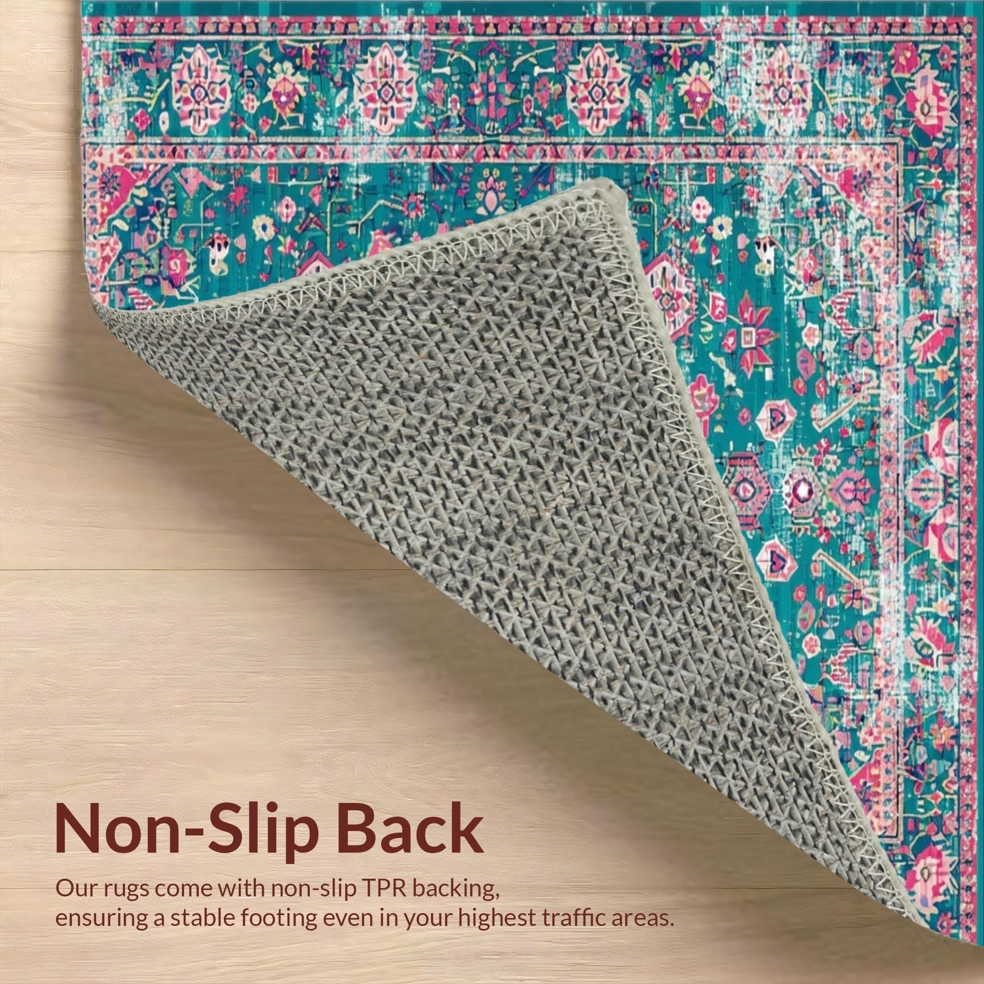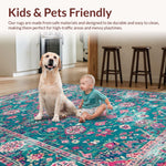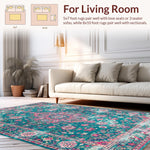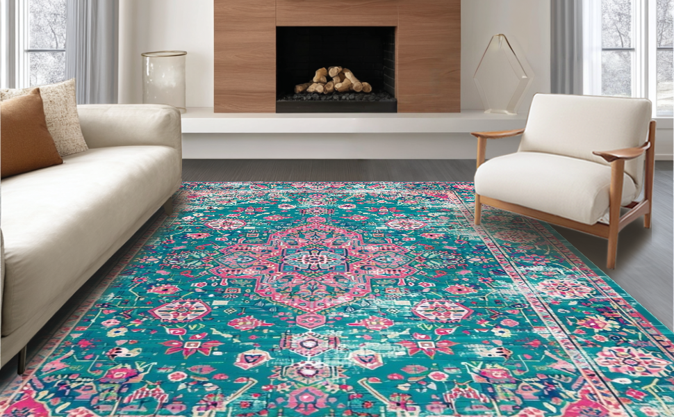 Ultra Soft Area Rug, Non Slip, Stain Resistant, Washable Area Rugs for Living Room, Bedroom, Artful Teal and Rose Symmetry(Blue) Overview: