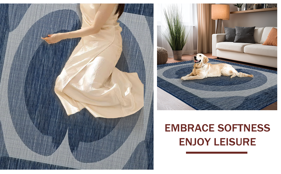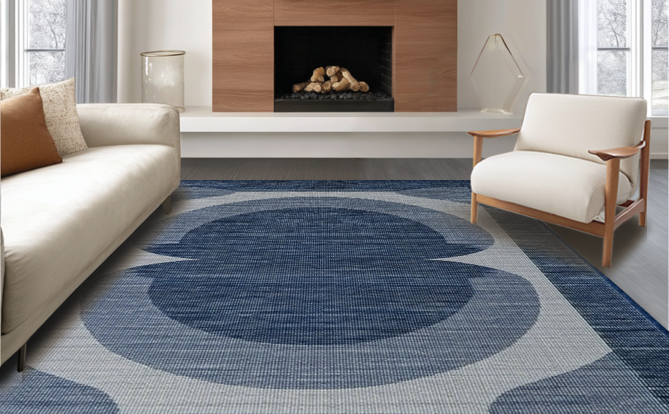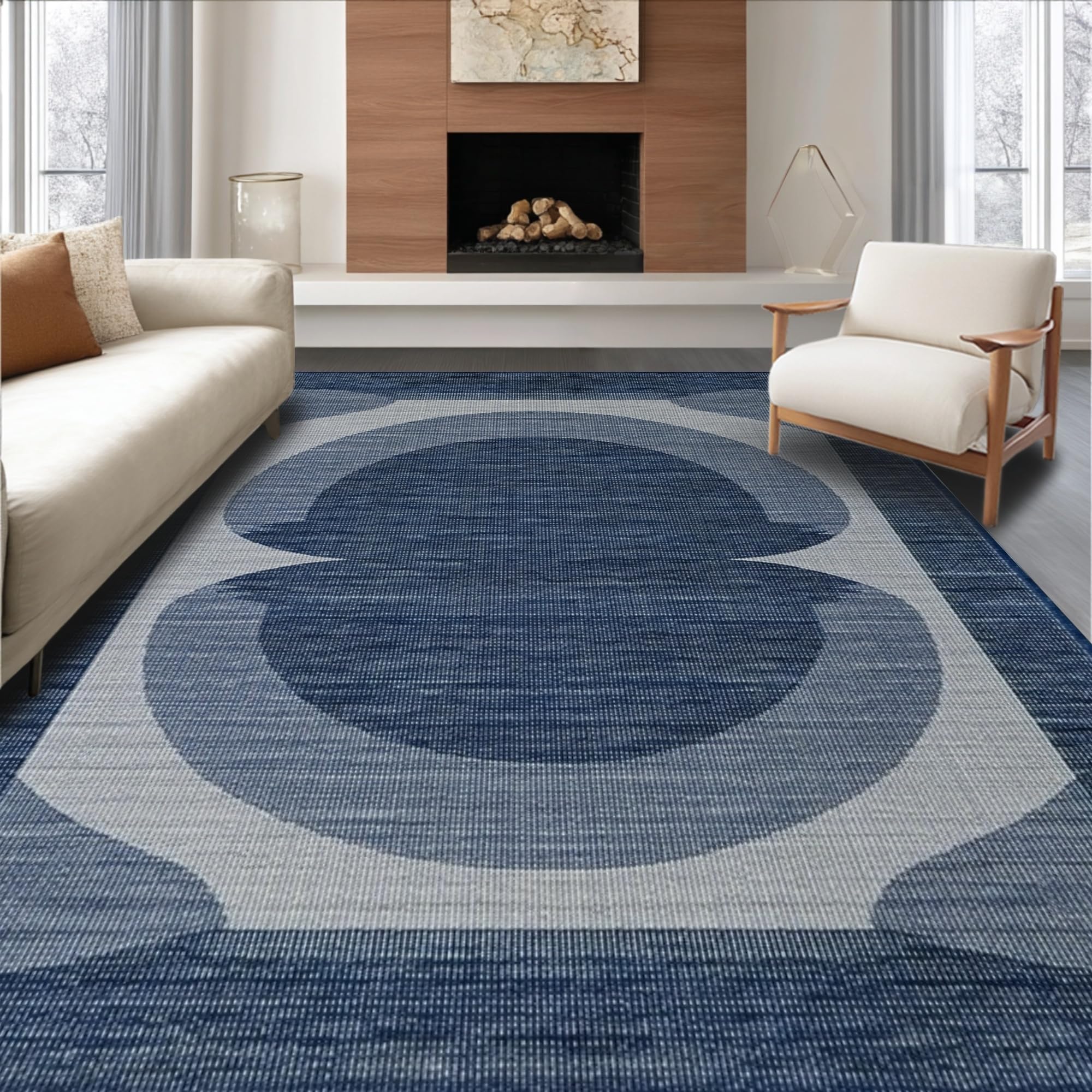 Ultra Soft Area Rug, Non Slip, Stain Resistant, Washable Area Rugs for Living Room, Bedroom, Artful Tiled Navy Display(Blue) Overview: