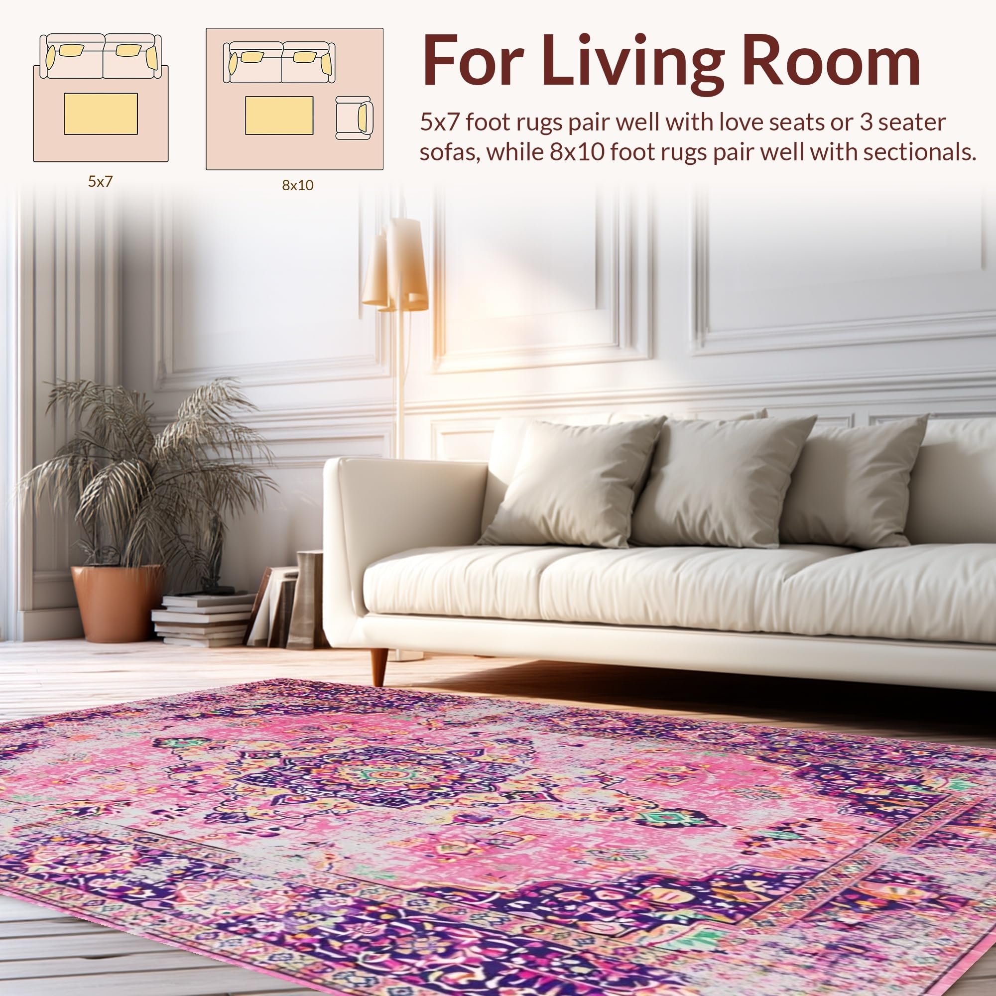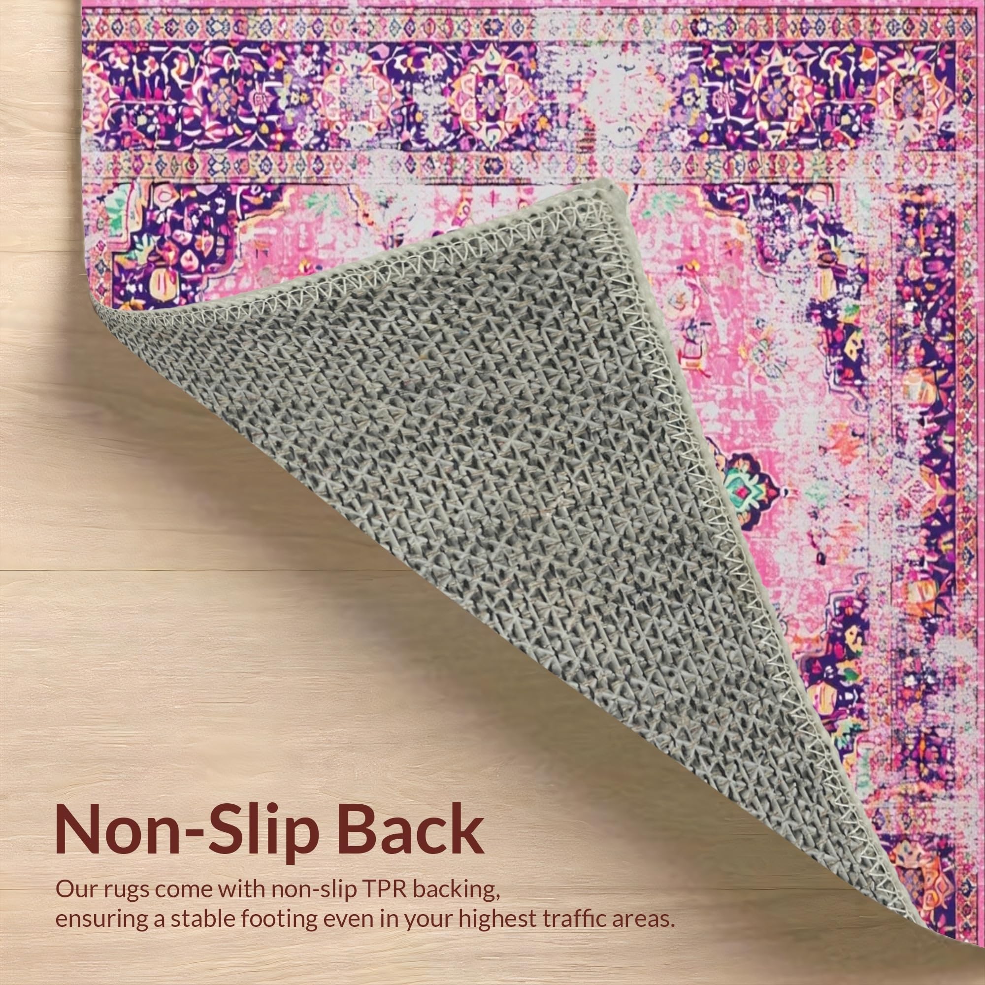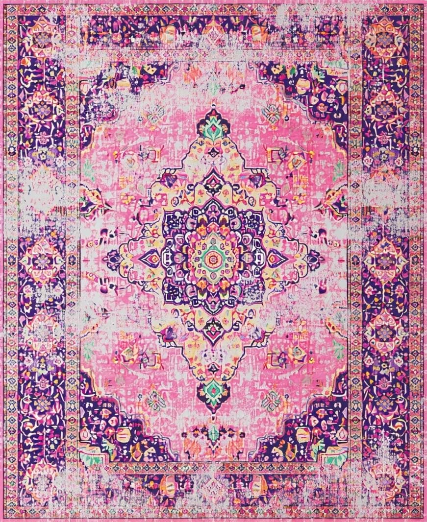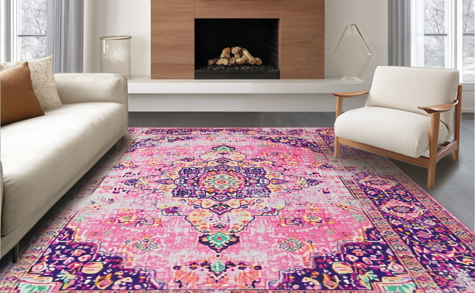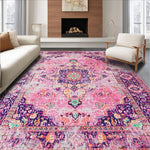 Ultra Soft Area Rug, Non Slip, Stain Resistant, Washable Area Rugs for Living Room, Bedroom, Artful Traditional Medallion Style(Pink) Overview: