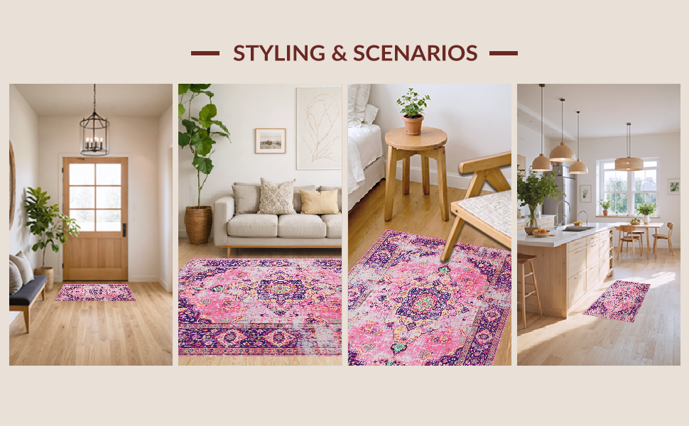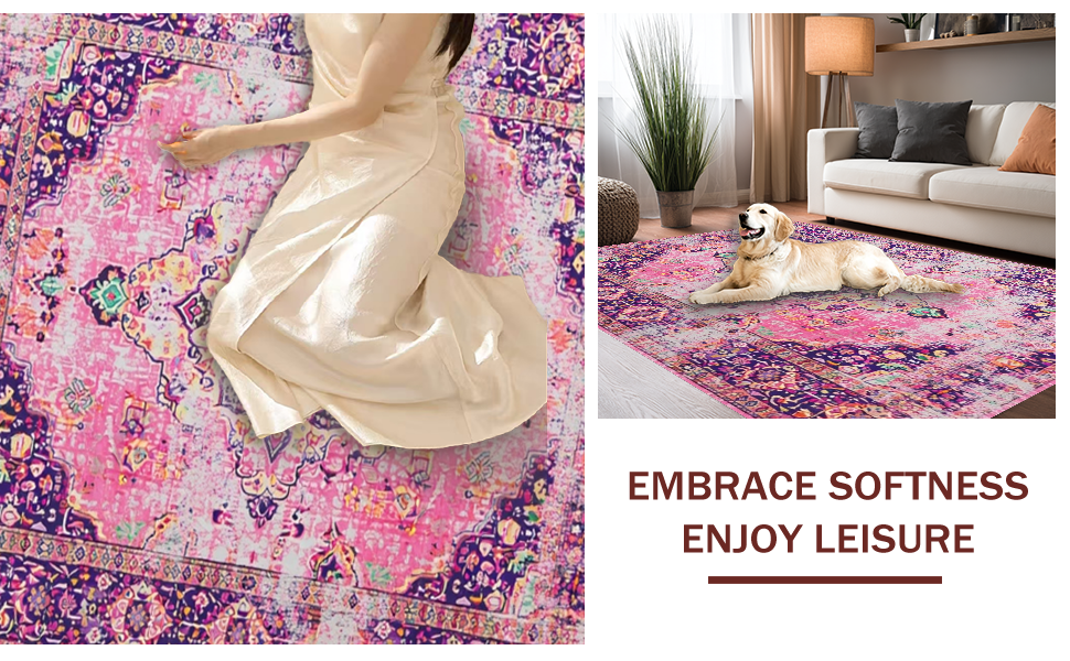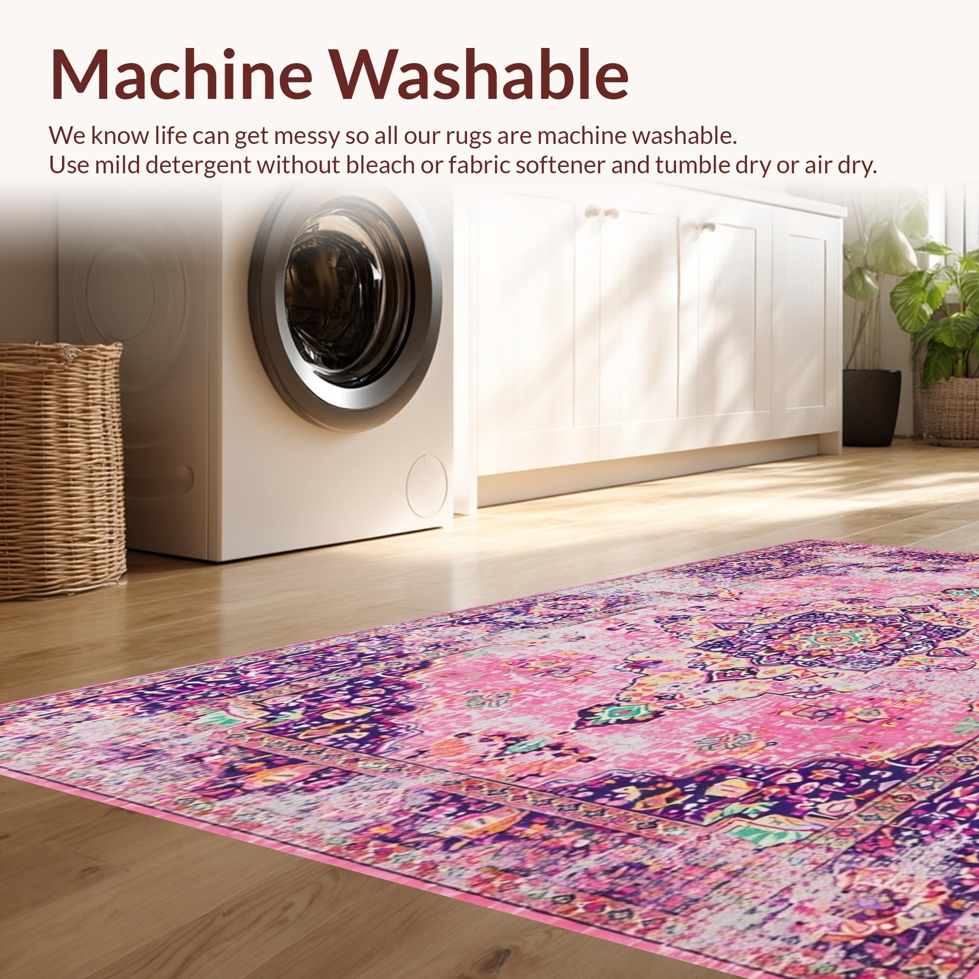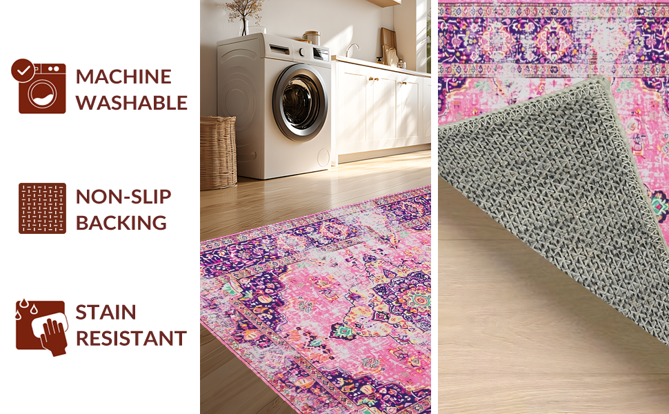 Ultra Soft Area Rug, Non Slip, Stain Resistant, Washable Area Rugs for Living Room, Bedroom, Artful Traditional Medallion Style(Pink) Overview: