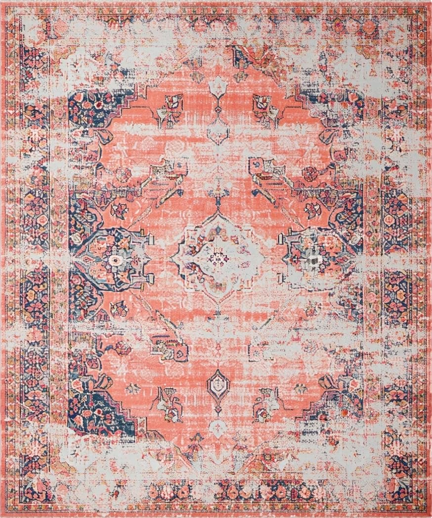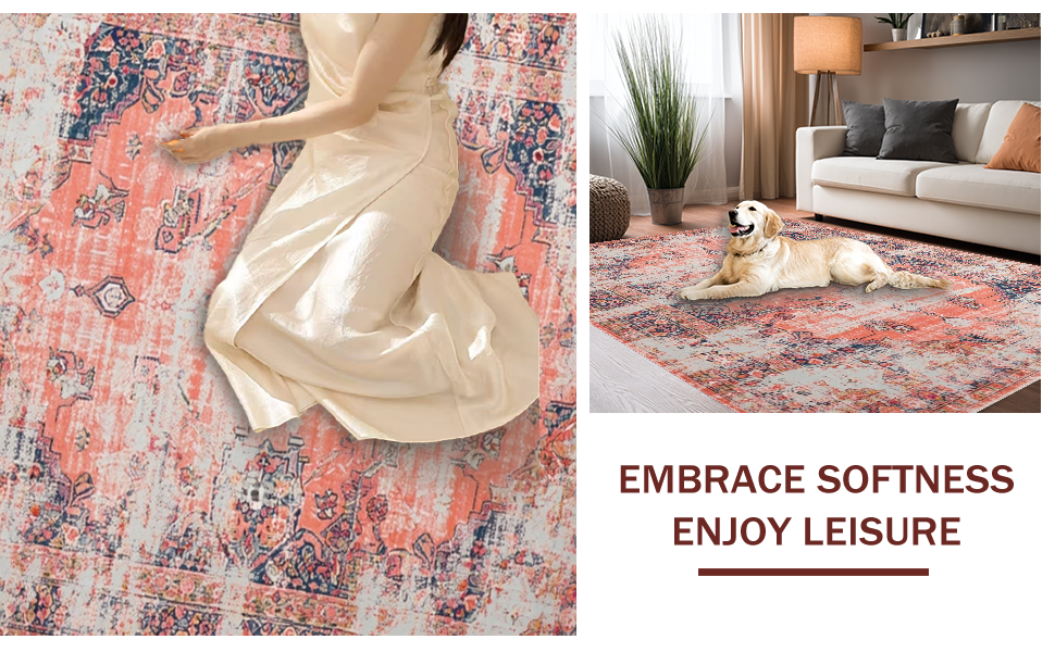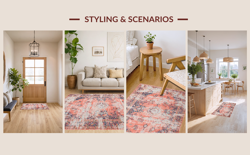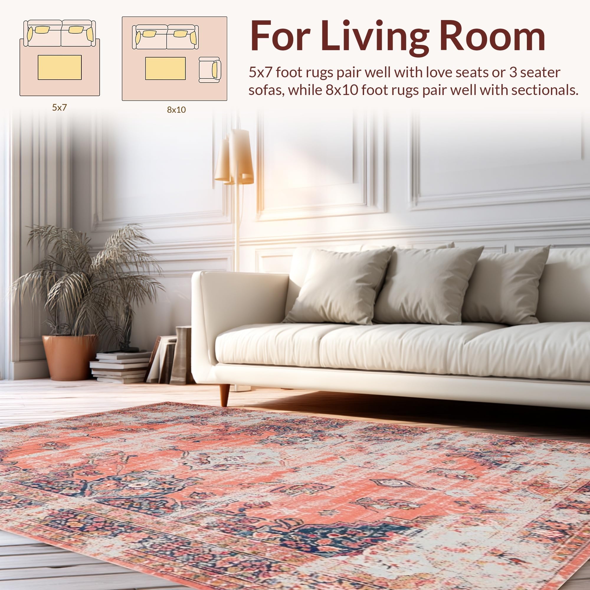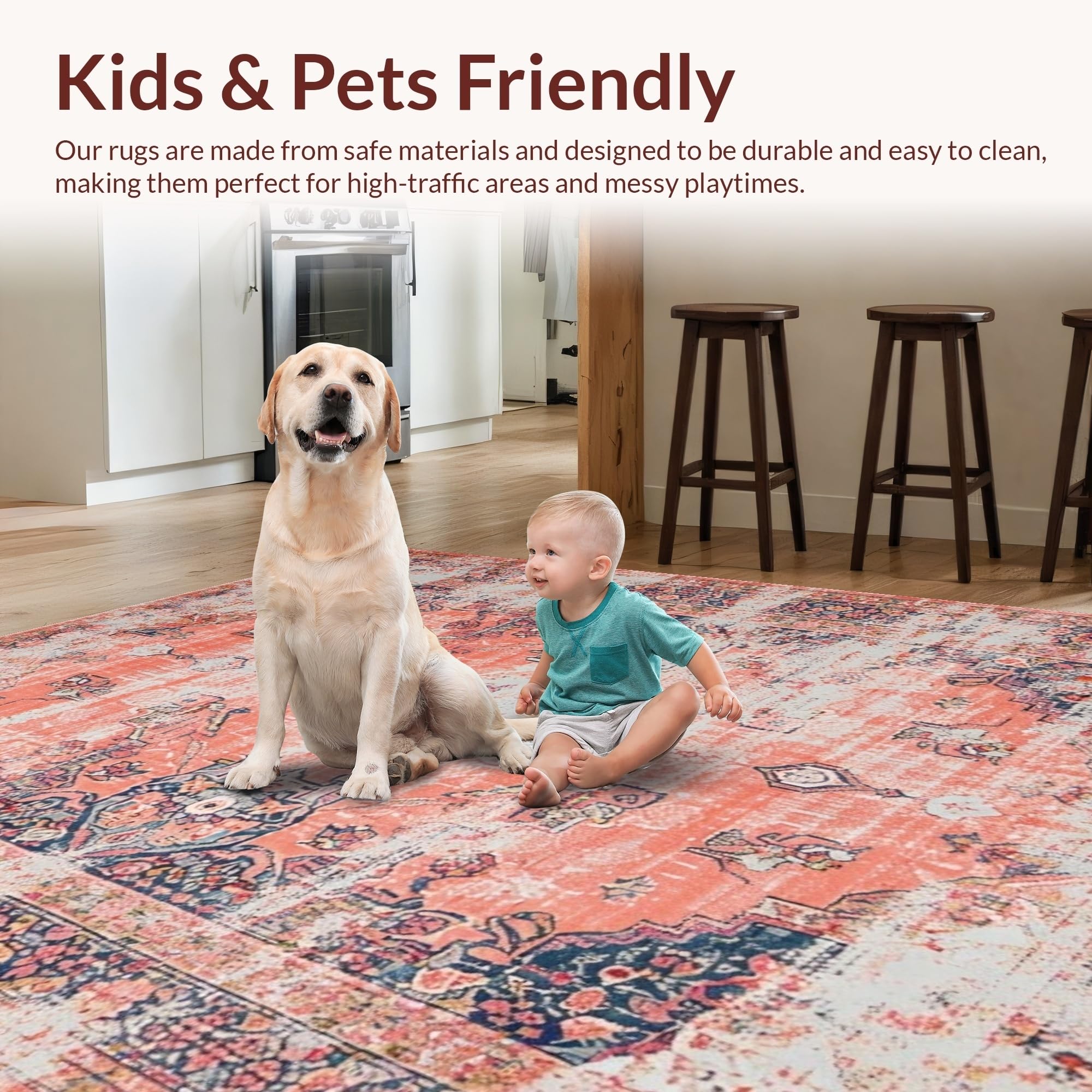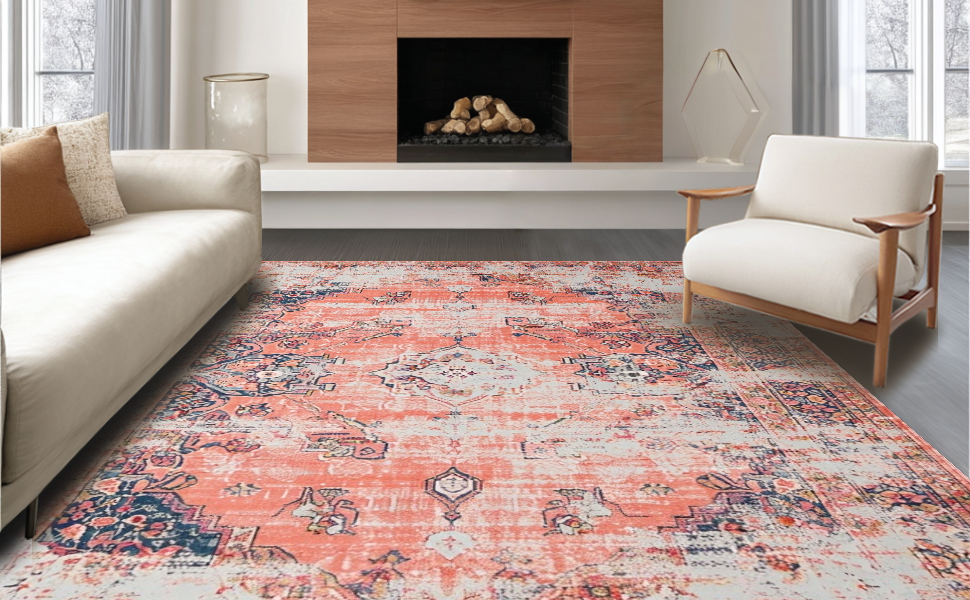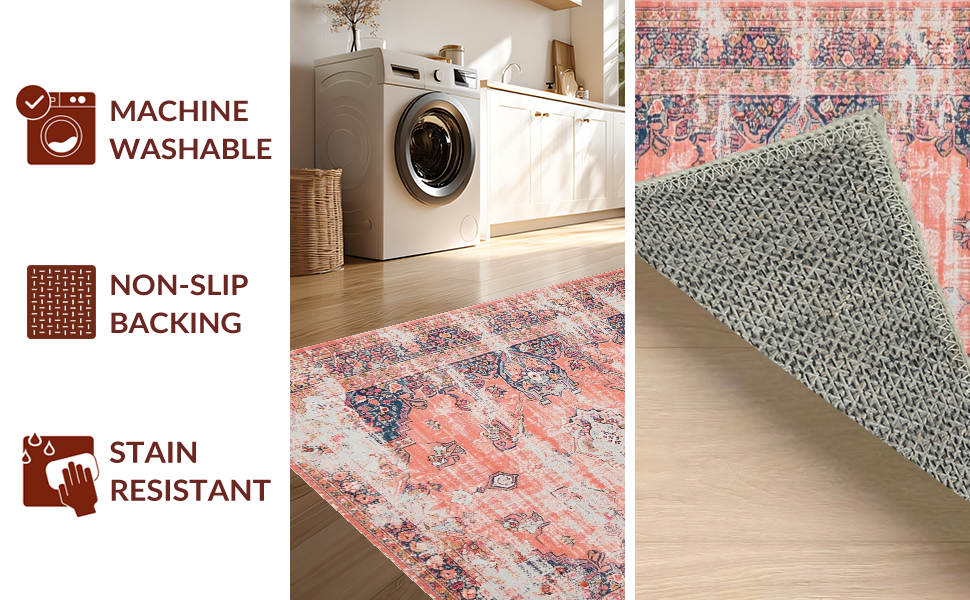 Ultra Soft Area Rug, Non Slip, Stain Resistant, Washable Area Rugs for Living Room, Bedroom, Artful Traditional Tiled Composition(Red) Overview: