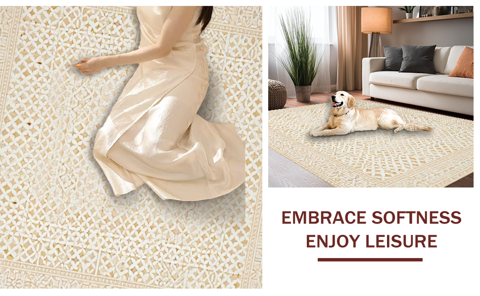Ultra Soft Area Rug, Non Slip, Stain Resistant, Washable Area Rugs for Living Room, Bedroom, Artful Transitional Ogee Style(Beige) Overview: