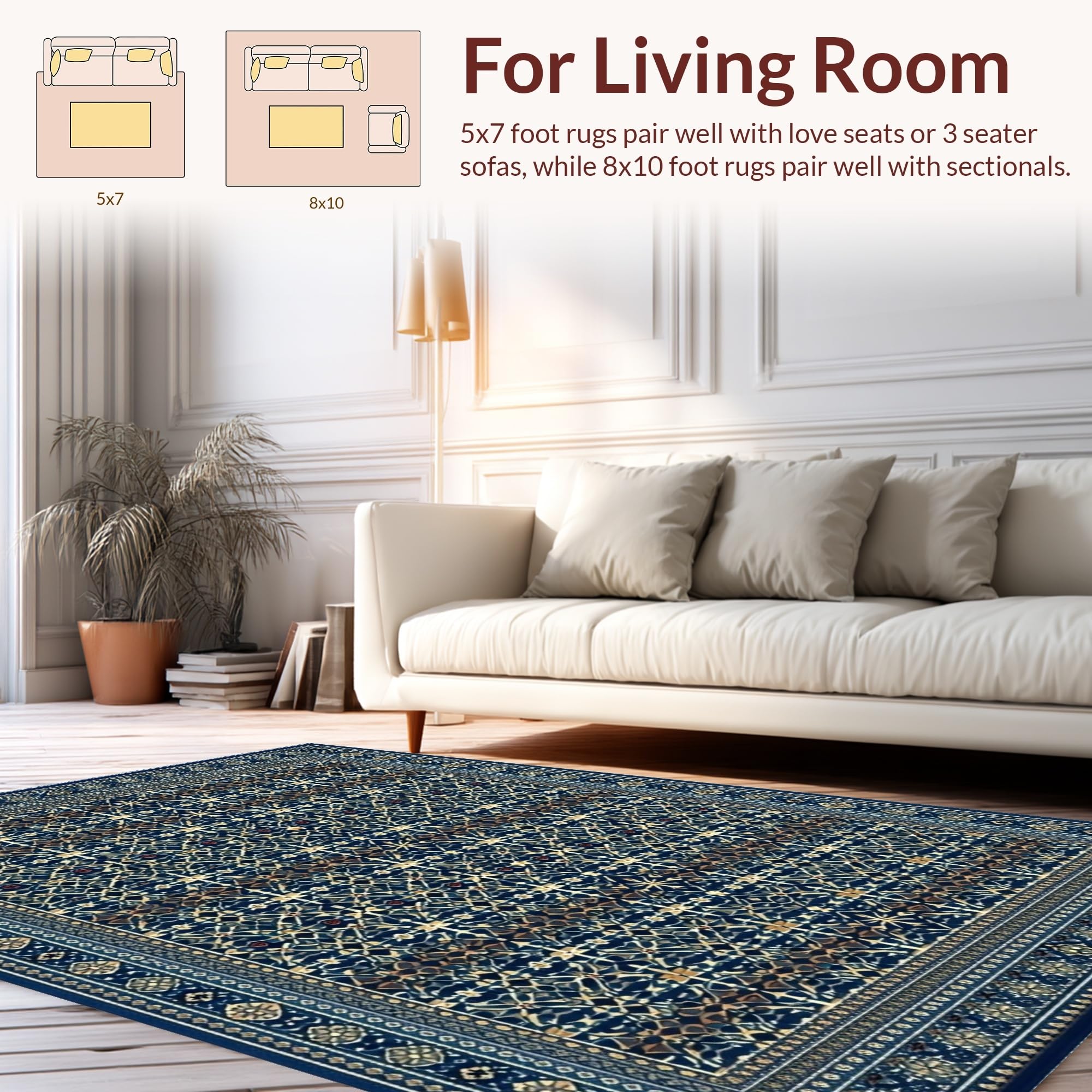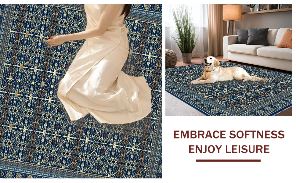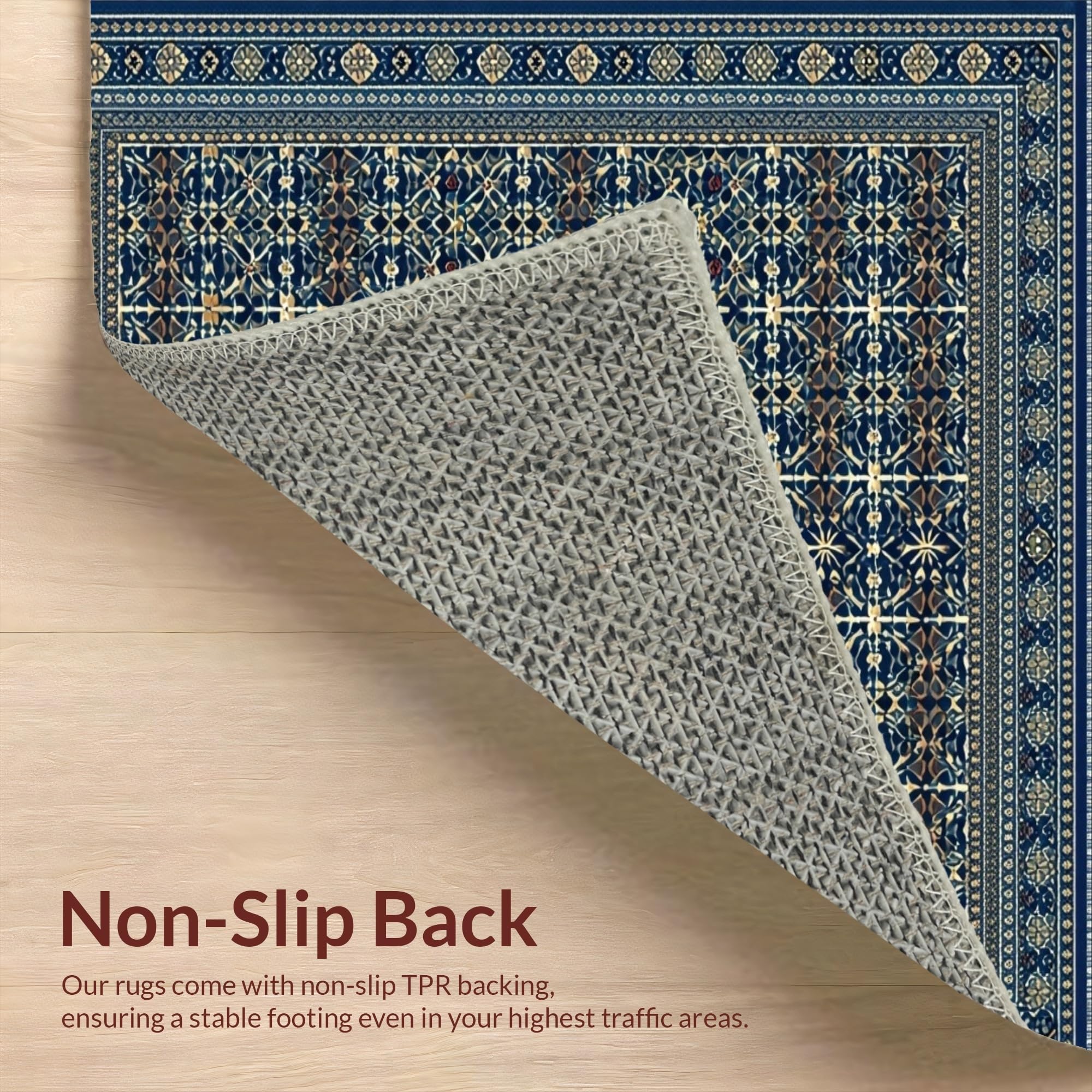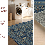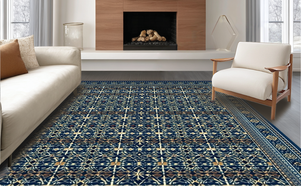 Ultra Soft Area Rug, Non Slip, Stain Resistant, Washable Area Rugs for Living Room, Bedroom, Artful Trellis Design in Warm Hues(Blue) Overview: