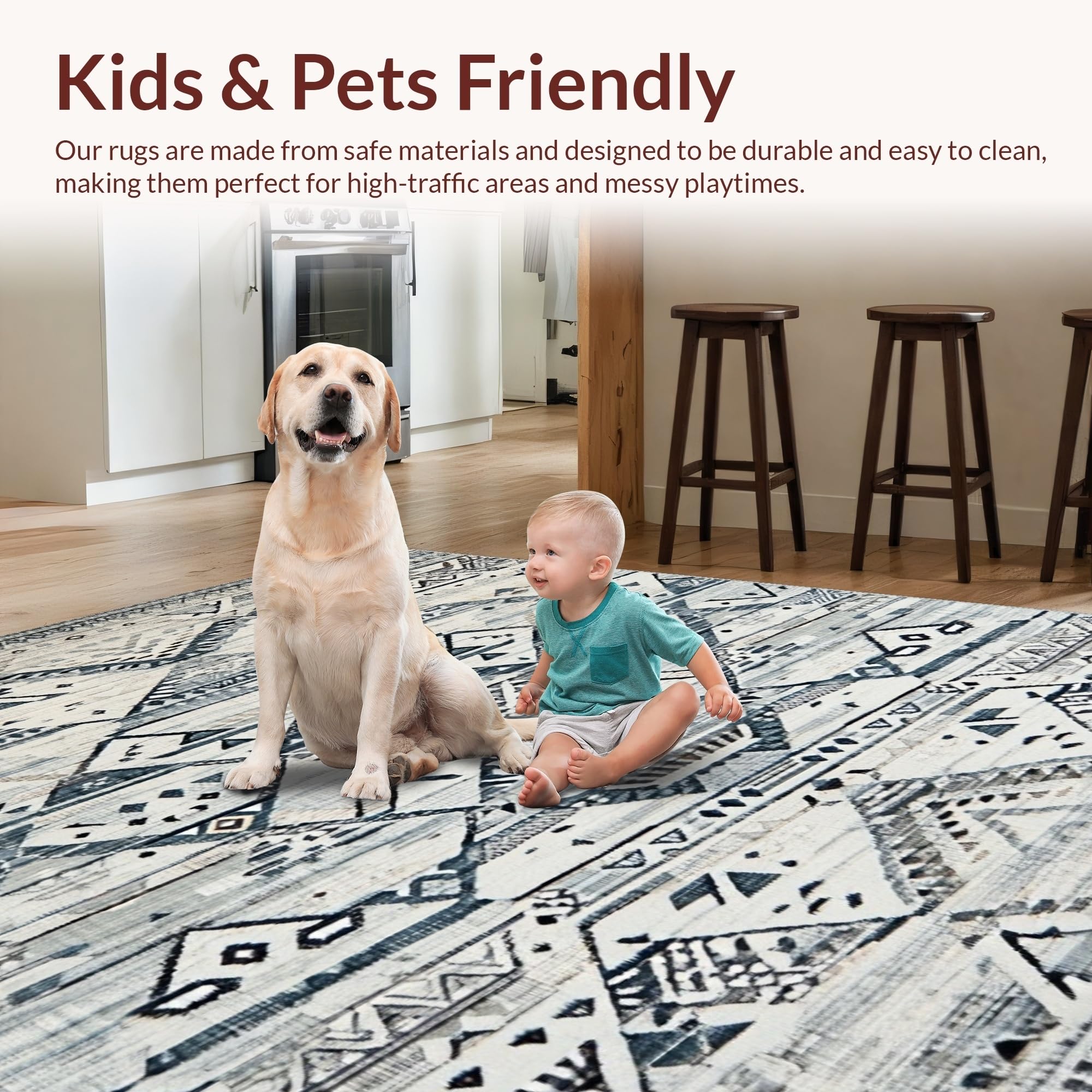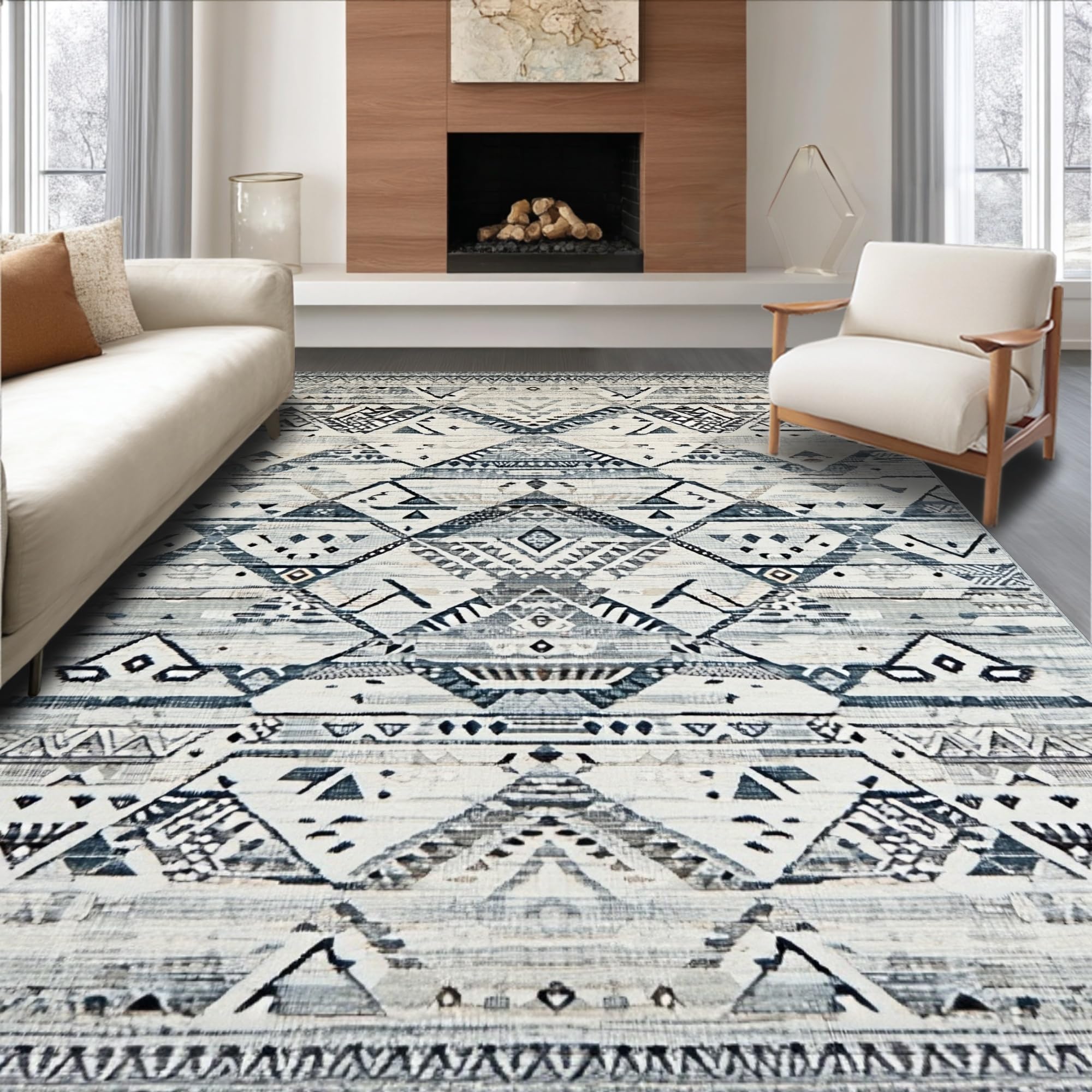 Ultra Soft Area Rug, Non Slip, Stain Resistant, Washable Area Rugs for Living Room, Bedroom, Artful Trellis Earth Tone Vibes(Gray) Overview: