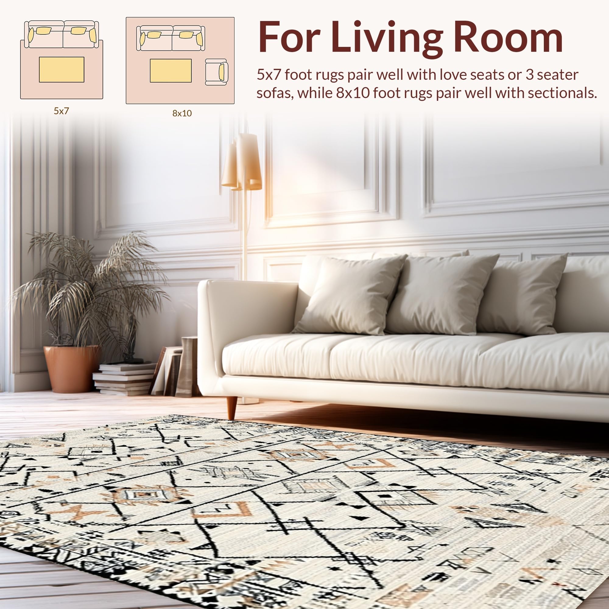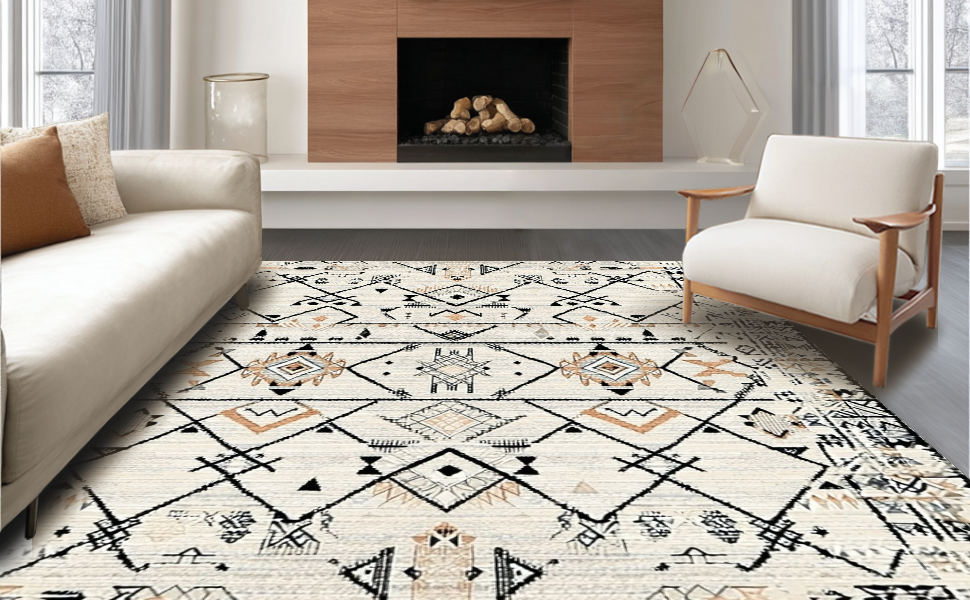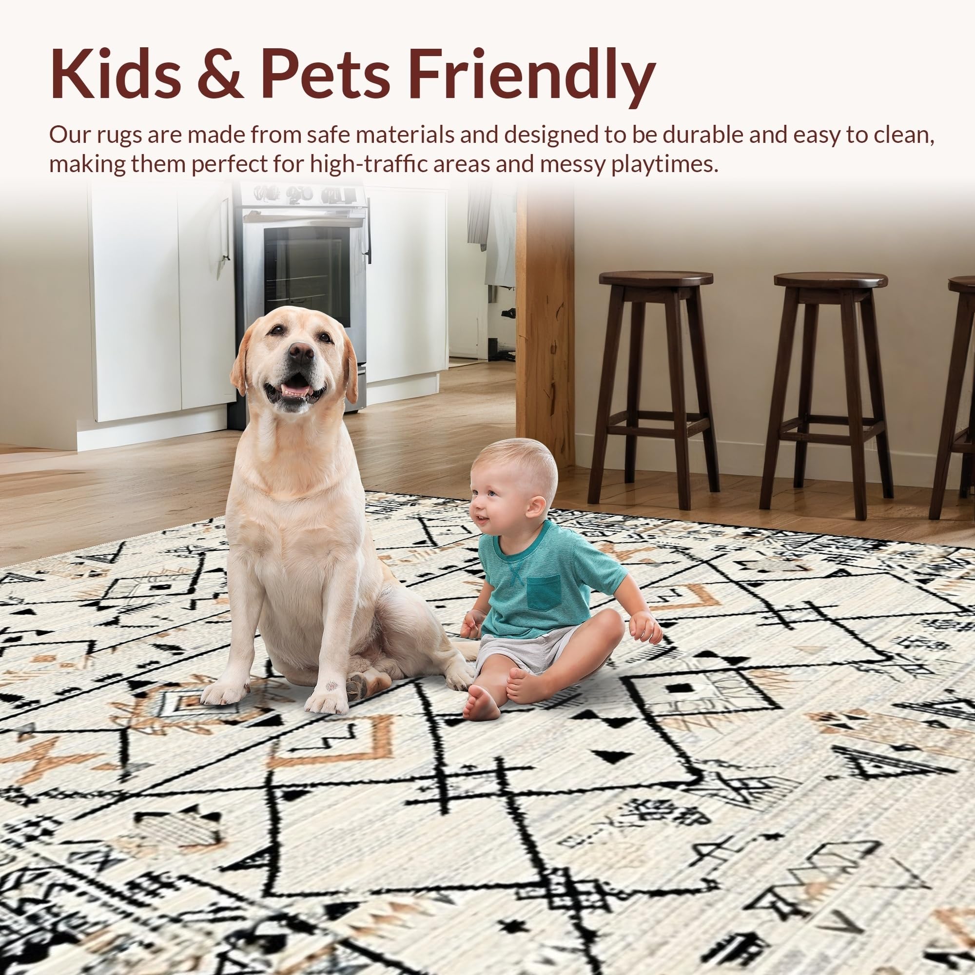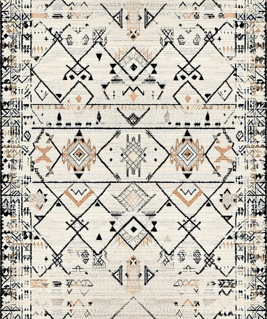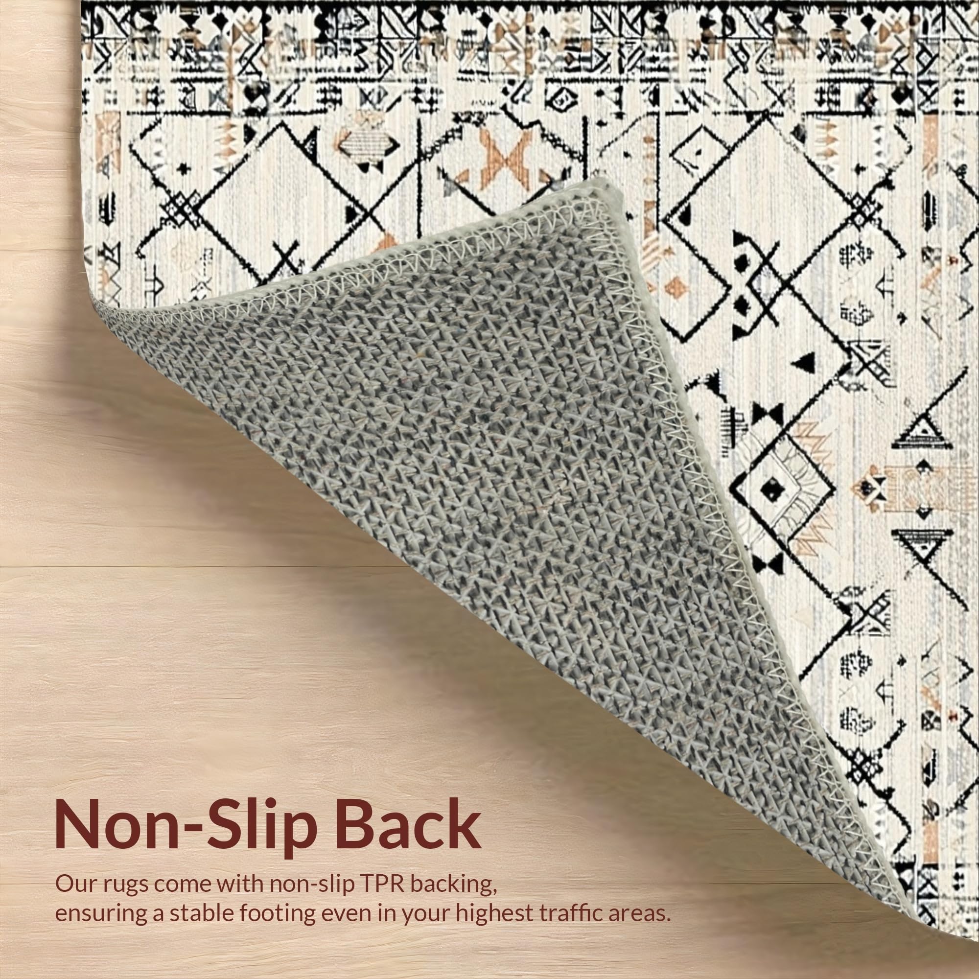 Ultra Soft Area Rug, Non Slip, Stain Resistant, Washable Area Rugs for Living Room, Bedroom, Artful Tribal Medallion Composition(Beige) Overview: