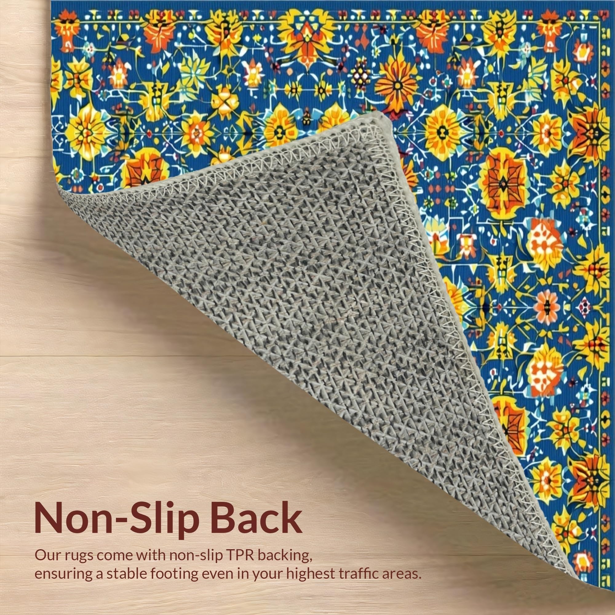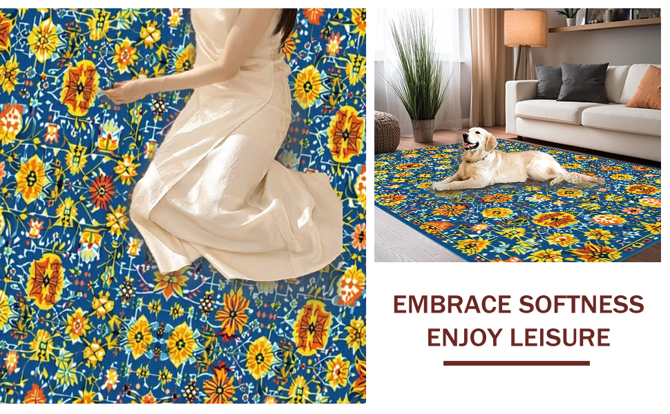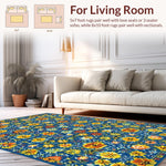 Ultra Soft Area Rug, Non Slip, Stain Resistant, Washable Area Rugs for Living Room, Bedroom, Artful Tropical Floral Arrangement(Blue) Overview: