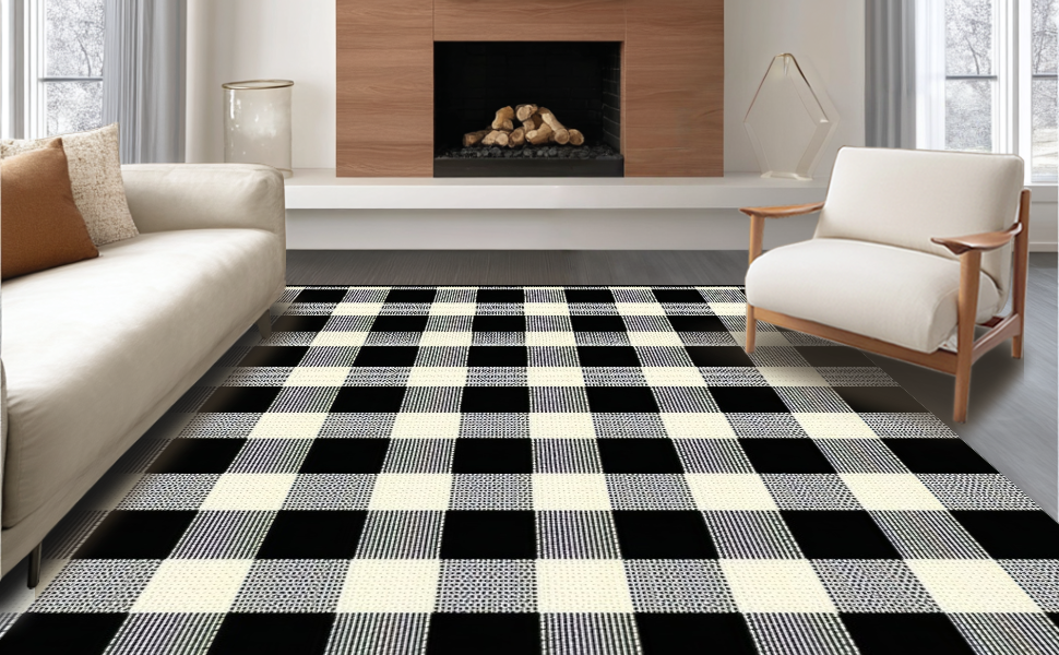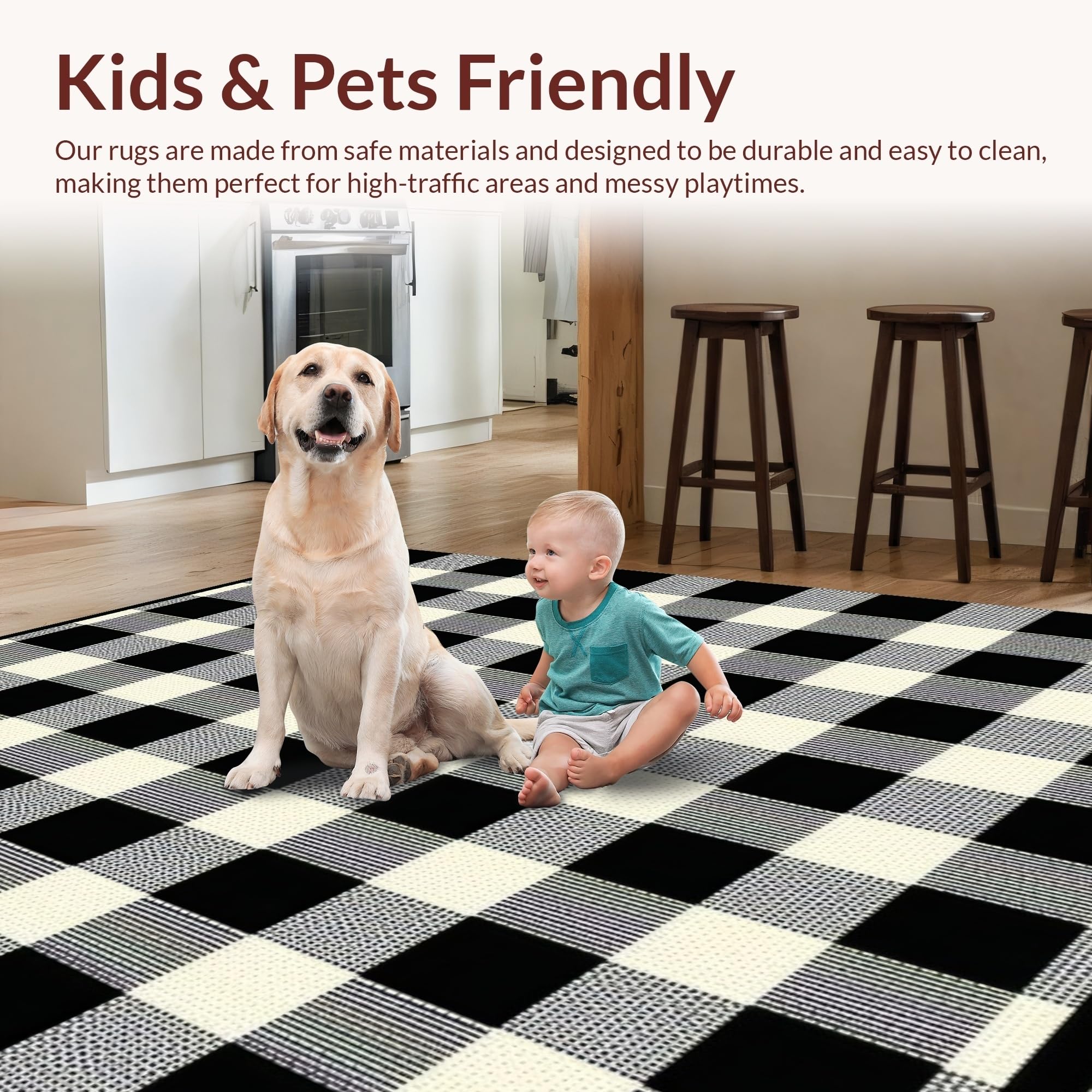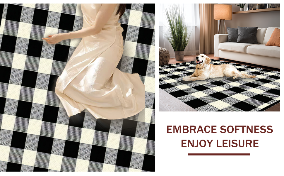 Ultra Soft Area Rug, Non Slip, Stain Resistant, Washable Area Rugs for Living Room, Bedroom, Artful Two-Tone Visual Appeal(Black) Overview: