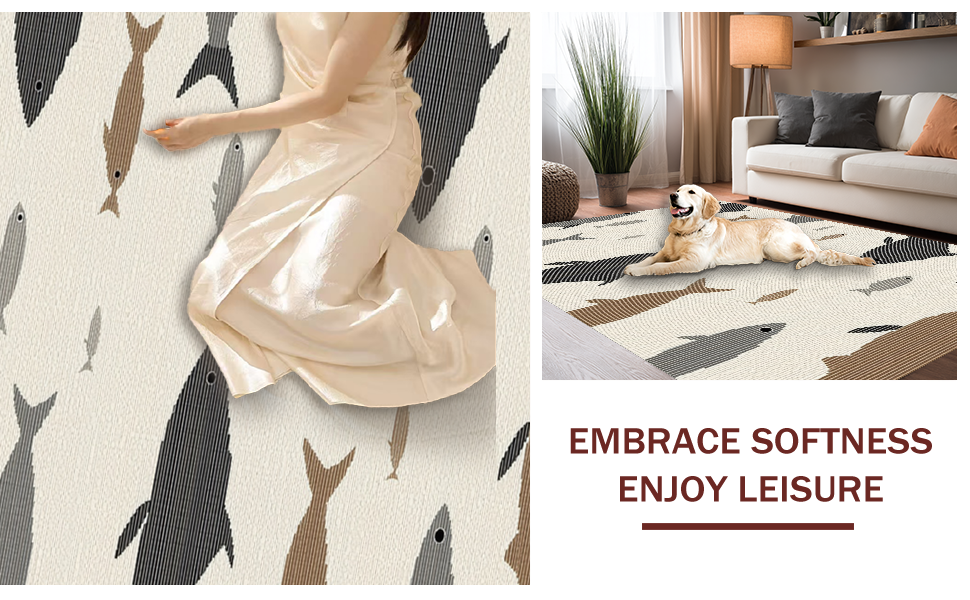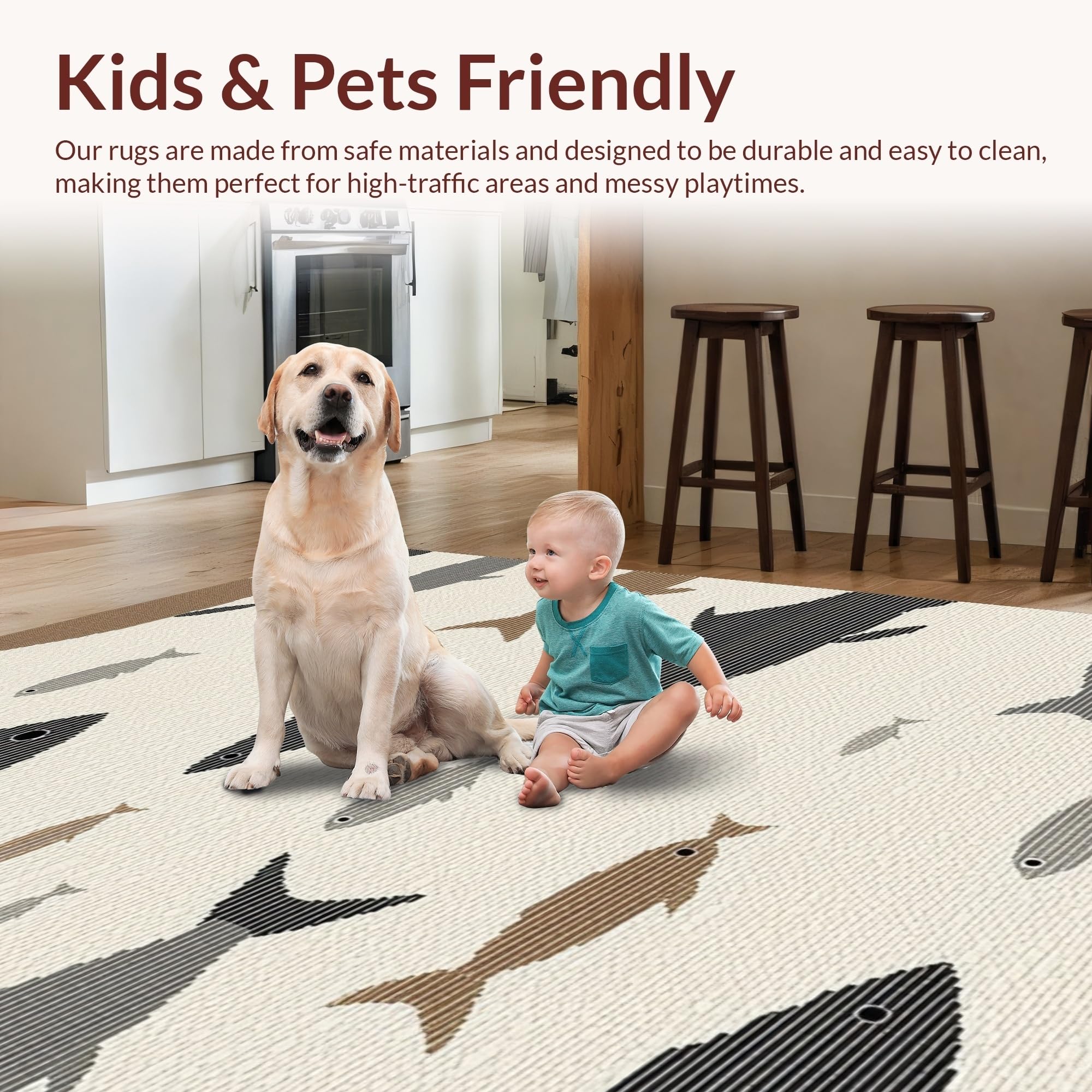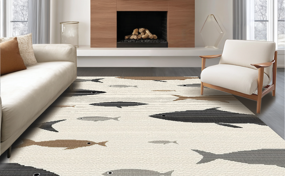 Ultra Soft Area Rug, Non Slip, Stain Resistant, Washable Area Rugs for Living Room, Bedroom, Artful Underwater Life Pattern(Beige) Overview: