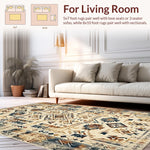 Ultra Soft Area Rug, Non Slip, Stain Resistant, Washable Area Rugs for Living Room, Bedroom, Artful Vintage Botanical Arrangement(Beige) Overview: