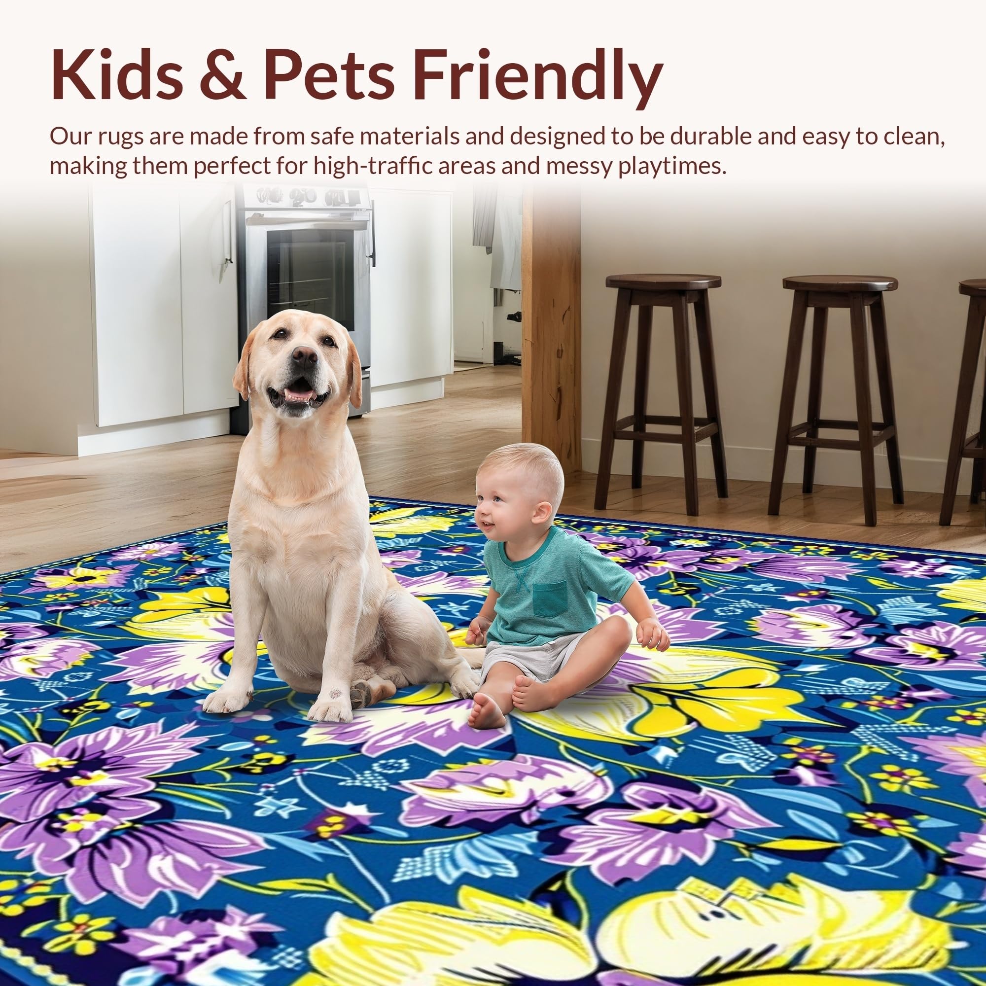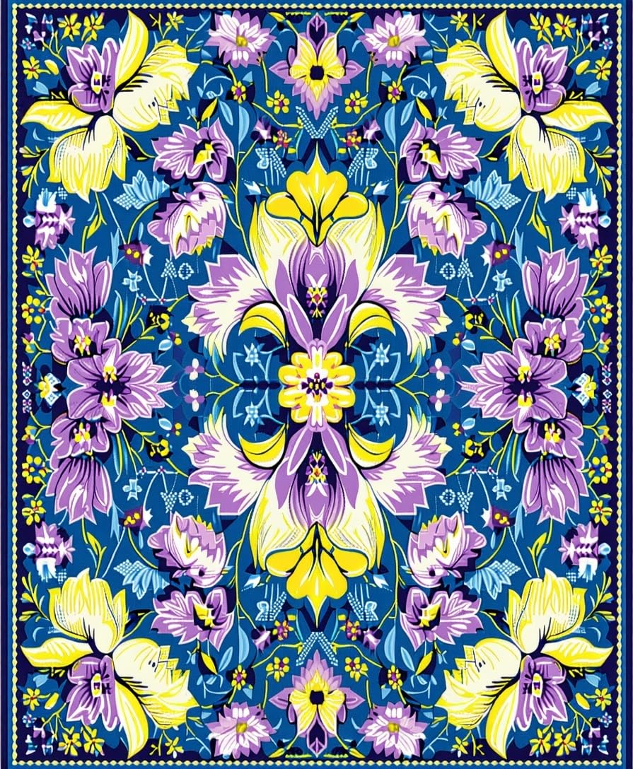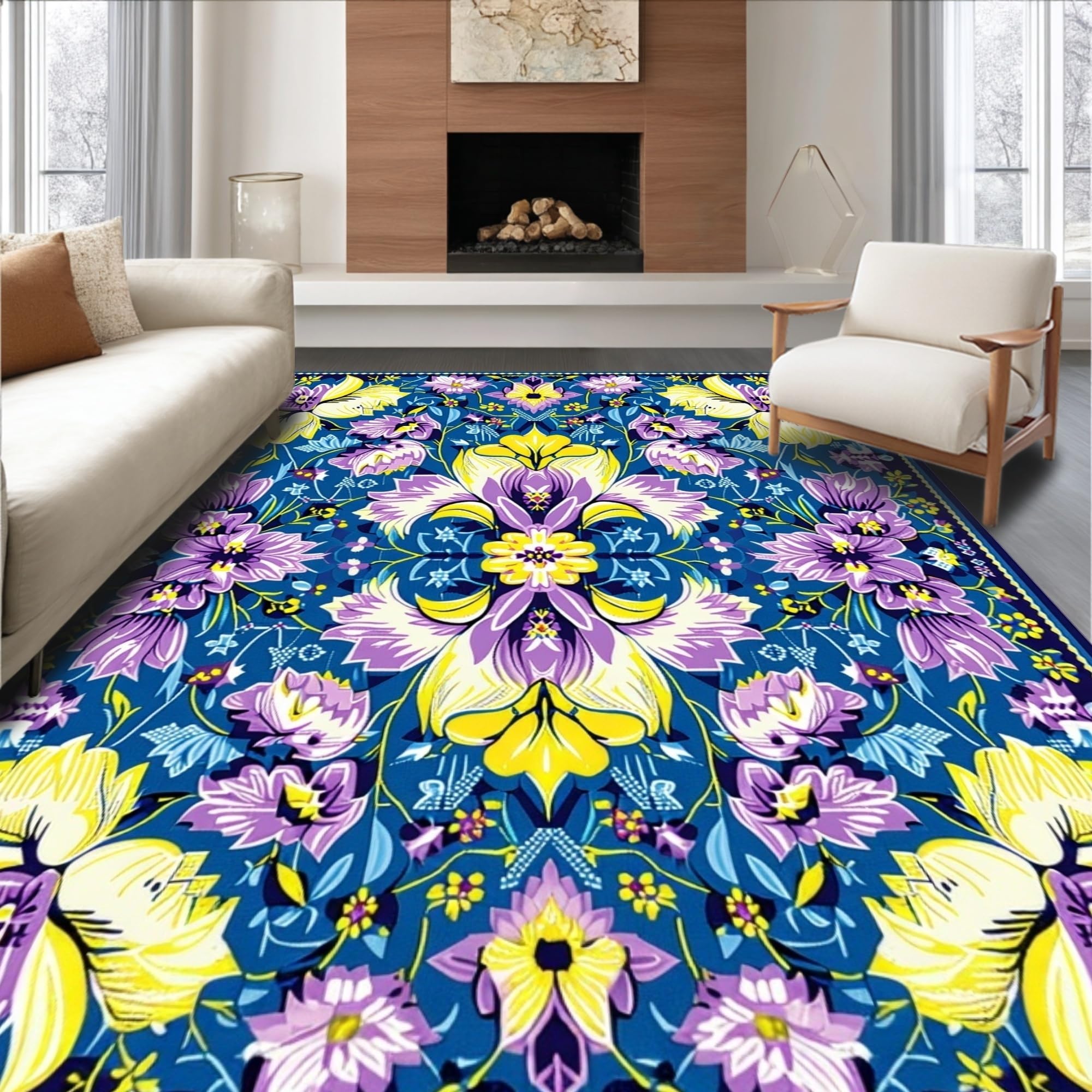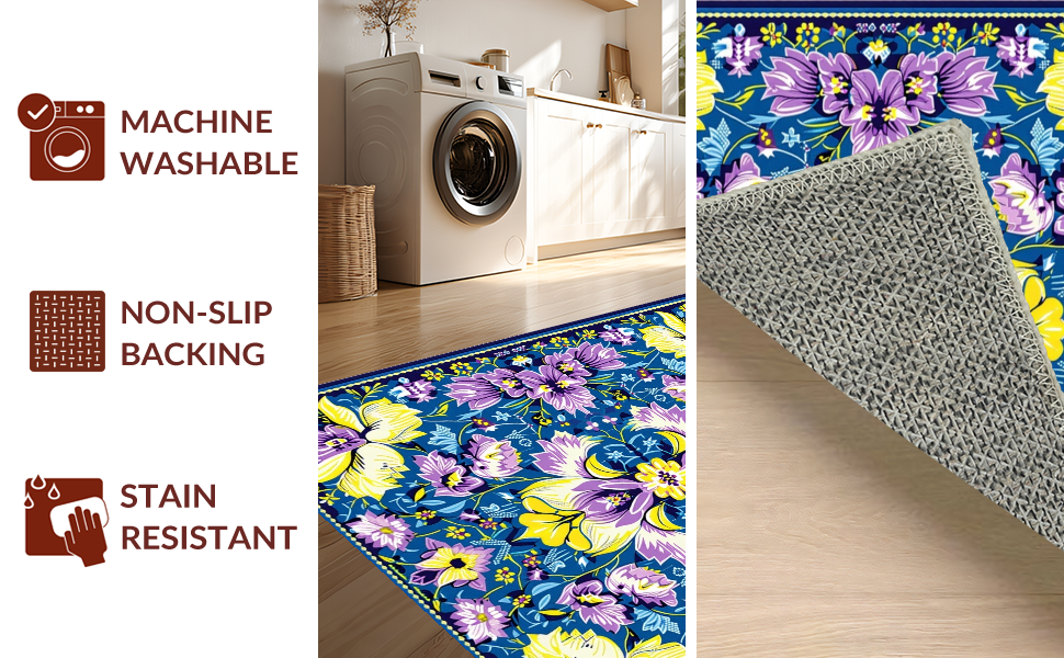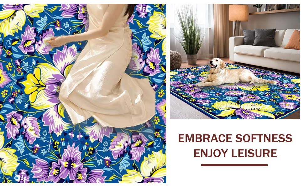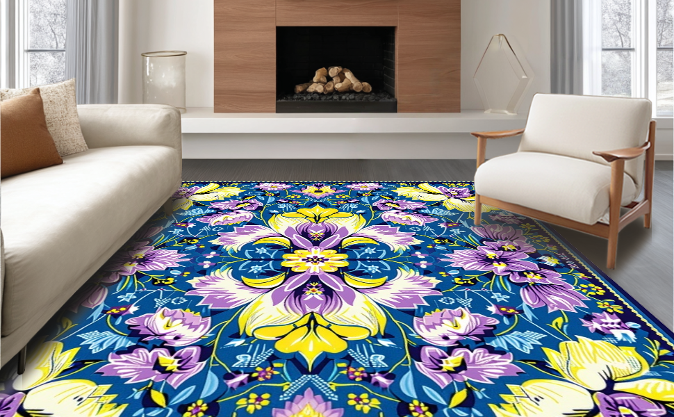 Ultra Soft Area Rug, Non Slip, Stain Resistant, Washable Area Rugs for Living Room, Bedroom, Artful Vintage Botanical Touch(Blue) Overview:
