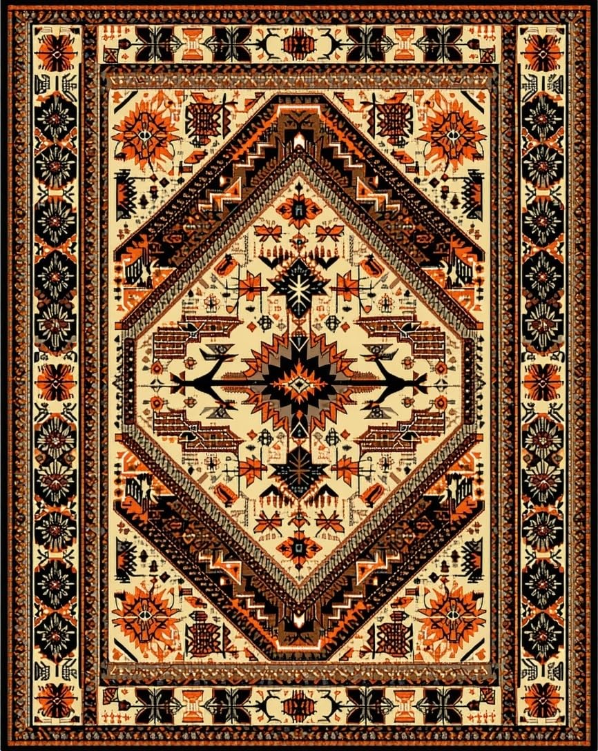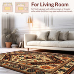Ultra Soft Area Rug, Non Slip, Stain Resistant, Washable Area Rugs for Living Room, Bedroom, Artful Vintage Circular Rug Theme(Beige) Overview: