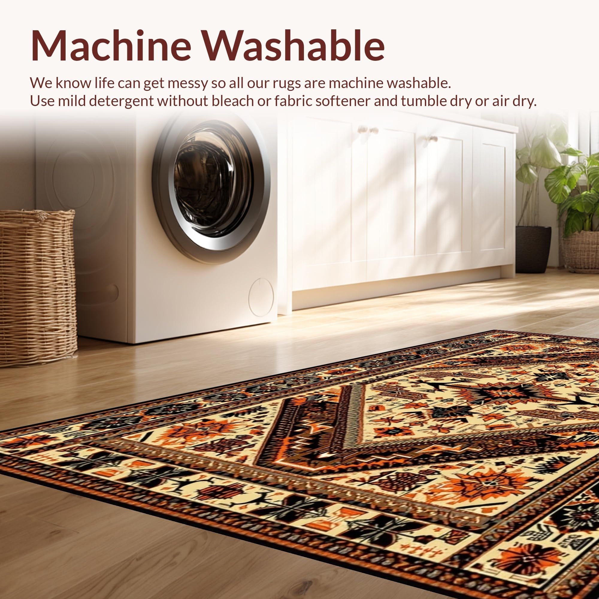 - Machine Washable: Our rugs can be easily thrown in the wash machine.