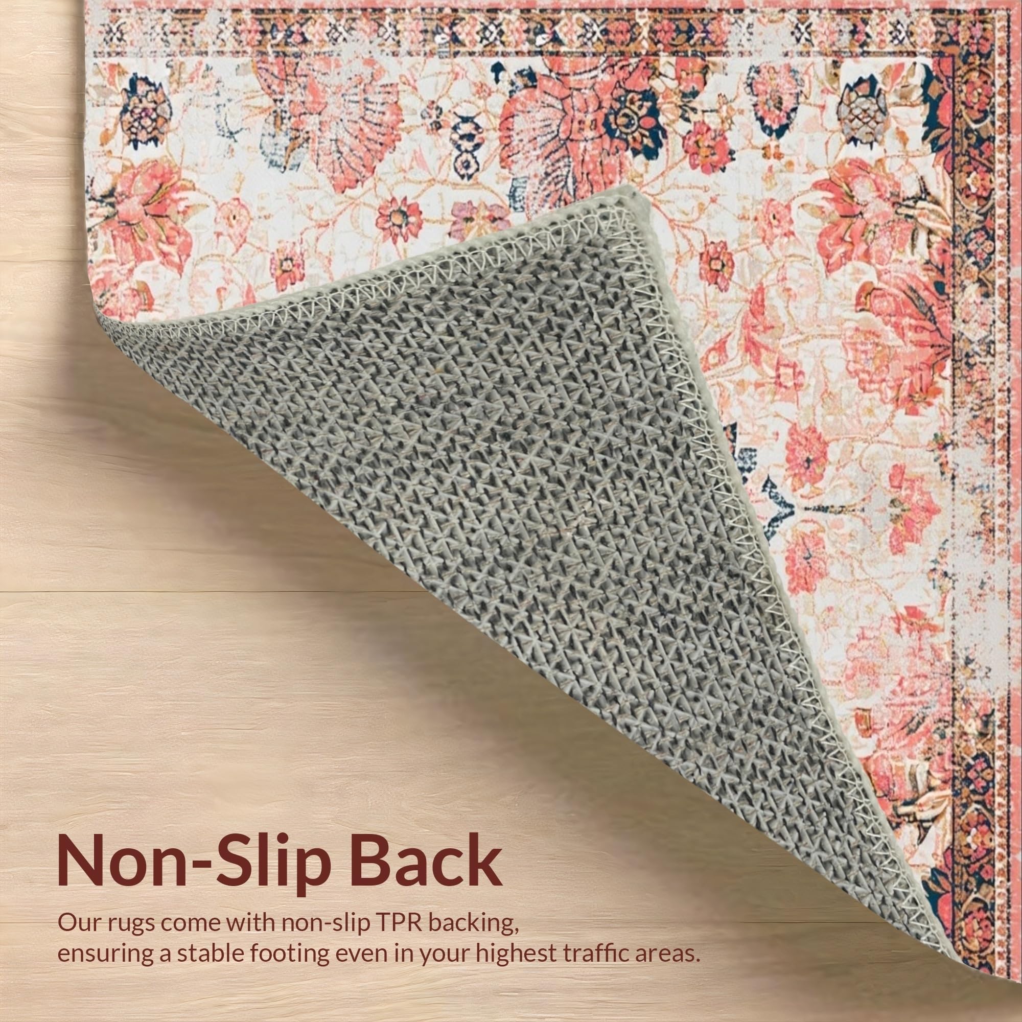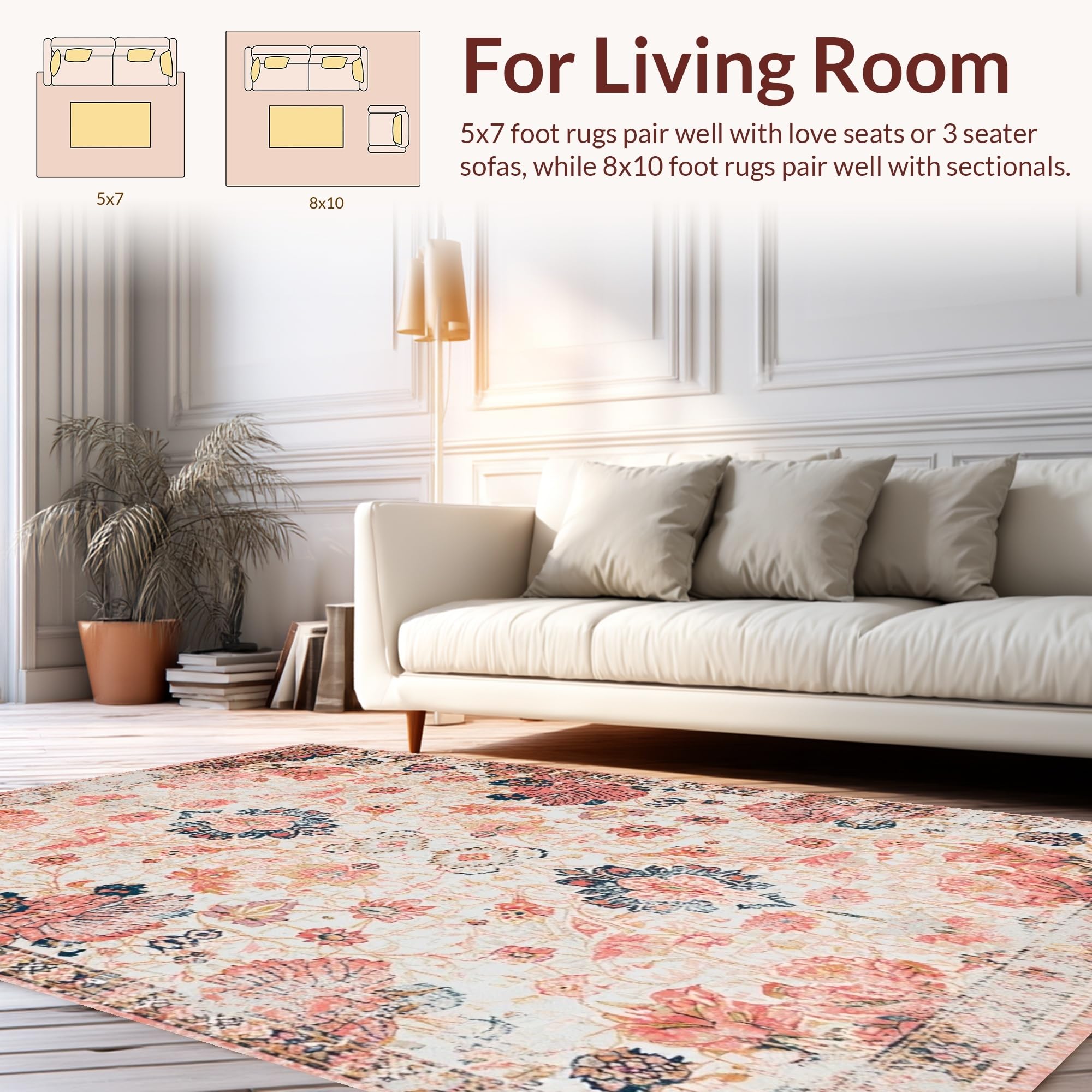 Ultra Soft Area Rug, Non Slip, Stain Resistant, Washable Area Rugs for Living Room, Bedroom, Artful Vintage Inspired Flourish(Beige) Overview:
