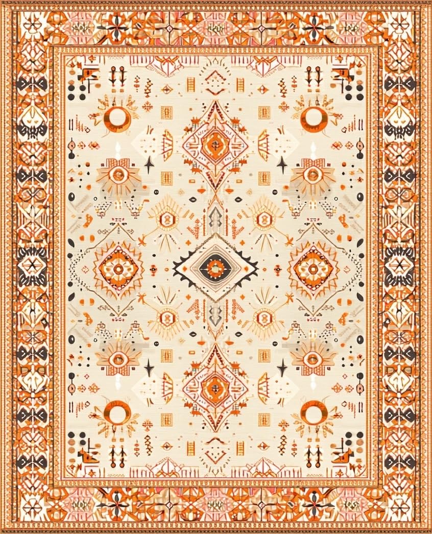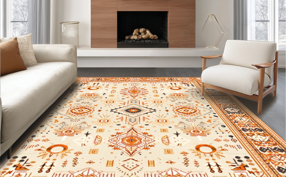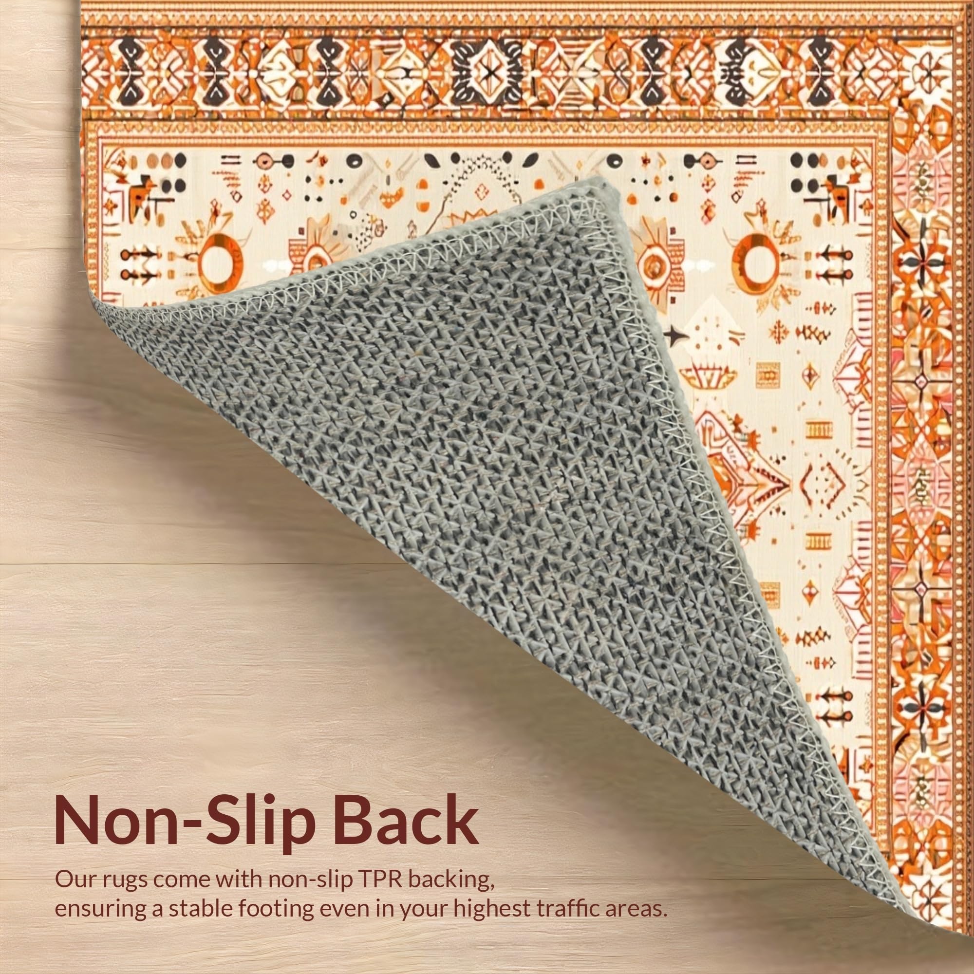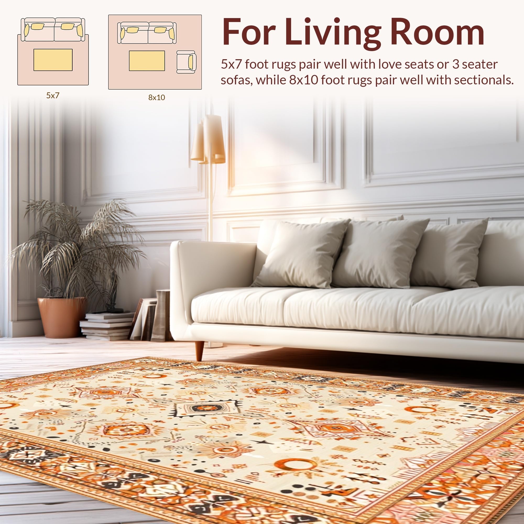 Ultra Soft Area Rug, Non Slip, Stain Resistant, Washable Area Rugs for Living Room, Bedroom, Artful Vintage Medallion Design(Beige) Overview: