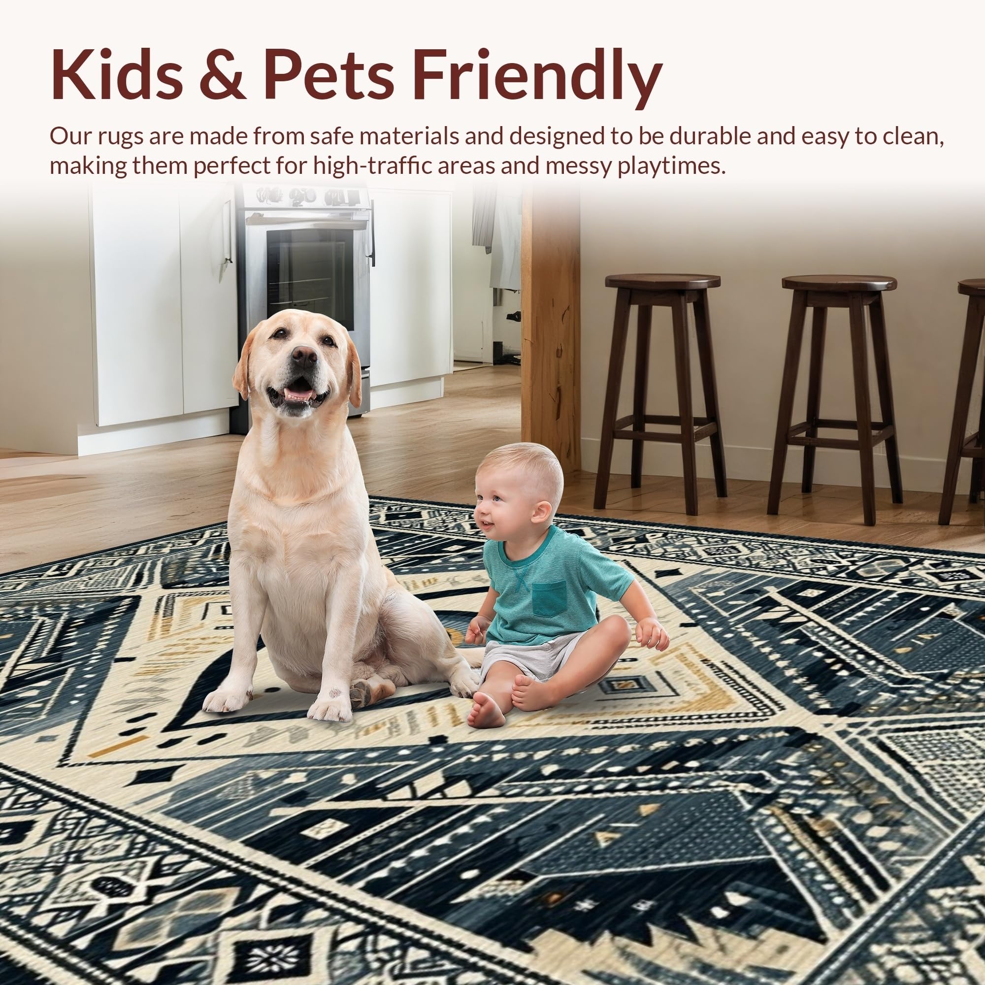 Ultra Soft Area Rug, Non Slip, Stain Resistant, Washable Area Rugs for Living Room, Bedroom, Artful Vintage Medallion Visual Appeal(Gray) Overview: