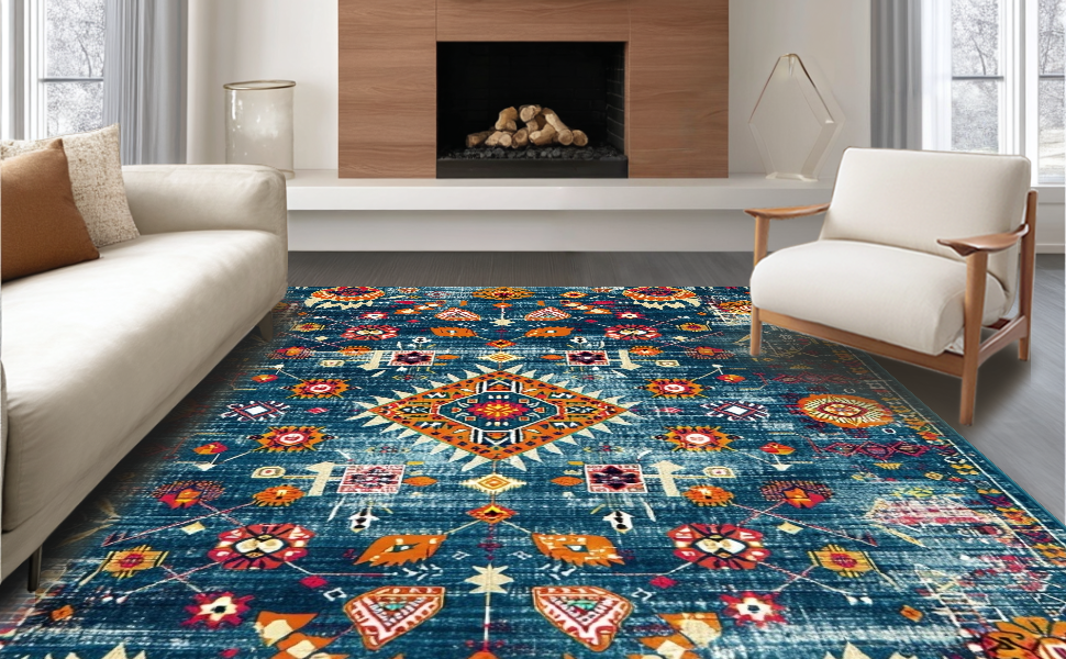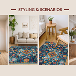 Ultra Soft Area Rug, Non Slip, Stain Resistant, Washable Area Rugs for Living Room, Bedroom, Artful Vintage Swirl Composition(Blue) Overview: