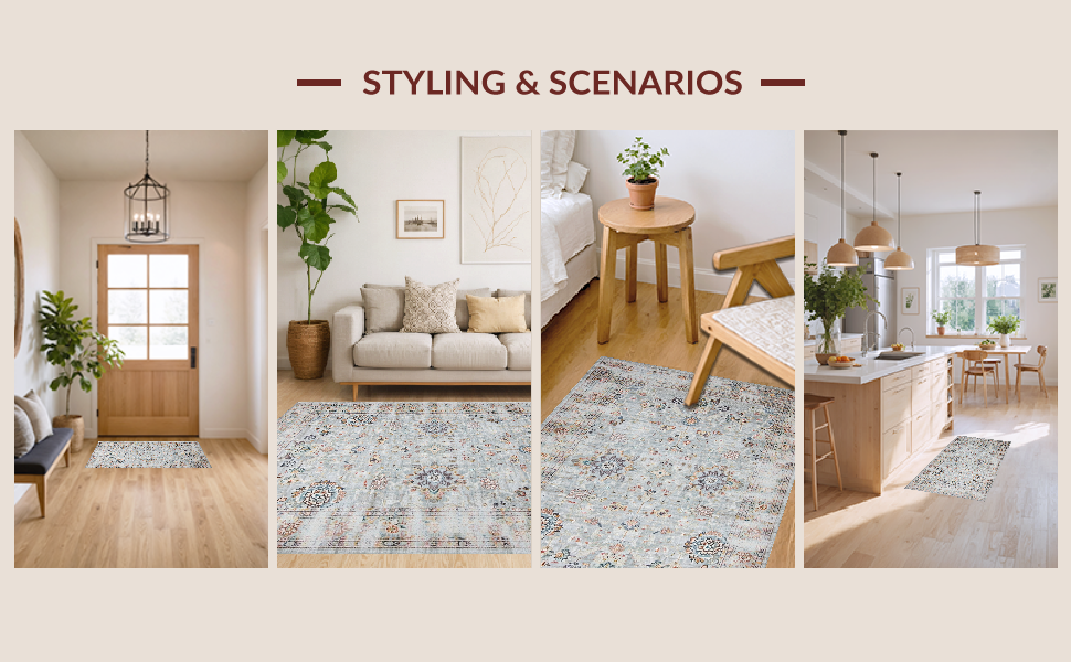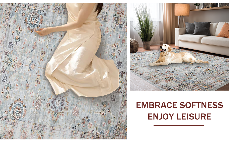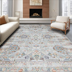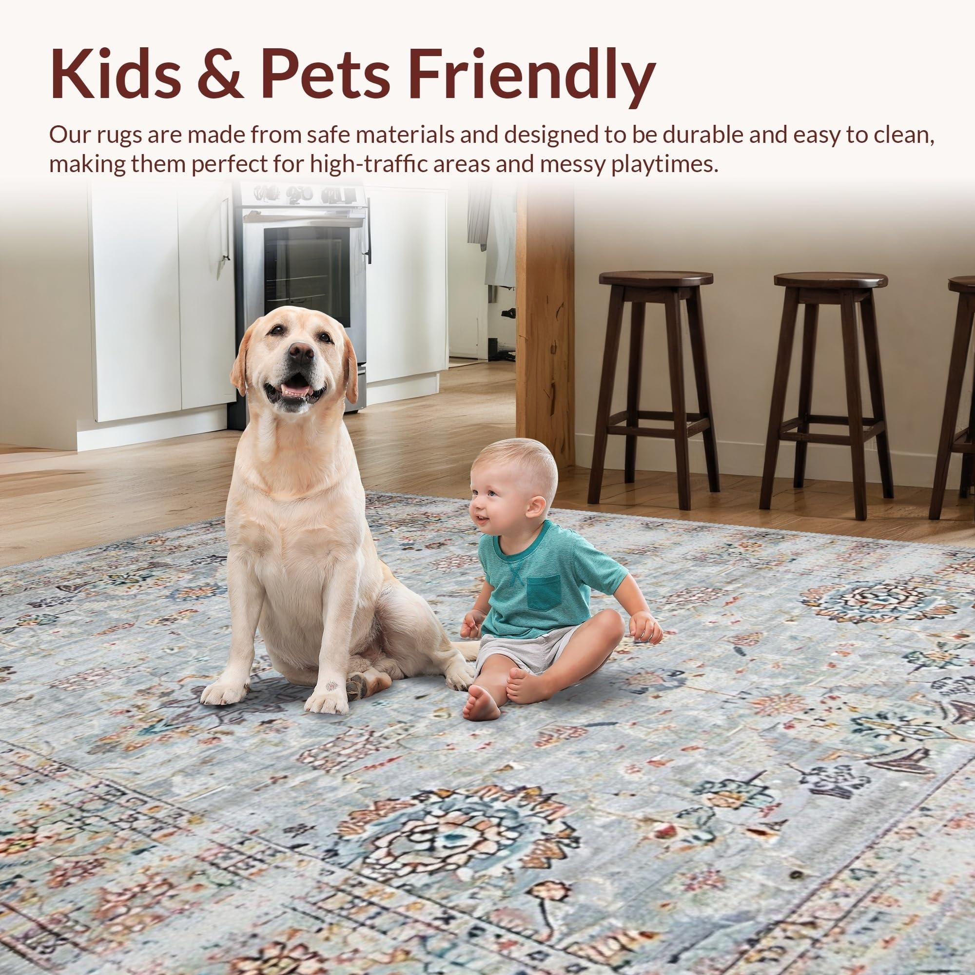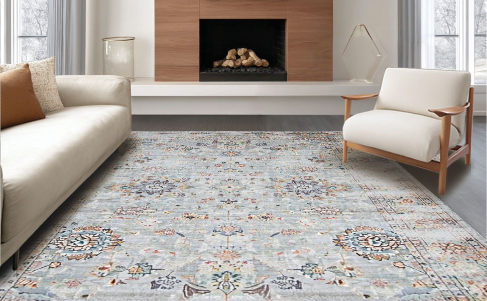 Ultra Soft Area Rug, Non Slip, Stain Resistant, Washable Area Rugs for Living Room, Bedroom, Artful Vintage Trellis Composition(Gray) Overview:
