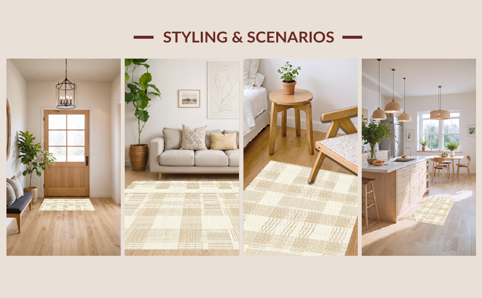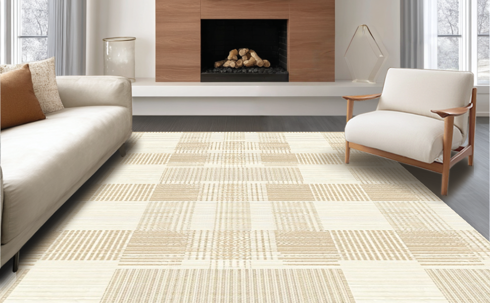 Ultra Soft Area Rug, Non Slip, Stain Resistant, Washable Area Rugs for Living Room, Bedroom, Artful Warm Toned Symmetrical Design(Beige) Overview: