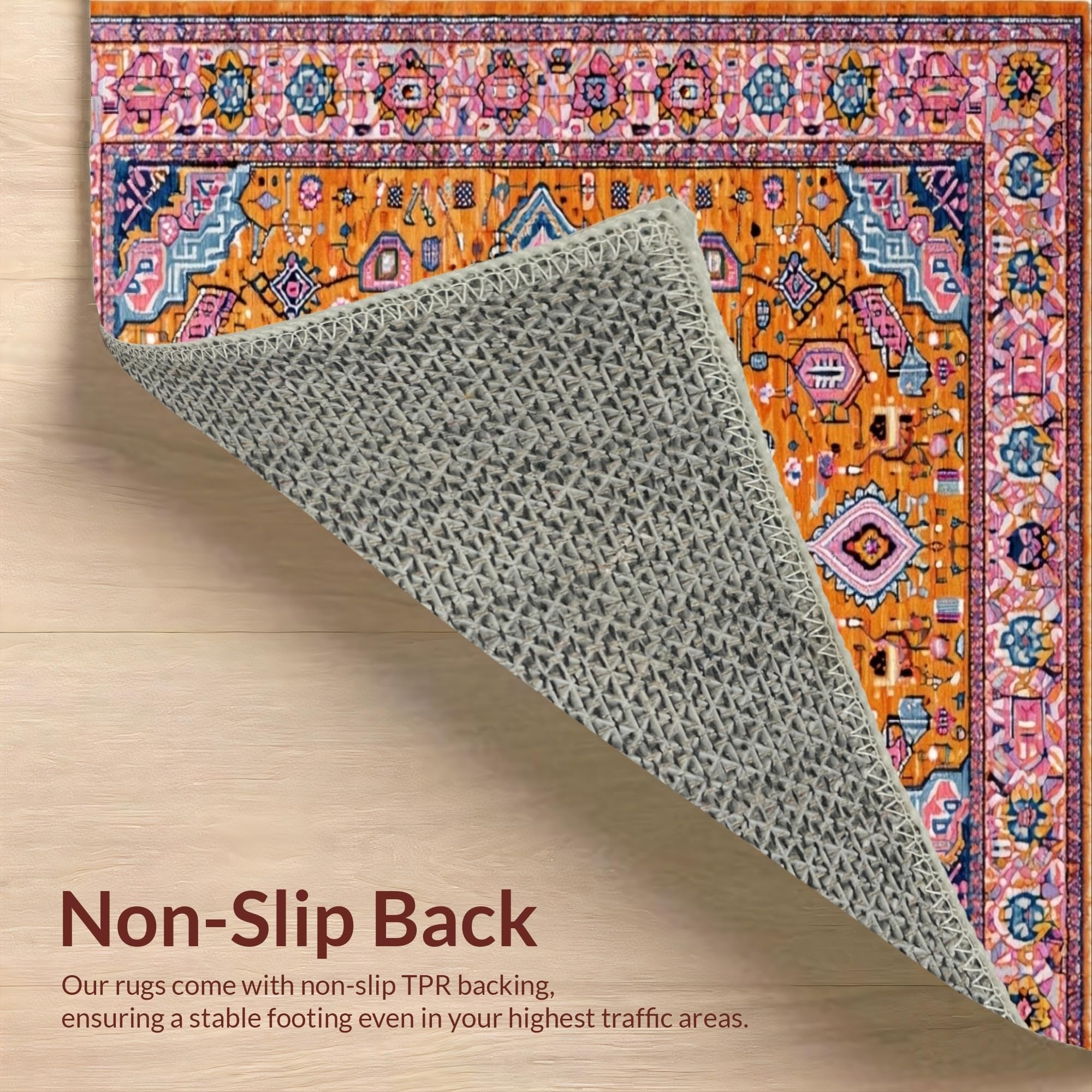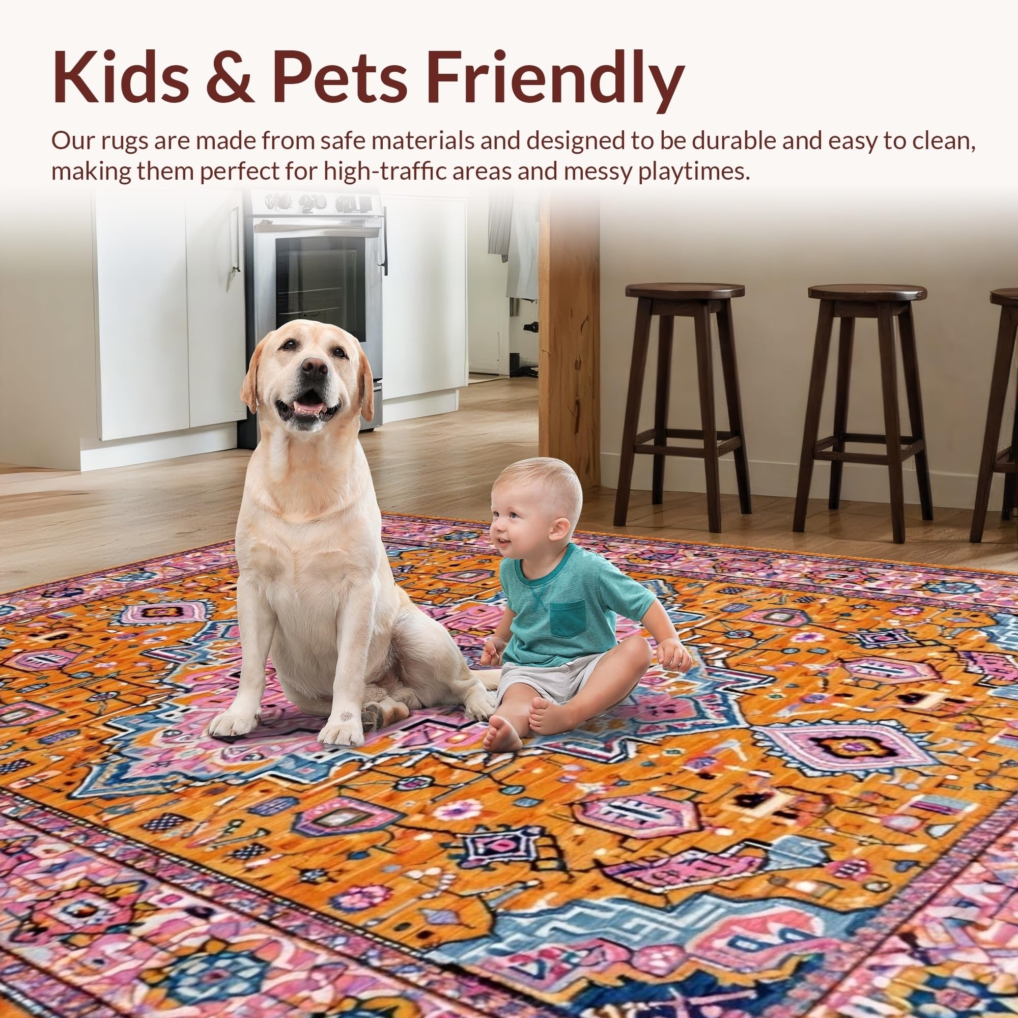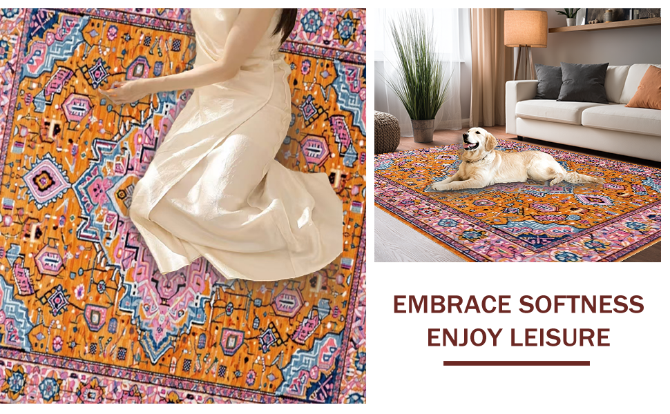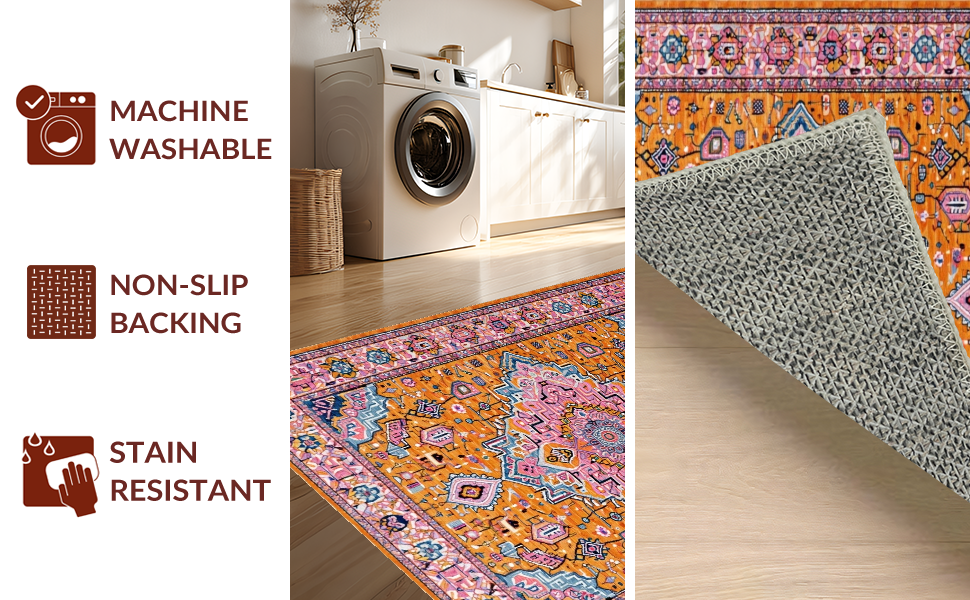 Ultra Soft Area Rug, Non Slip, Stain Resistant, Washable Area Rugs for Living Room, Bedroom, Artful Warm Tones Symmetrical Layout(Orange) Overview:
