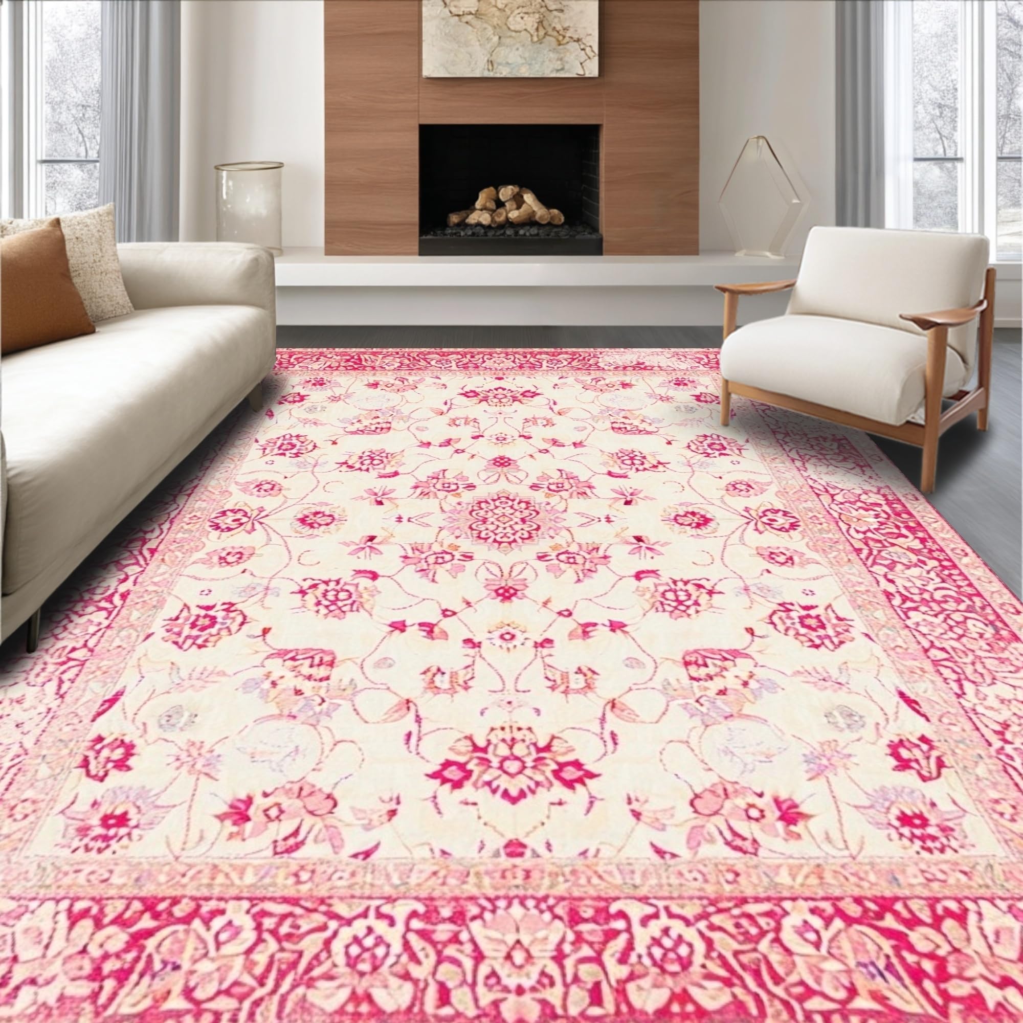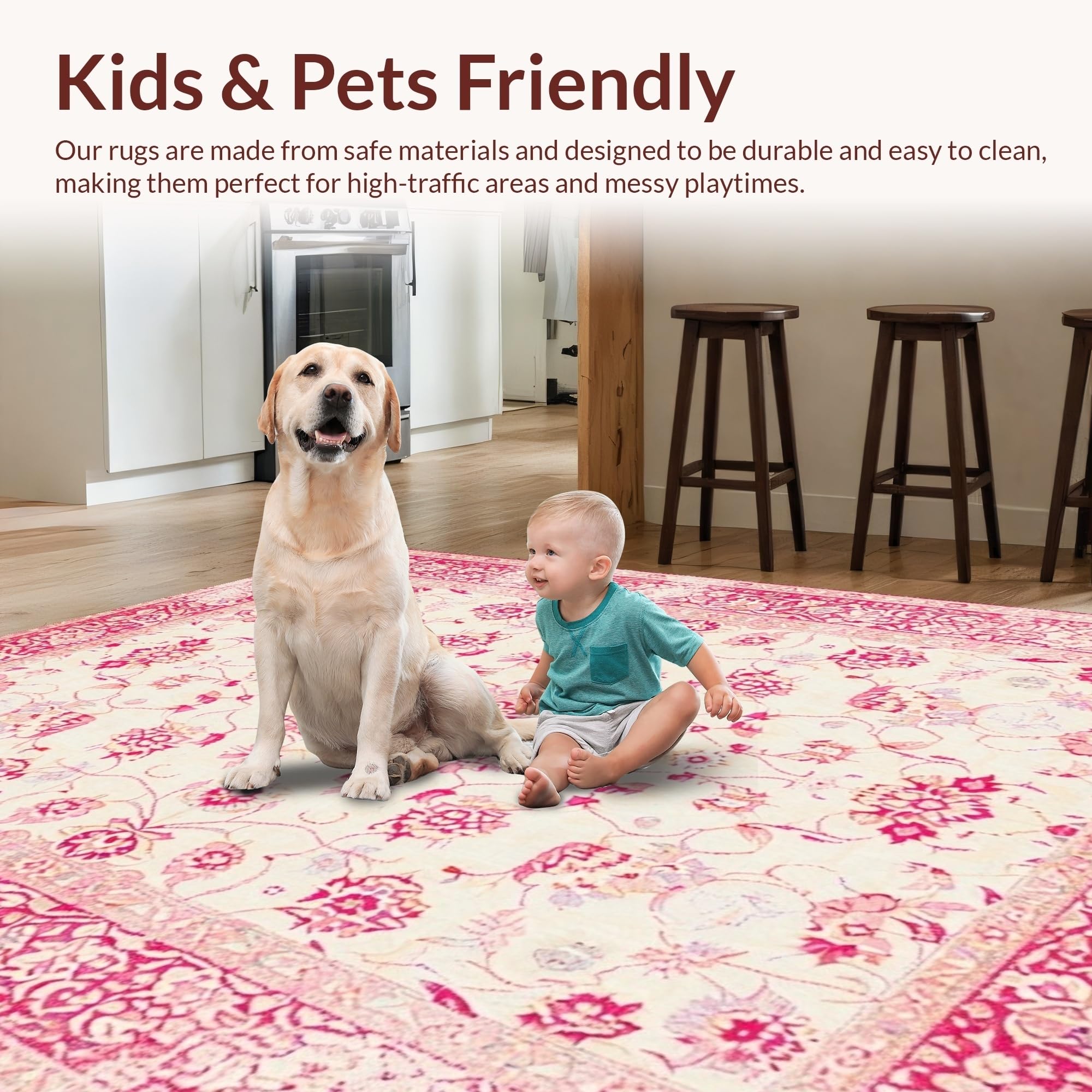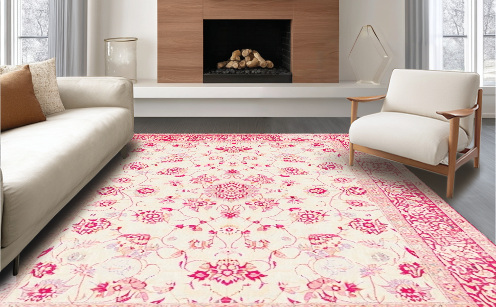 Ultra Soft Area Rug, Non Slip, Stain Resistant, Washable Area Rugs for Living Room, Bedroom, Artful Watercolor Flower Composition(Ivory) Overview: