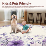 Ultra Soft Area Rug, Non Slip, Stain Resistant, Washable Area Rugs for Living Room, Bedroom, Artful Watercolor Petal Motif(Purple) Overview: