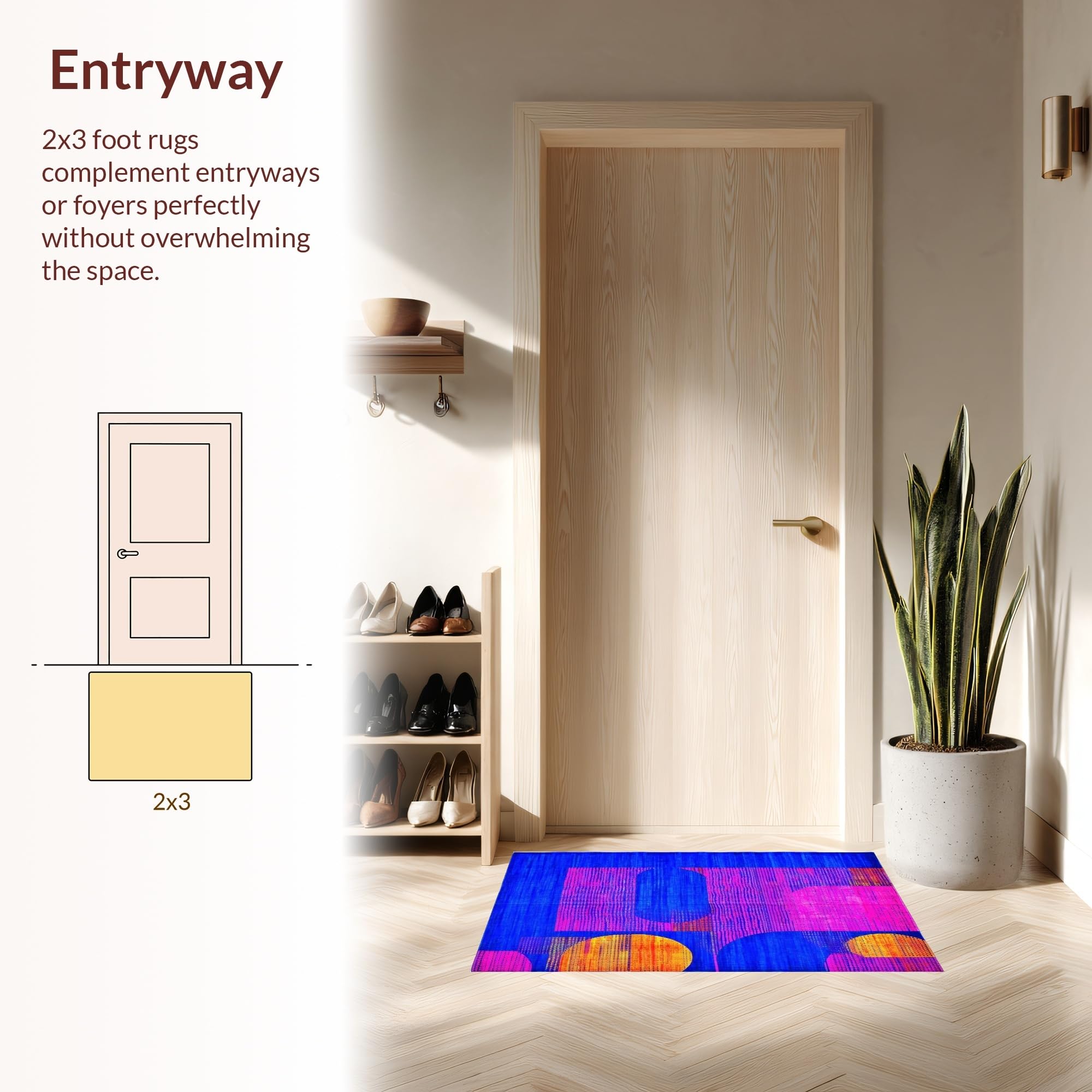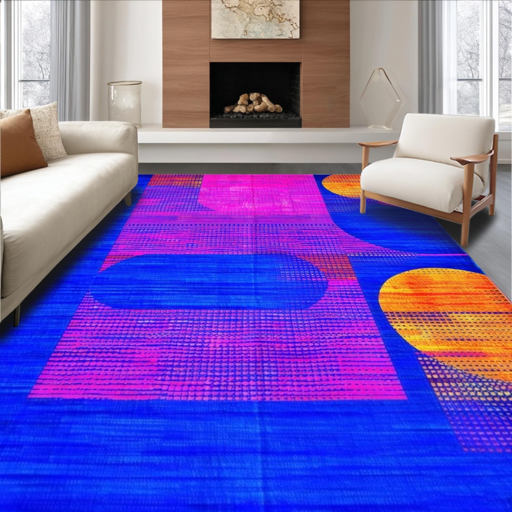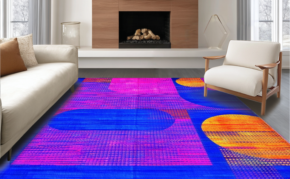 Ultra Soft Area Rug, Non Slip, Stain Resistant, Washable Area Rugs for Living Room, Bedroom, Artful Whimsical Curvilinear Shapes(Blue) Overview: