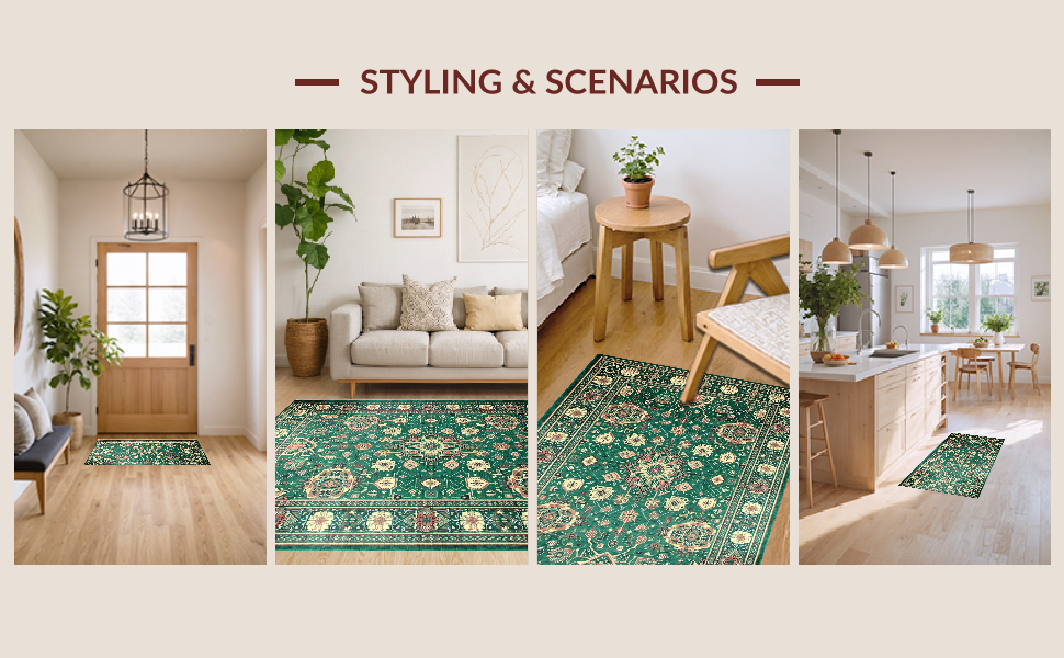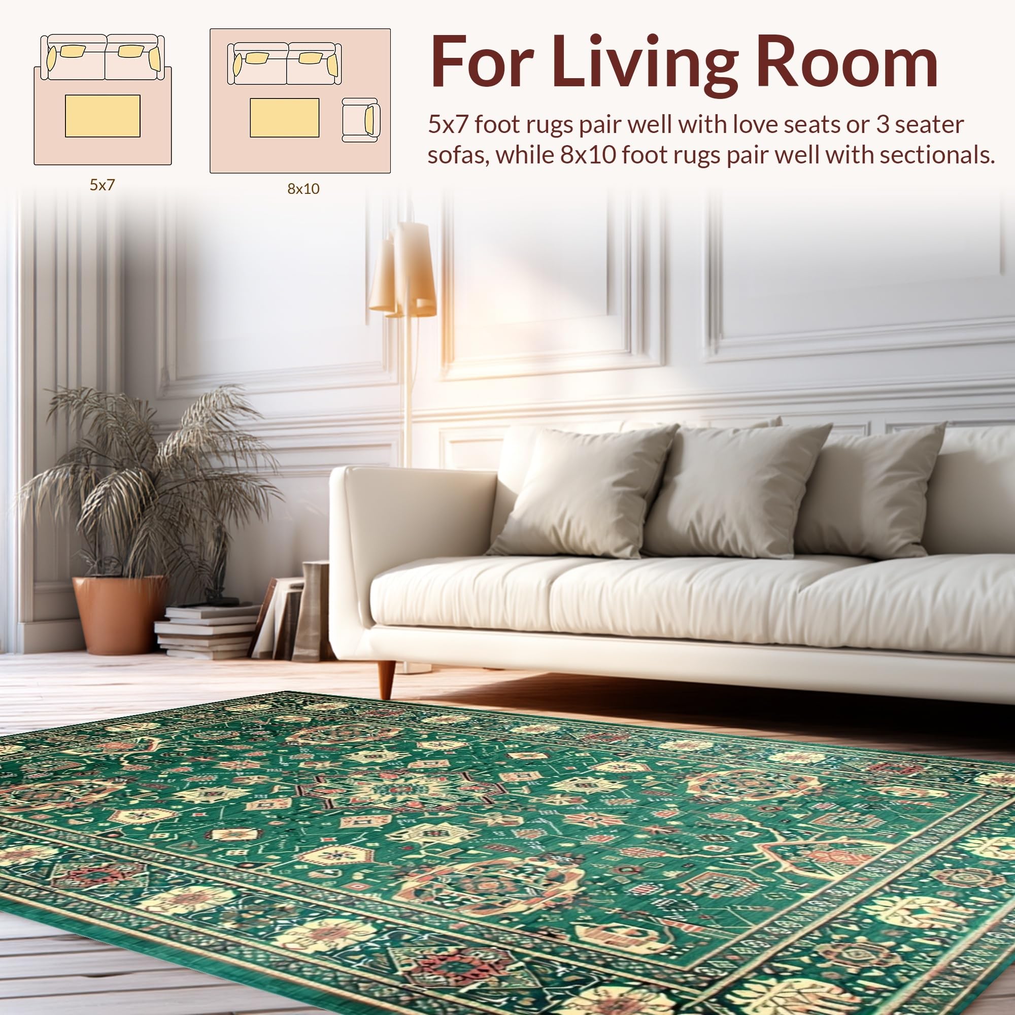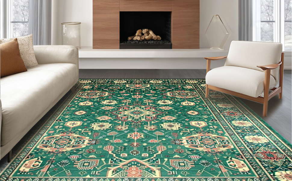 Ultra Soft Area Rug, Non Slip, Stain Resistant, Washable Area Rugs for Living Room, Bedroom, Artful Whimsical Diamond Layout(Green) Overview: