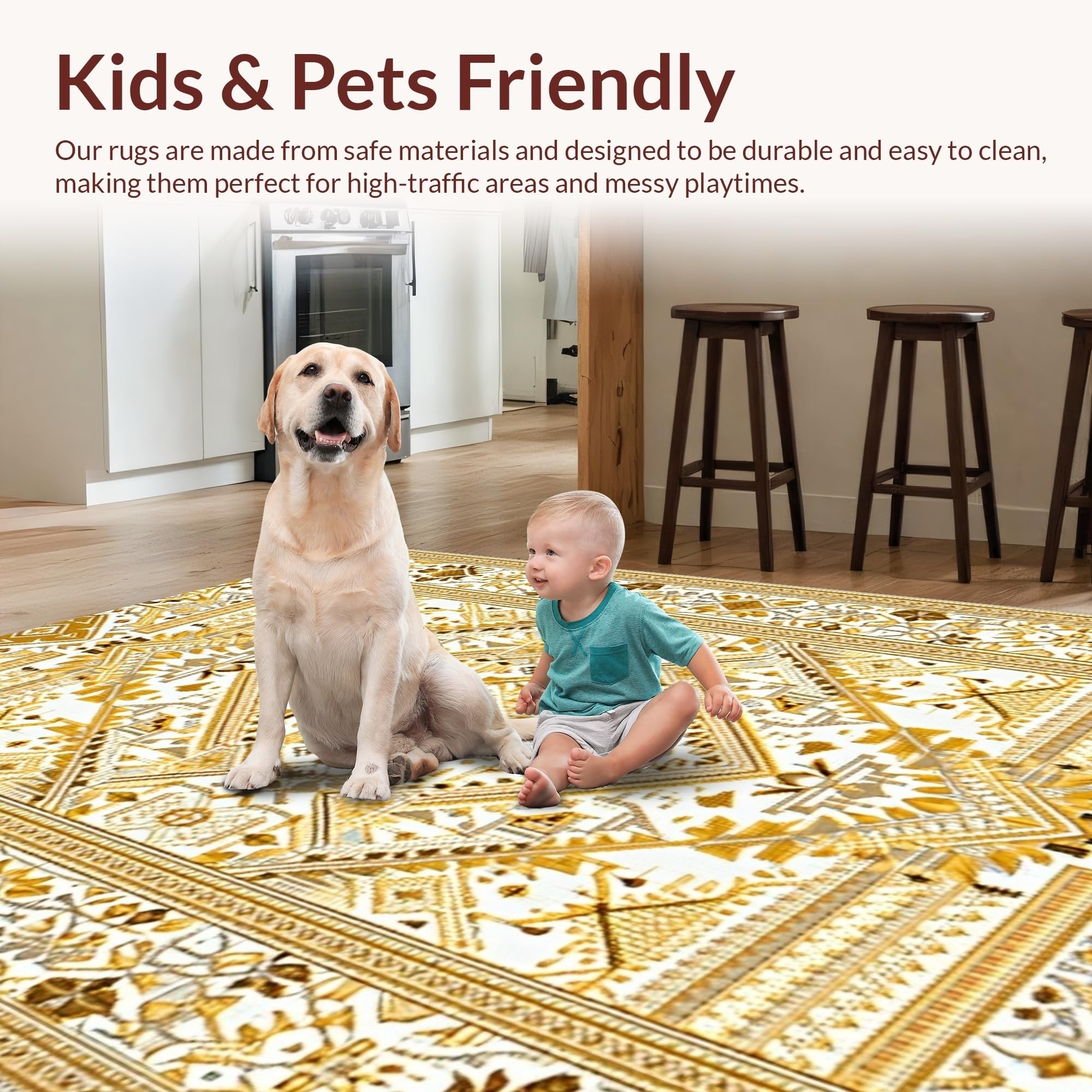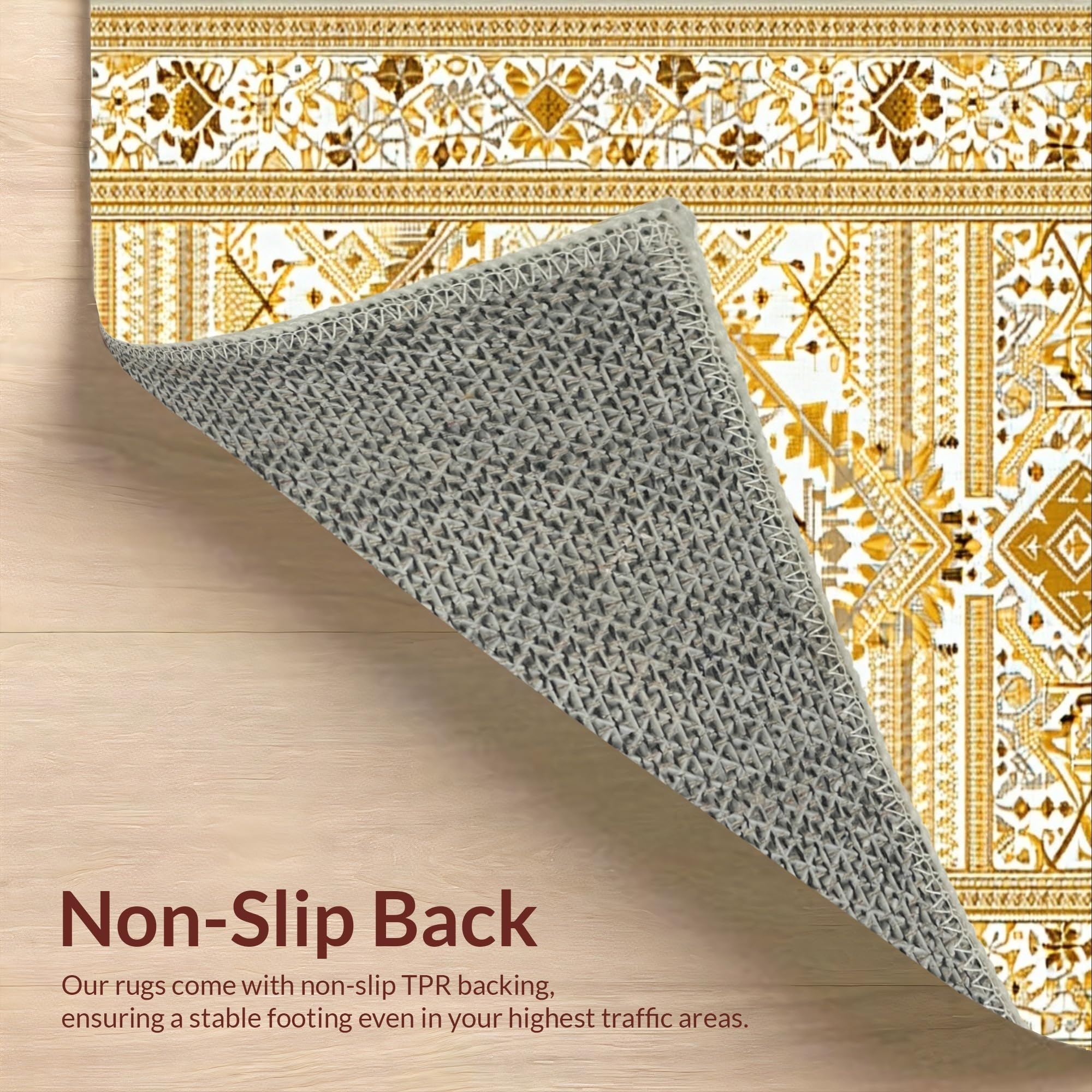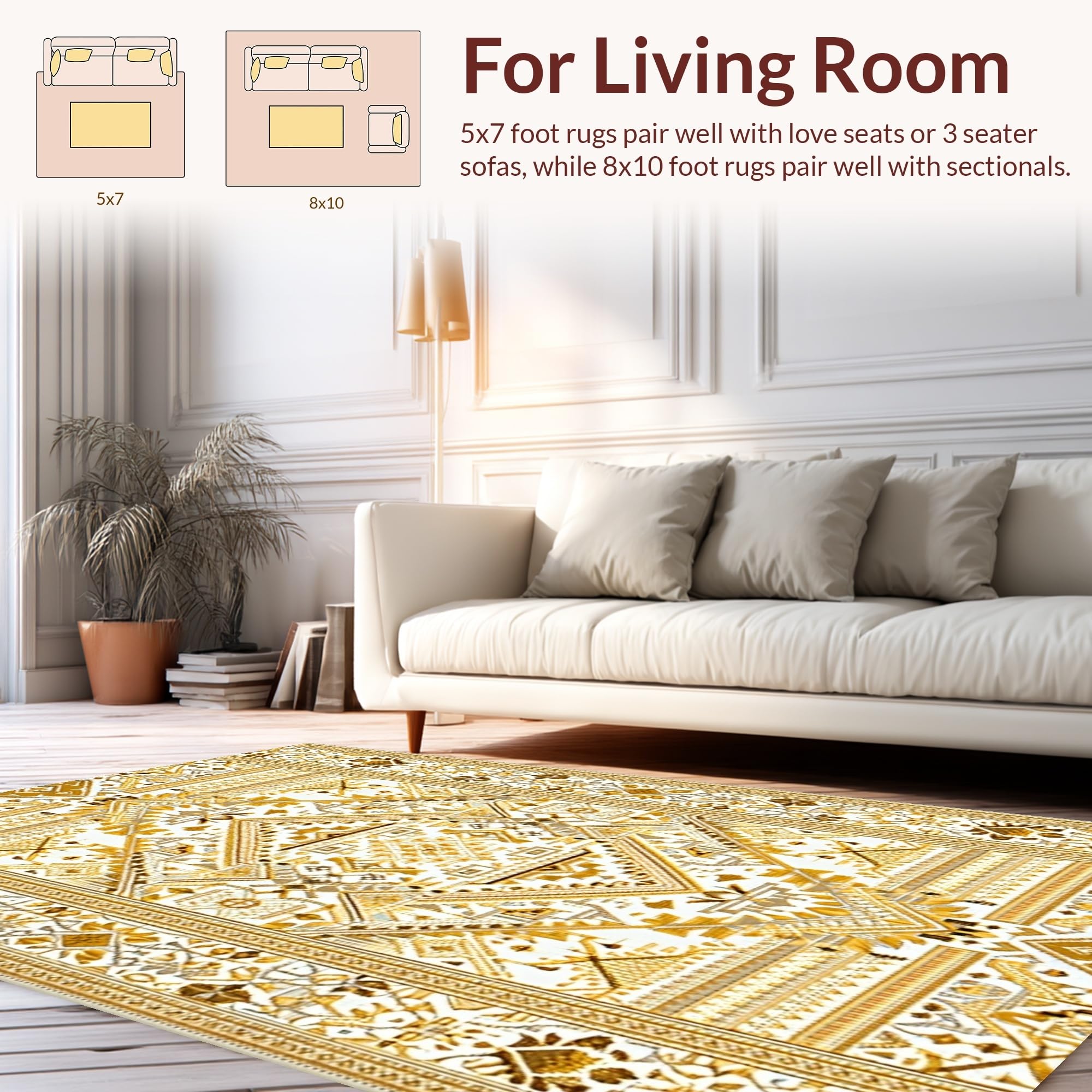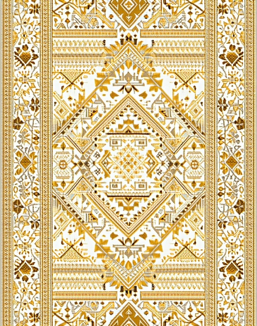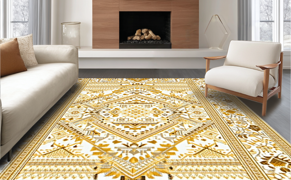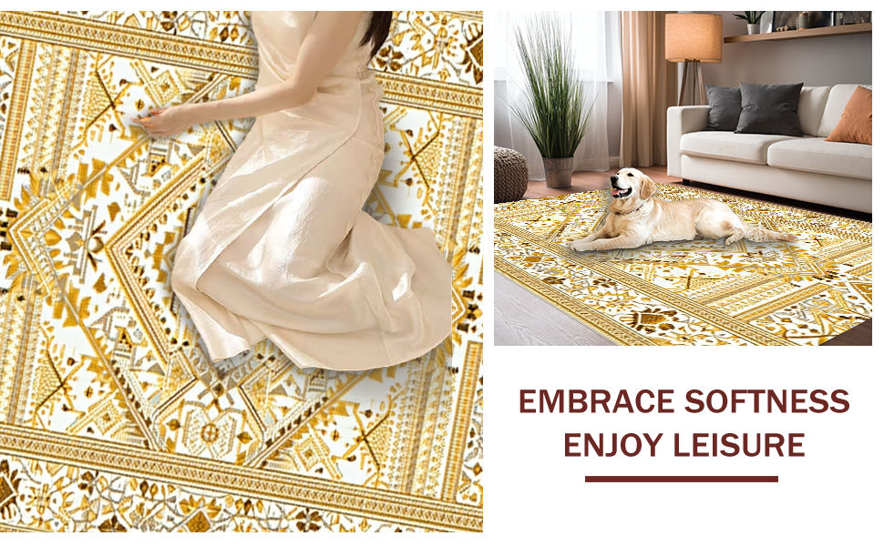 Ultra Soft Area Rug, Non Slip, Stain Resistant, Washable Area Rugs for Living Room, Bedroom, Artful Whimsical Knitted Touch(Gold) Overview: