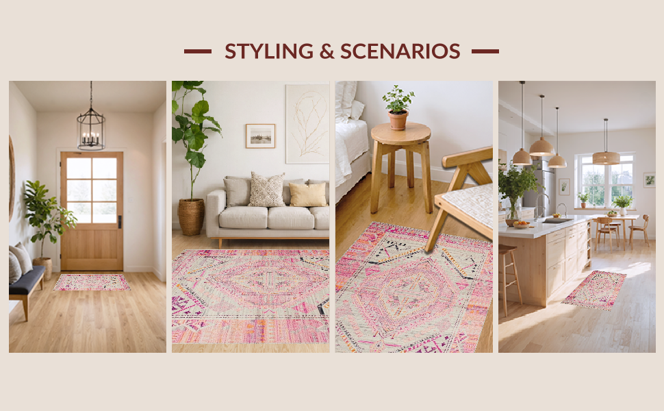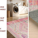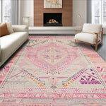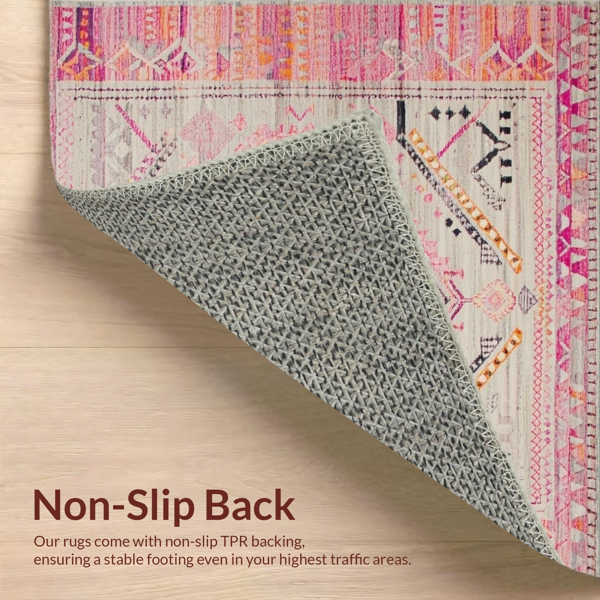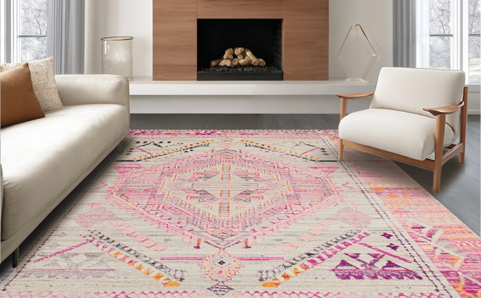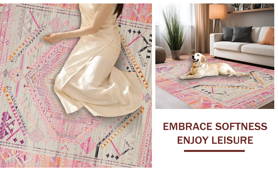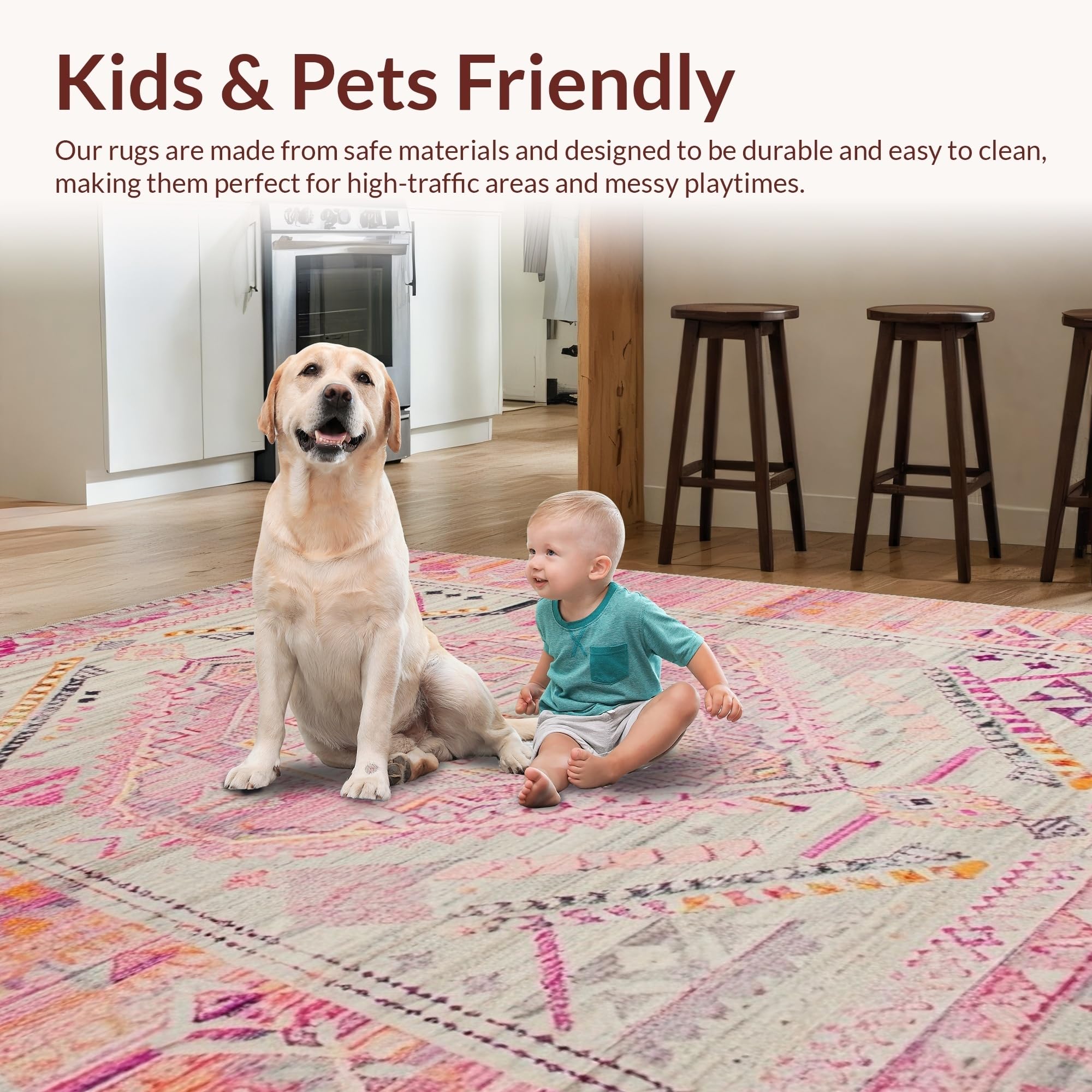 Ultra Soft Area Rug, Non Slip, Stain Resistant, Washable Area Rugs for Living Room, Bedroom, Artful Whimsical Layered Patterns(Pink) Overview: