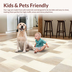 - Soft and Fluffy Comfort: This low pile rug is made from a faux cashmere texture, offering a smooth, soft touch that elevates any room. Ideal for areas where comfort matters without compromising on easy maintenance.