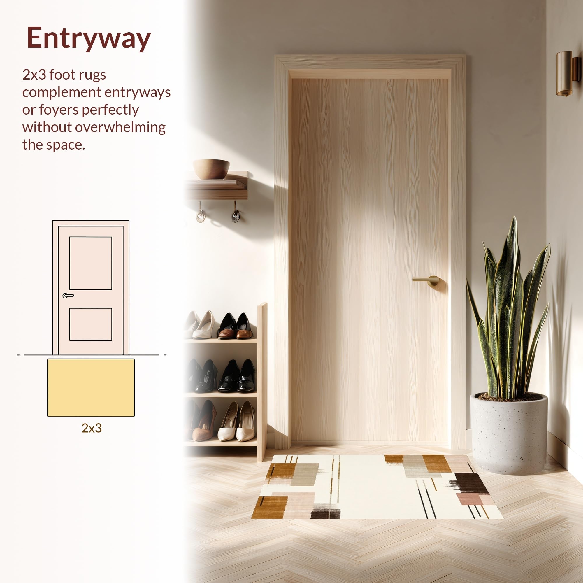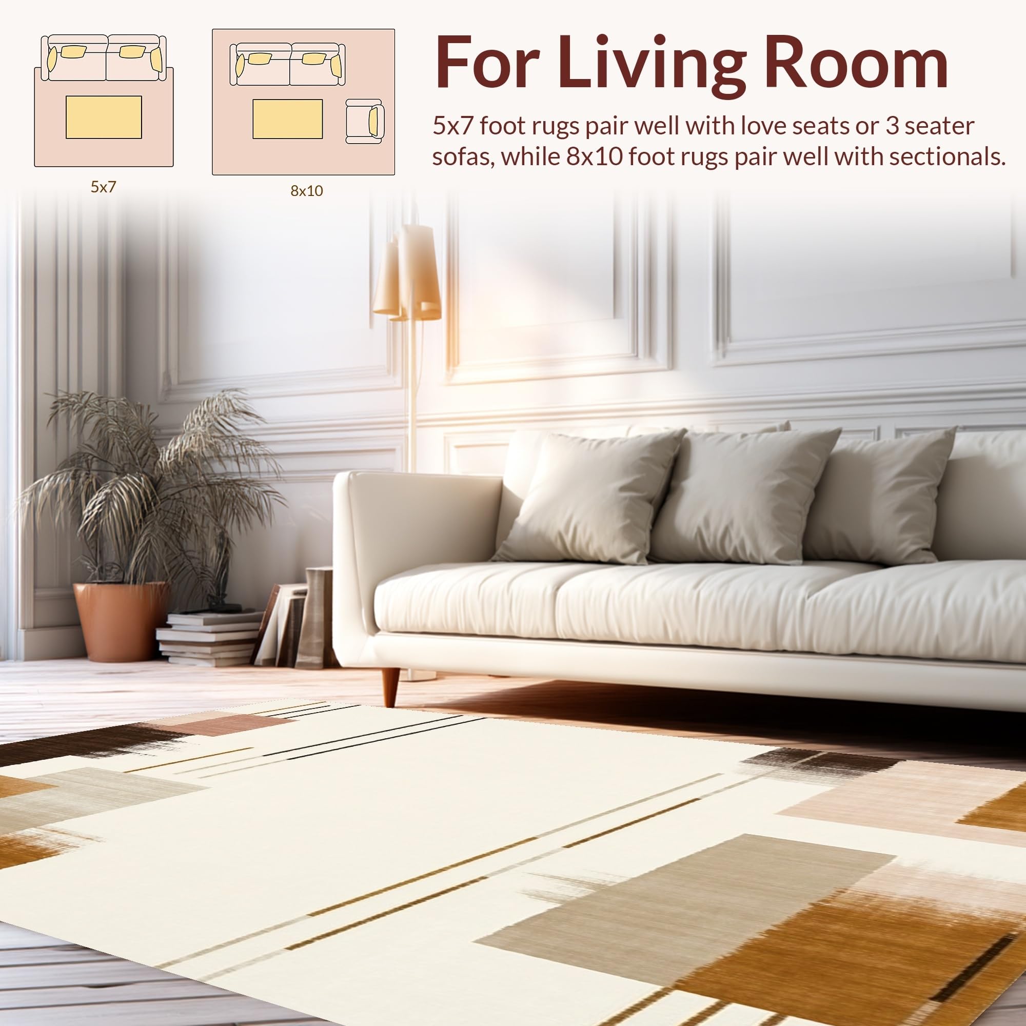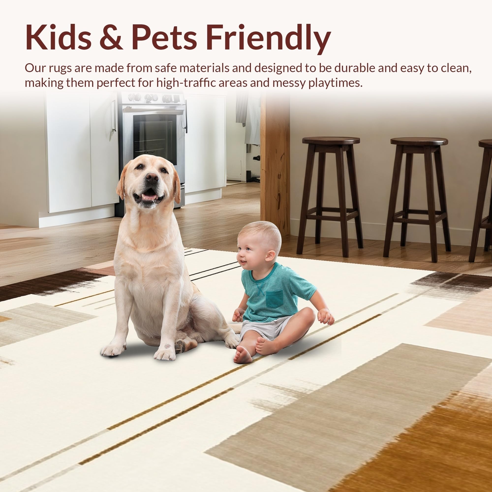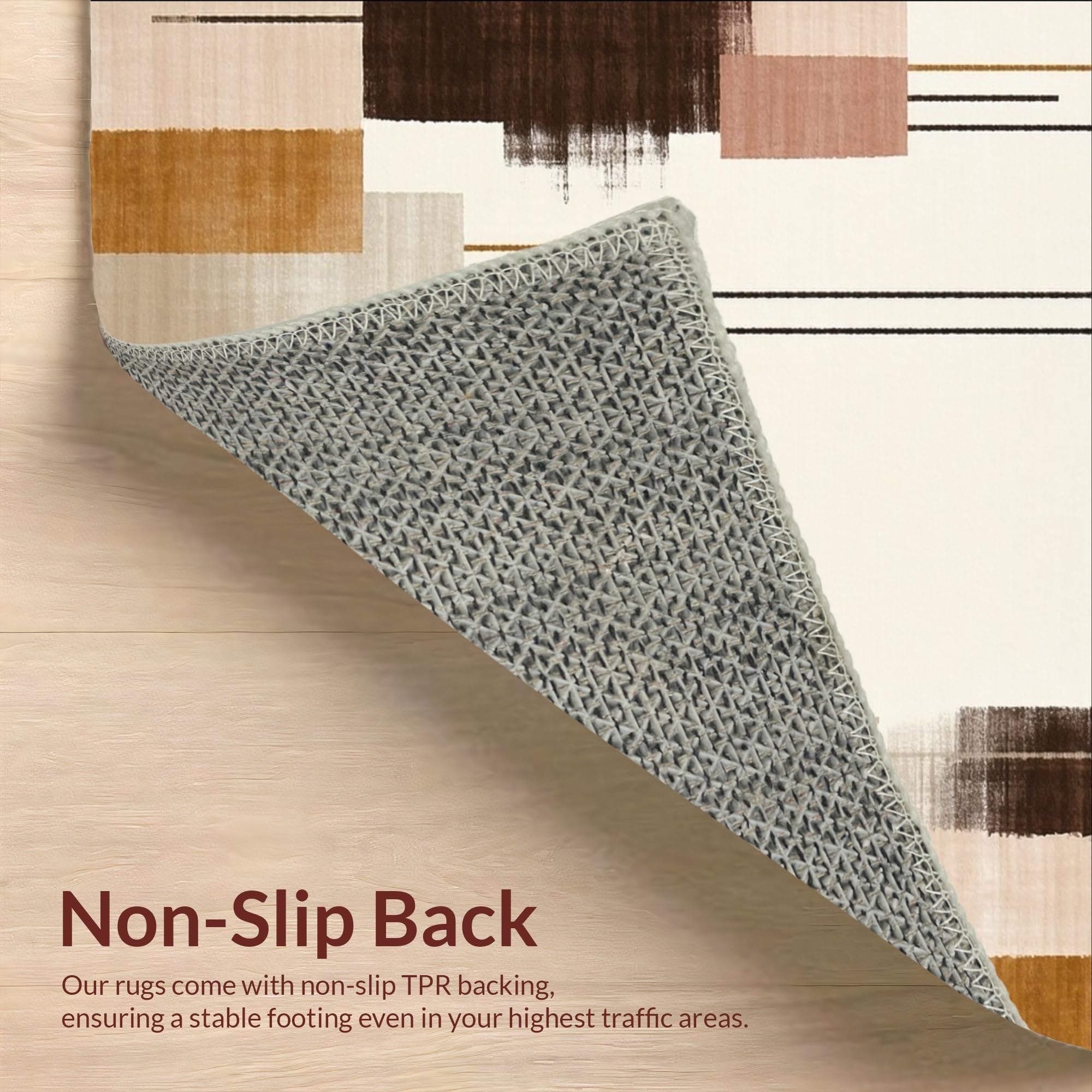 Ultra Soft Area Rug, Non Slip, Stain Resistant, Washable Area Rugs for Living Room, Bedroom, Artisan Abstract Brushstroke Premium(Beige) Overview: