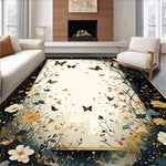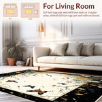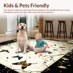 Ultra Soft Area Rug, Non Slip, Stain Resistant, Washable Area Rugs for Living Room, Bedroom, Artisan Black Boho Area with Fantastical Botanical and Moth Accents(Ivory) Overview: