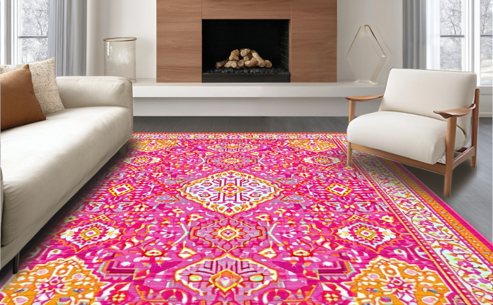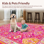 Ultra Soft Area Rug, Non Slip, Stain Resistant, Washable Area Rugs for Living Room, Bedroom, Artisan Crafted Color Block Design(Pink) Overview: