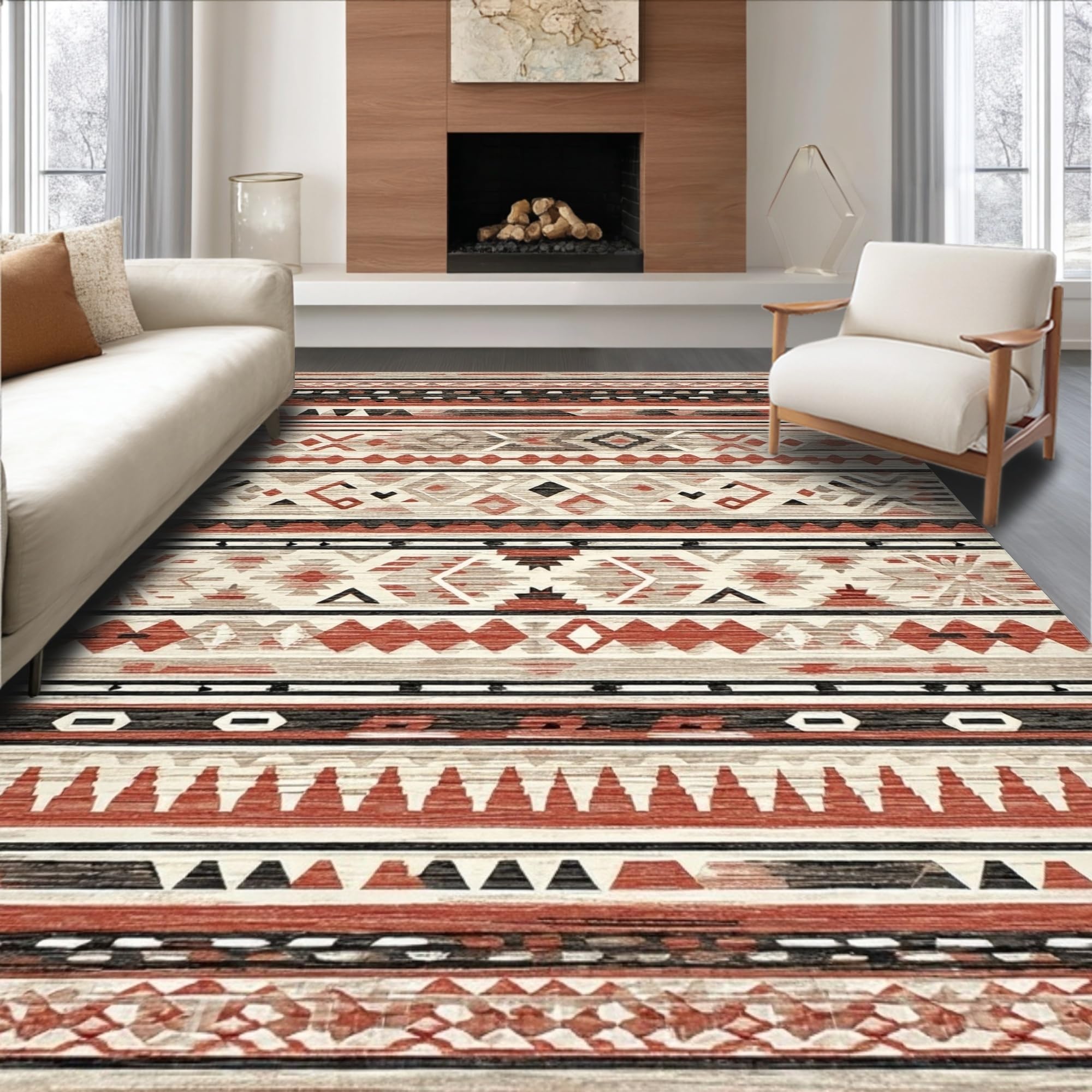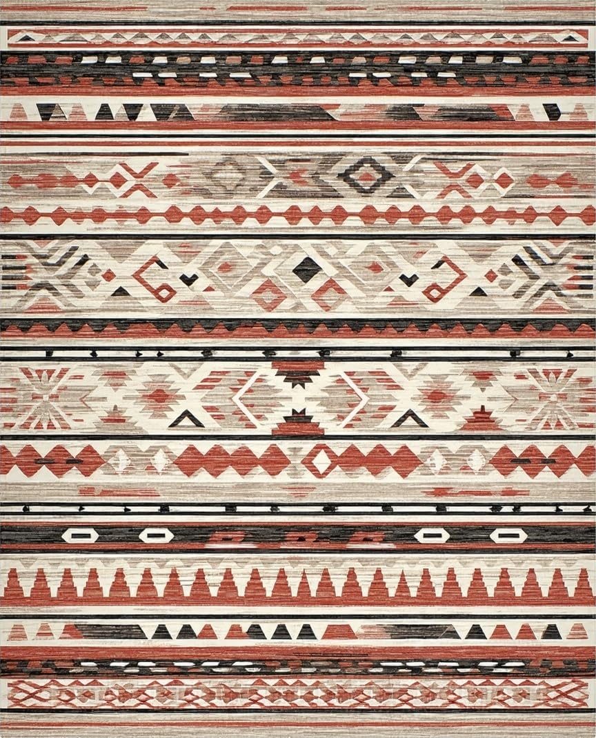 Ultra Soft Area Rug, Non Slip, Stain Resistant, Washable Area Rugs for Living Room, Bedroom, Artisan Crafted Colorful Patchwork(Red) Overview:
