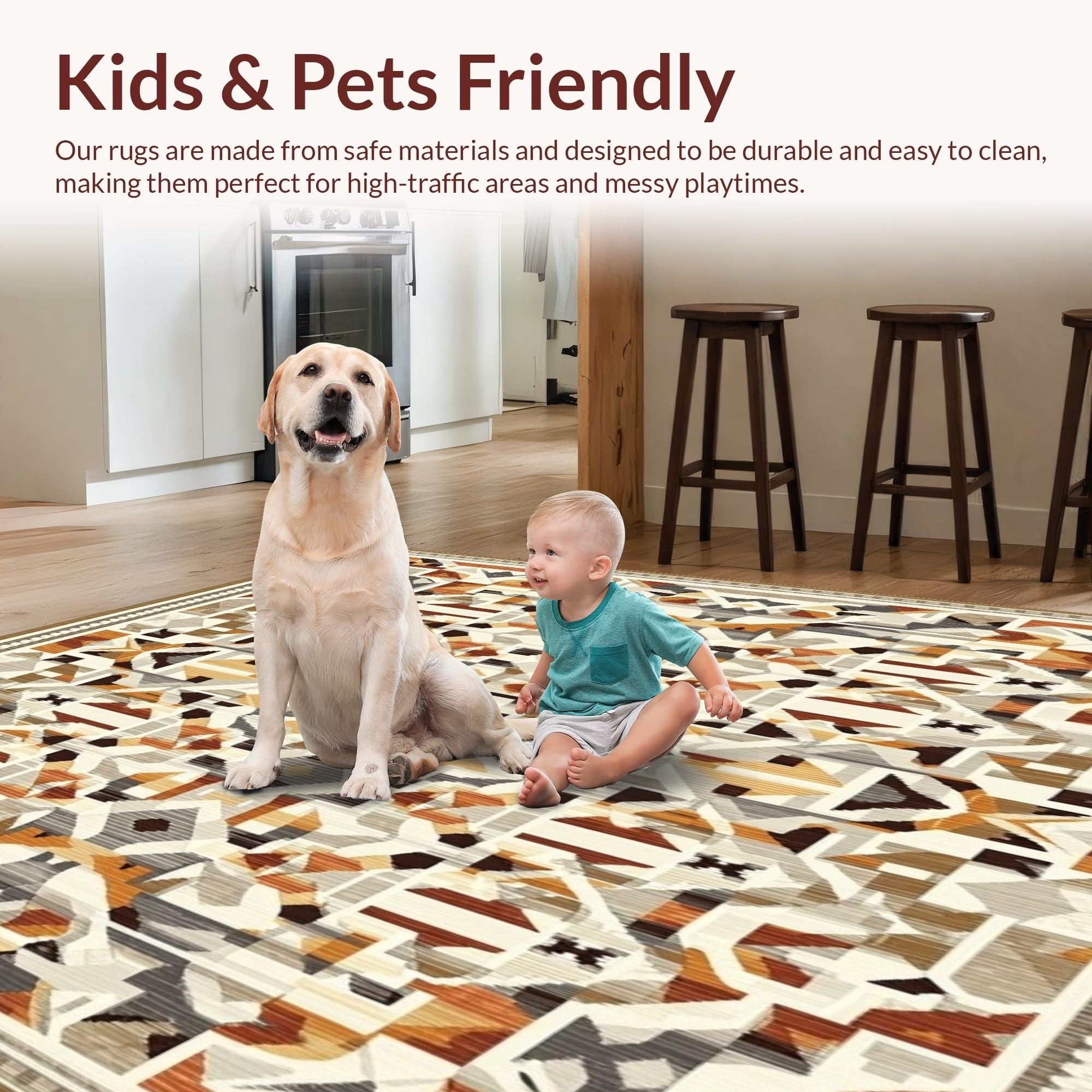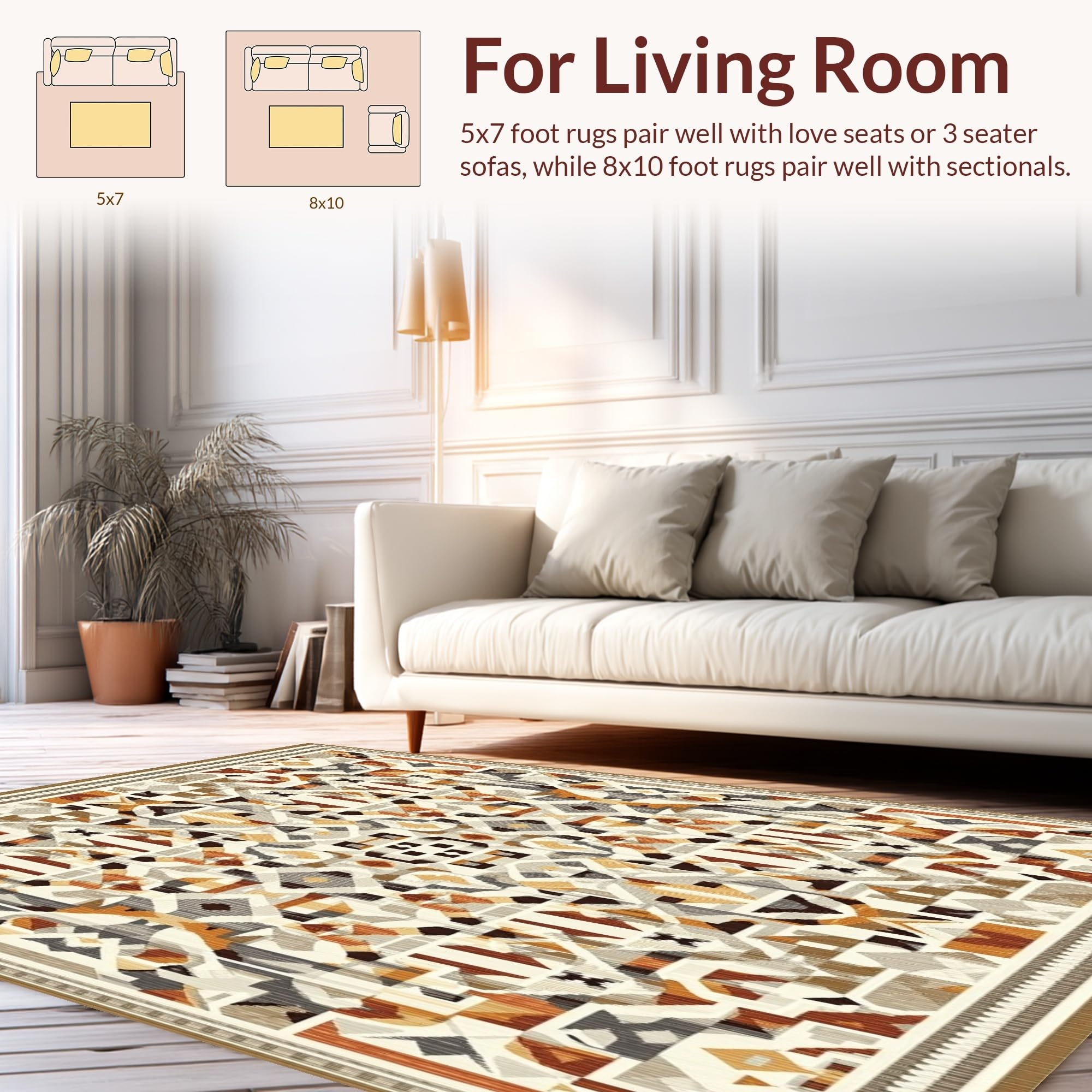 Ultra Soft Area Rug, Non Slip, Stain Resistant, Washable Area Rugs for Living Room, Bedroom, Artisan Crafted Geometric Area with Rich Earthy Tones and Unique(Beige) Overview: