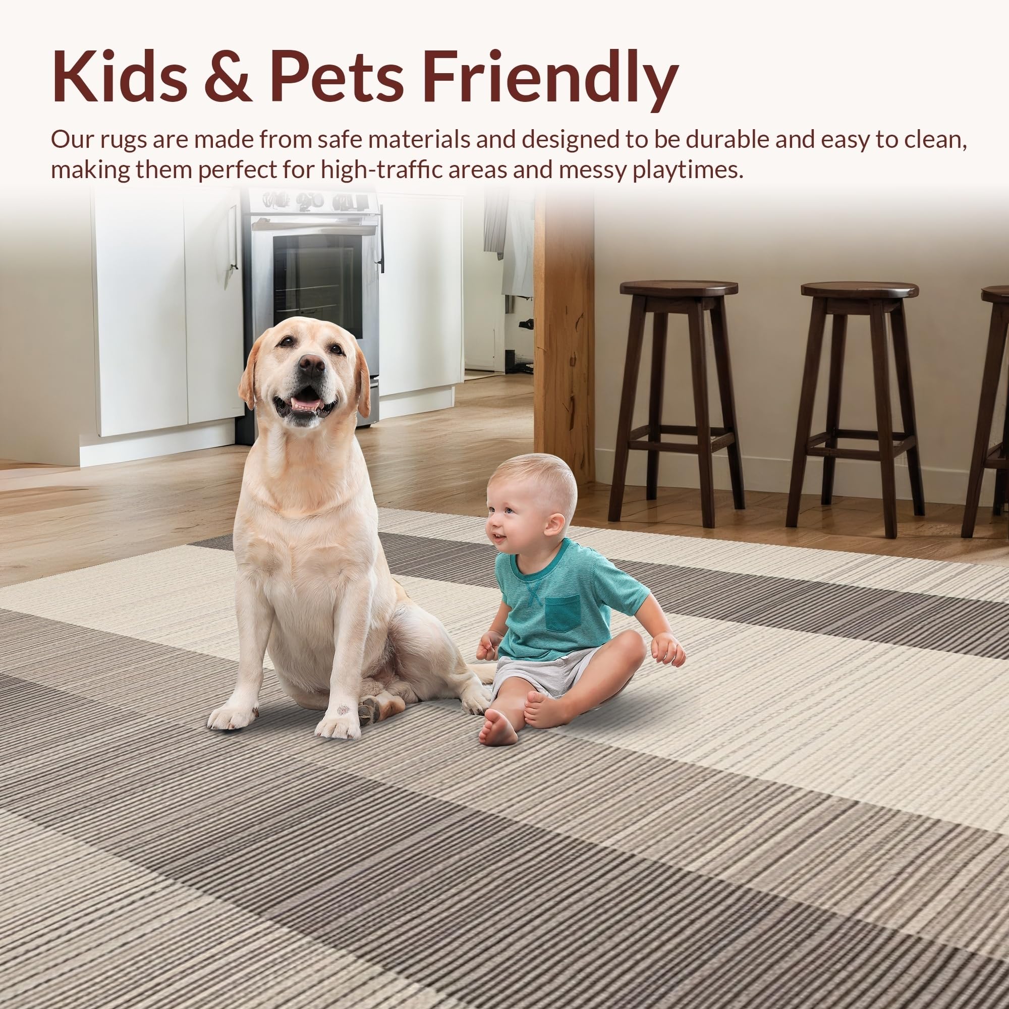 Ultra Soft Area Rug, Non Slip, Stain Resistant, Washable Area Rugs for Living Room, Bedroom, Artisan Crafted Natural Fiber Patterns(Beige) Overview:
