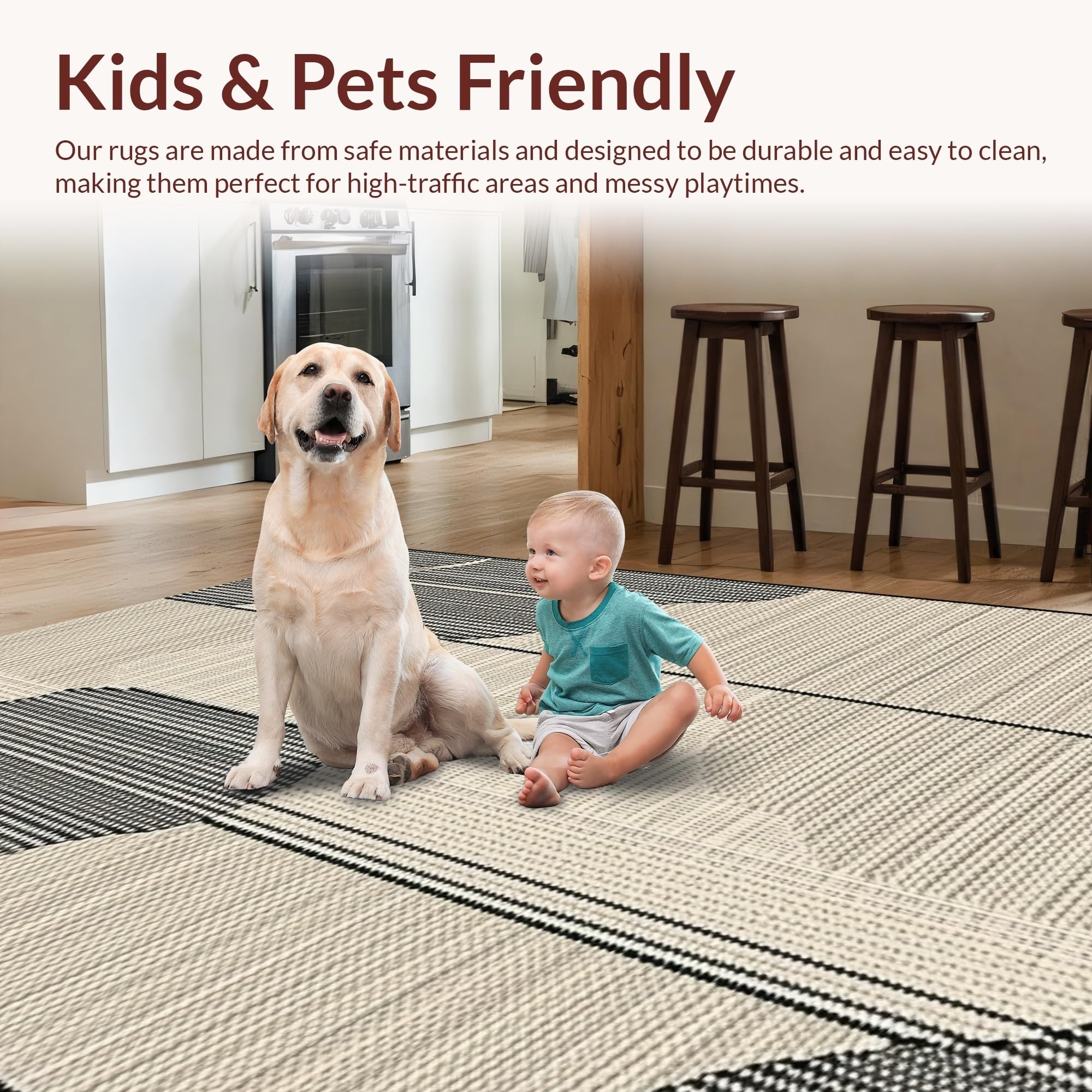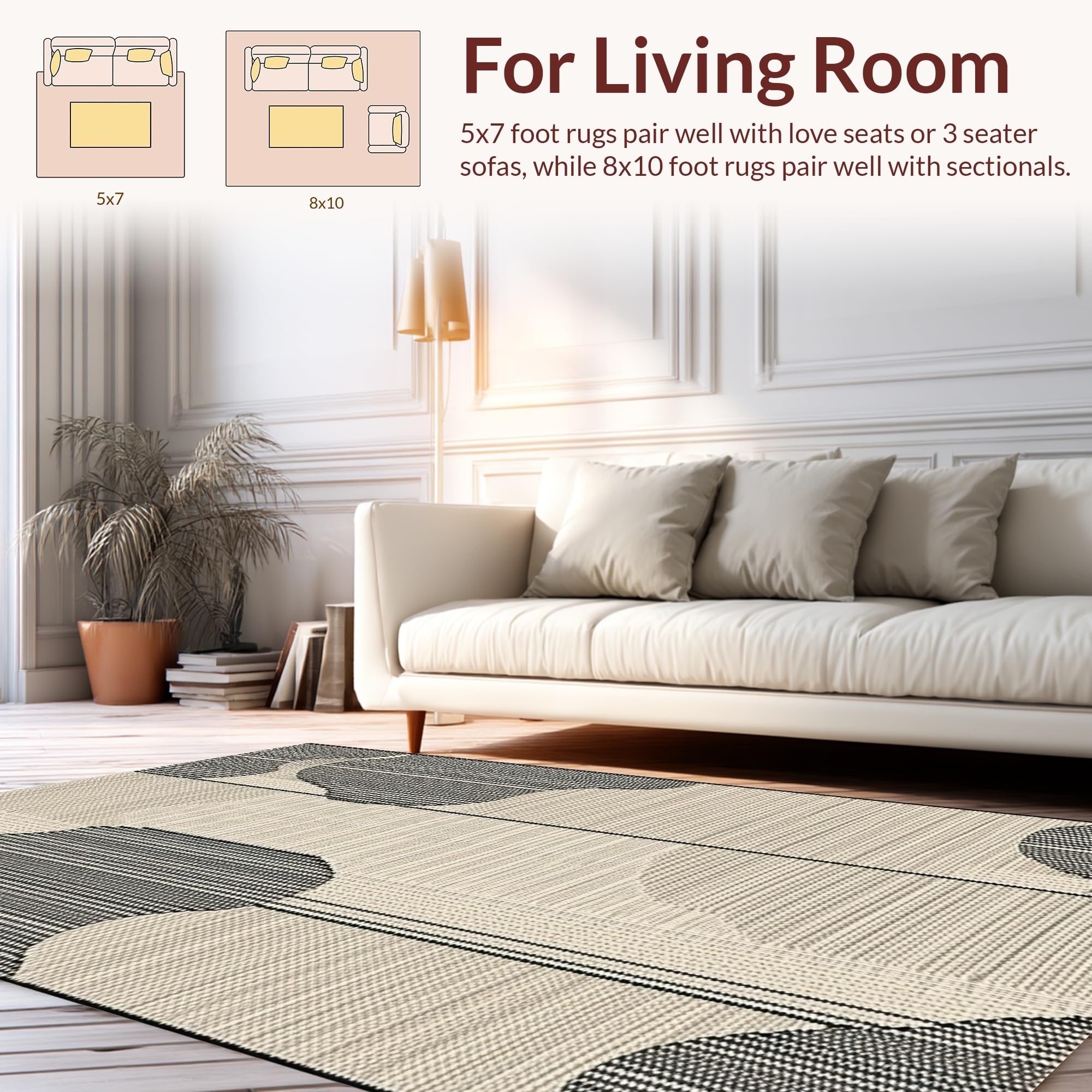 Ultra Soft Area Rug, Non Slip, Stain Resistant, Washable Area Rugs for Living Room, Bedroom, Artisan Crafted Neutral Palette(Beige) Overview: