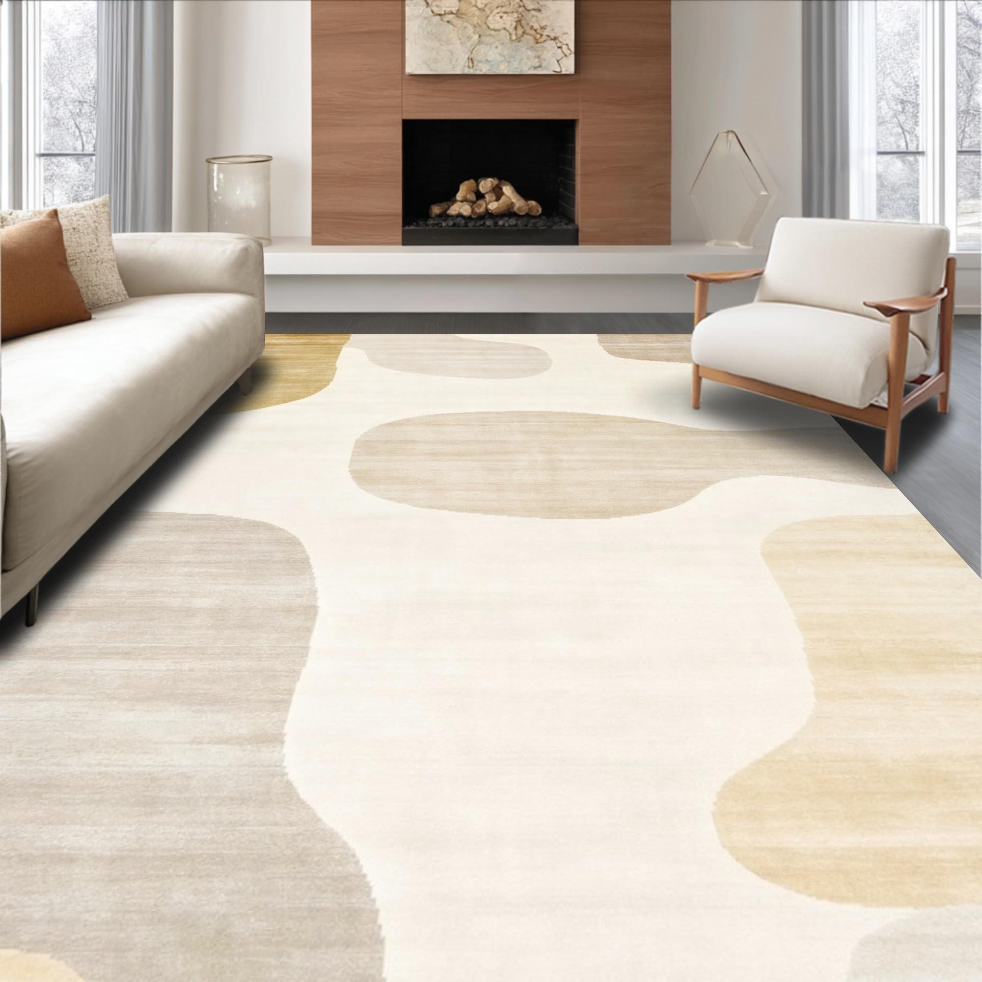 Ultra Soft Area Rug, Non Slip, Stain Resistant, Washable Area Rugs for Living Room, Bedroom, Artisan Crafted Neutral with Modern Asymmetrical Cream(Beige) Overview: