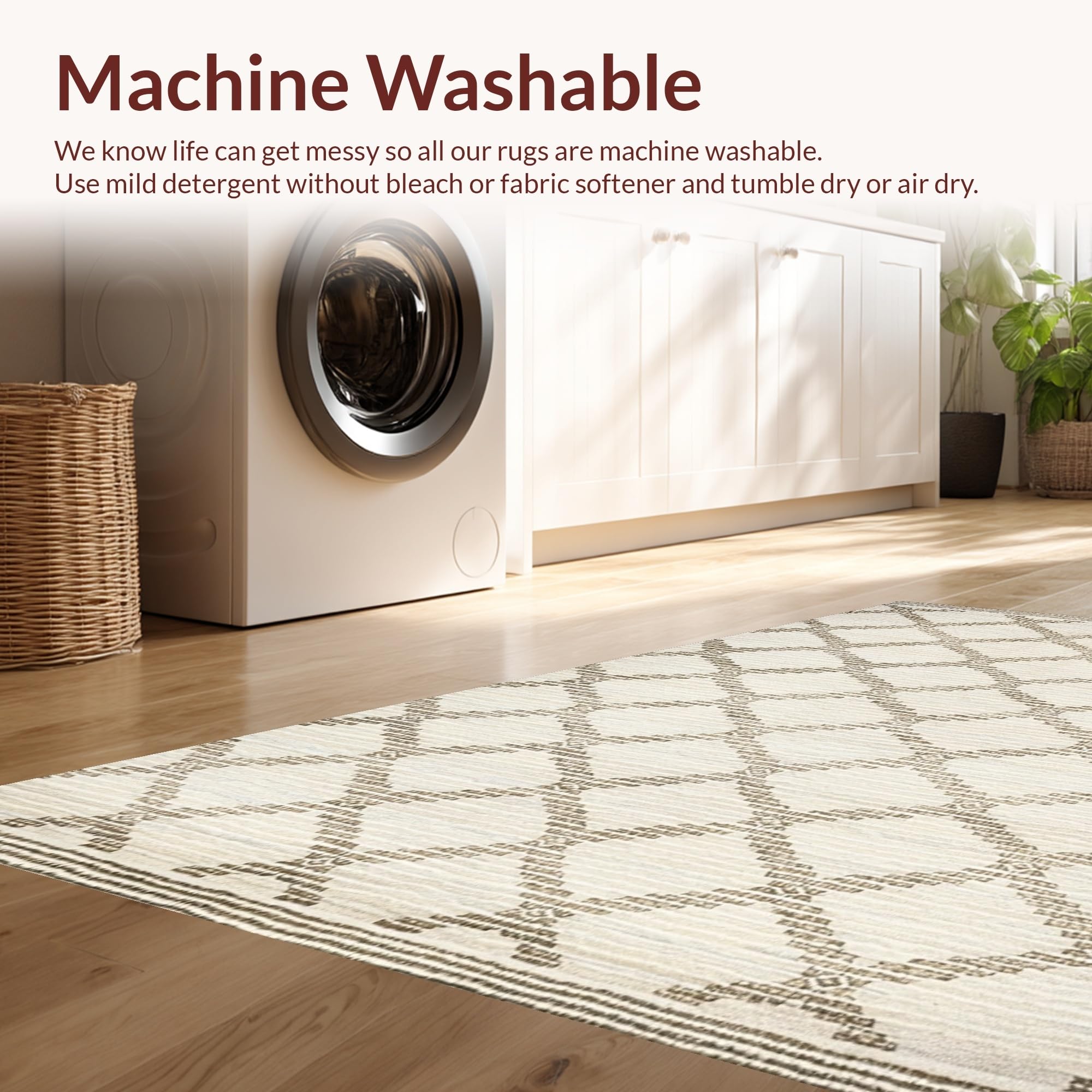 - Machine Washable: Our rugs can be easily thrown in the wash machine.