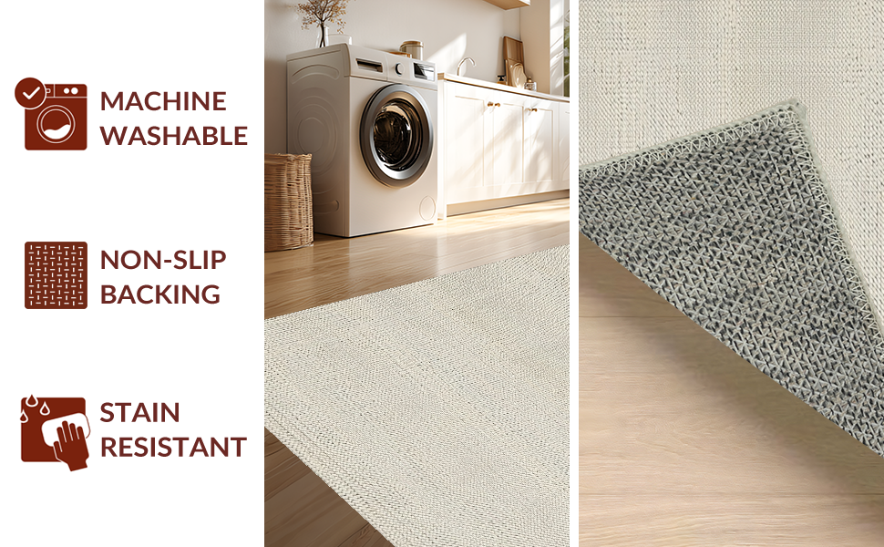 Ultra Soft Area Rug, Non Slip, Stain Resistant, Washable Area Rugs for Living Room, Bedroom, Artisan Crafted Rustic Minimalist Style(Beige) Overview: