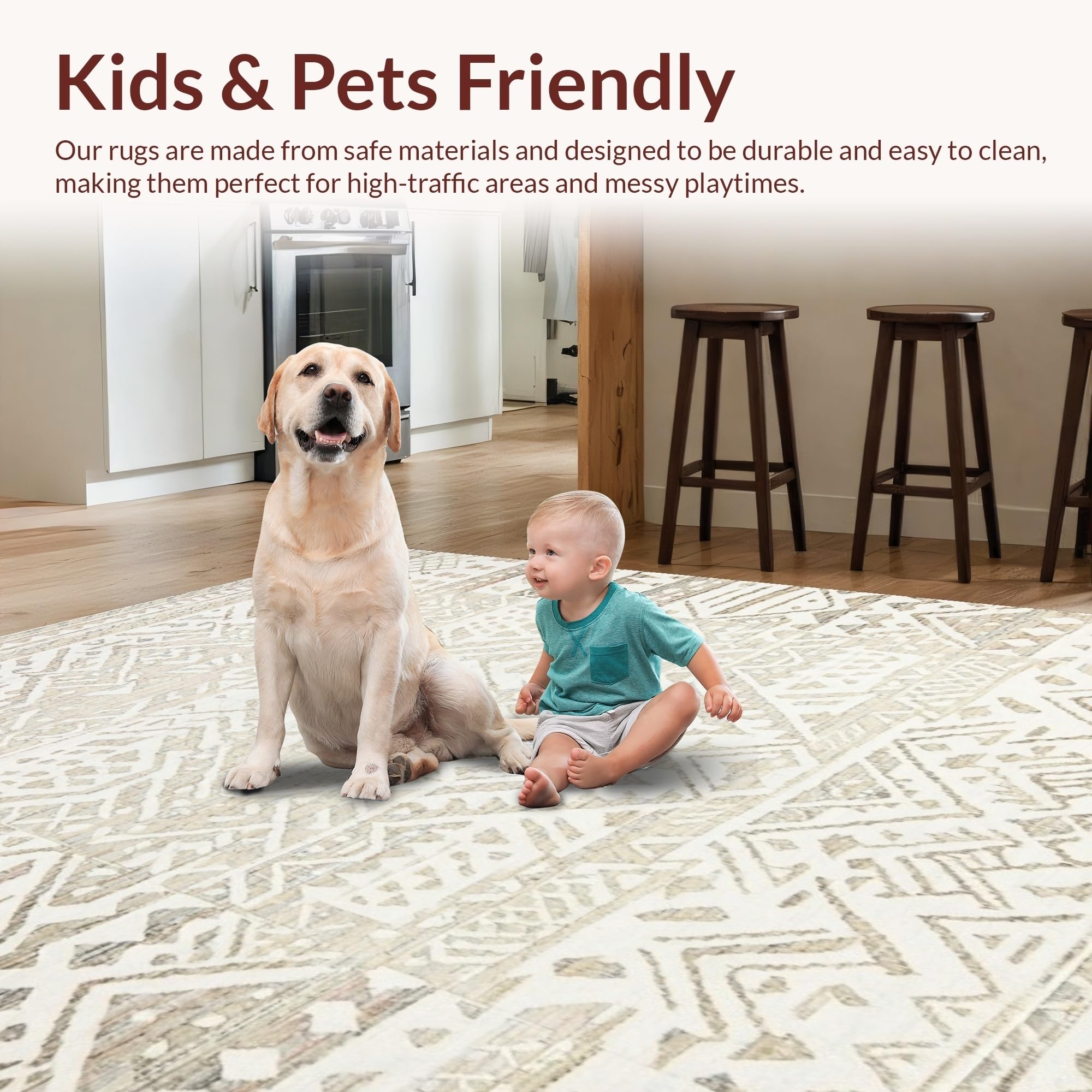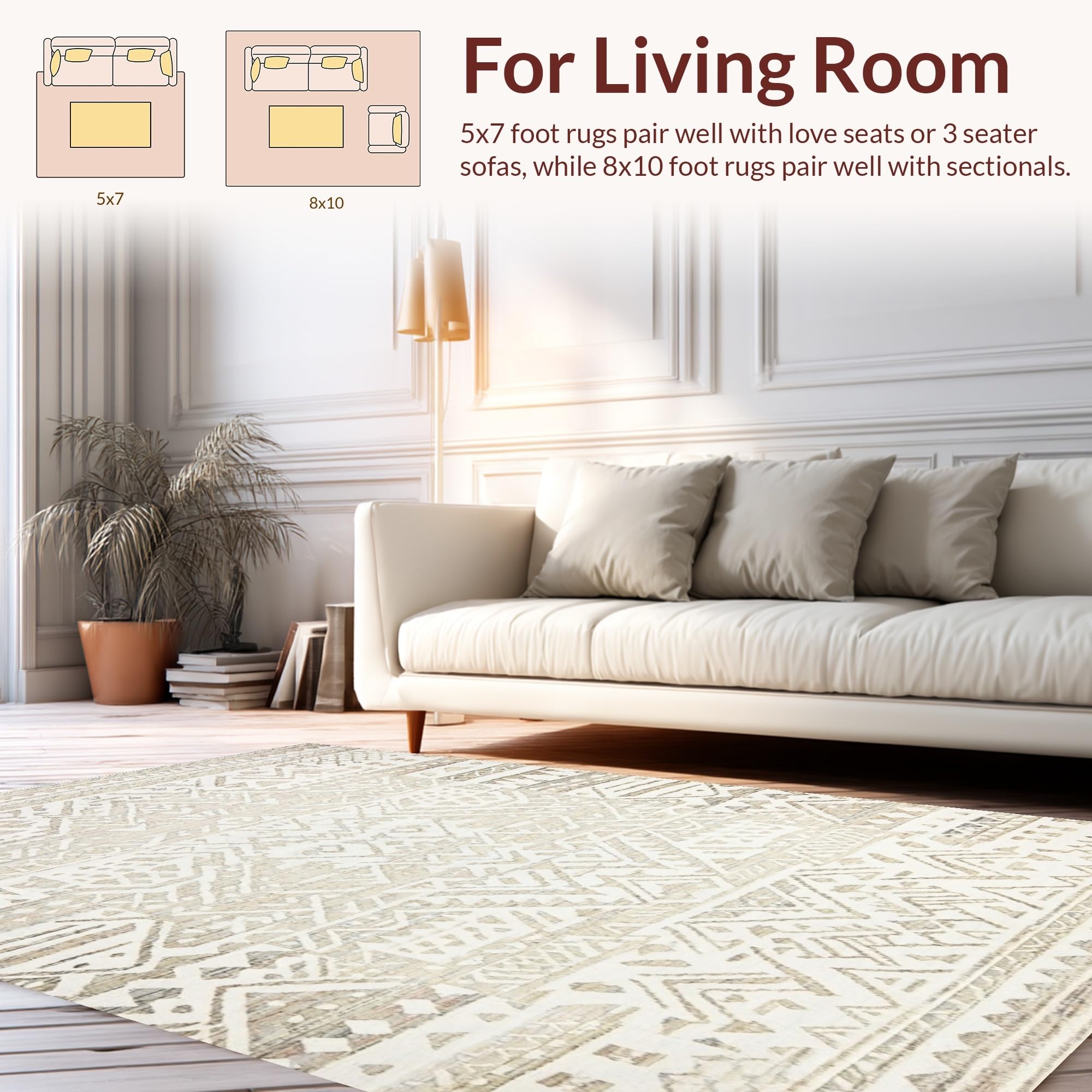 Ultra Soft Area Rug, Non Slip, Stain Resistant, Washable Area Rugs for Living Room, Bedroom, Artisan Crafted Striped Design(Beige) Overview: