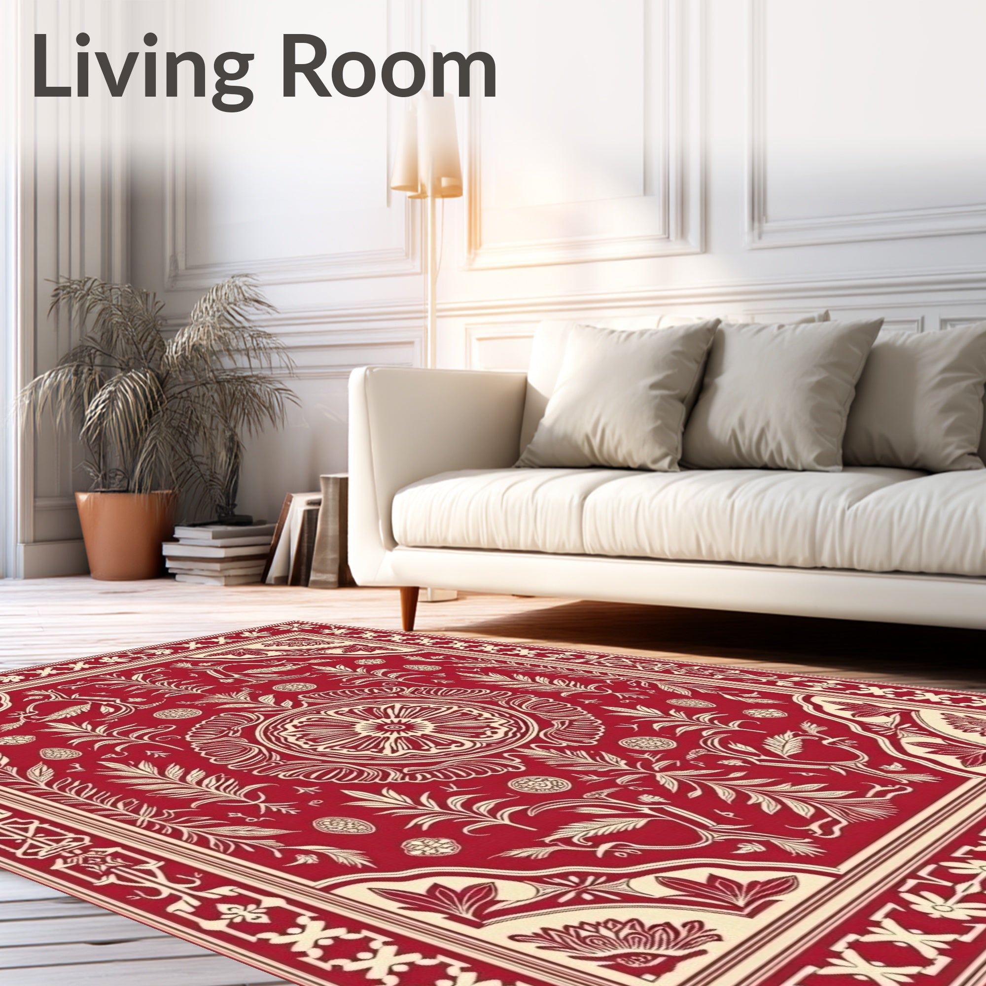 Ultra Soft Area Rug, Non Slip, Stain Resistant, Washable Area Rugs for Living Room, Bedroom, Artisan Crafted Vintage Botanical Print(Red) Overview: