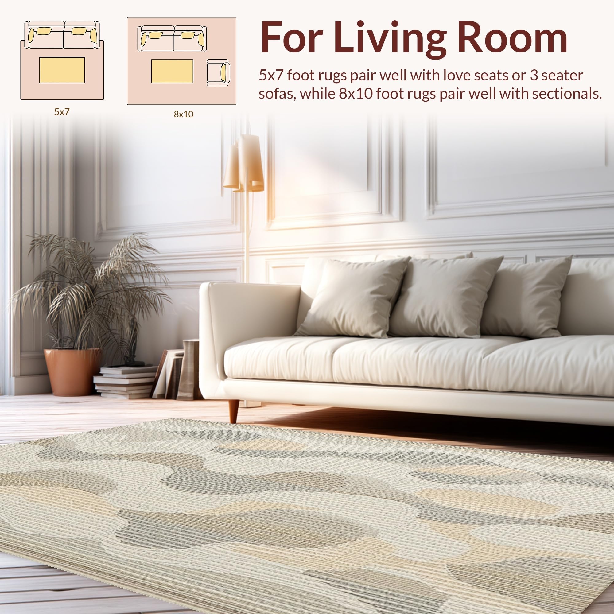 Ultra Soft Area Rug, Non Slip, Stain Resistant, Washable Area Rugs for Living Room, Bedroom, Artisan Crafted Wavy Jute Elegance(Beige) Overview: